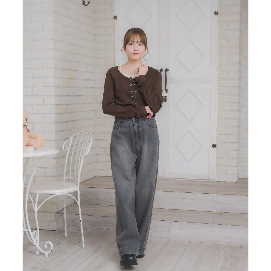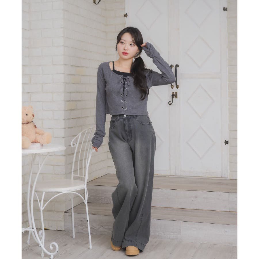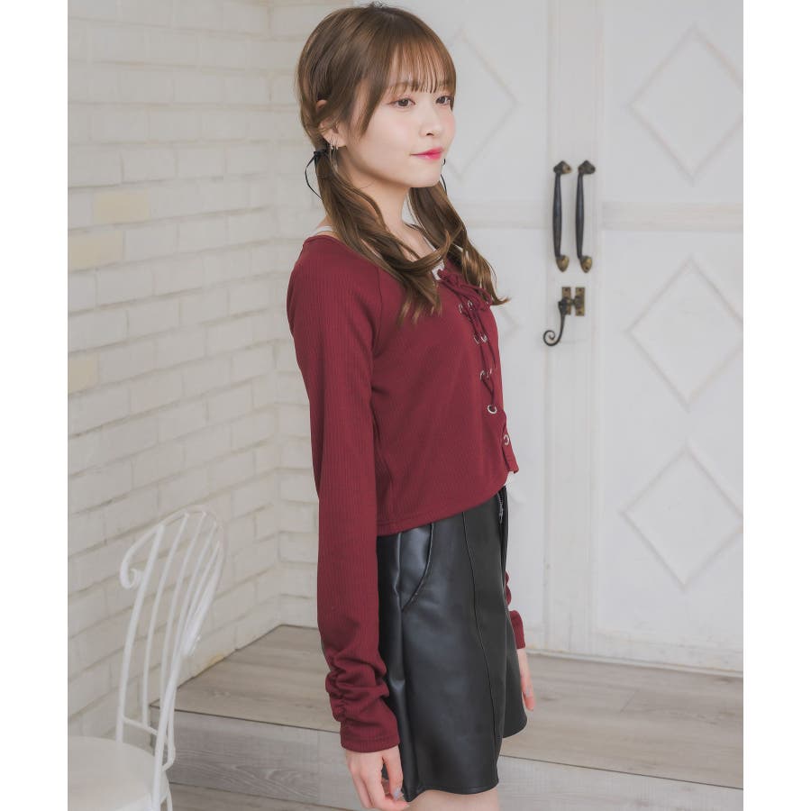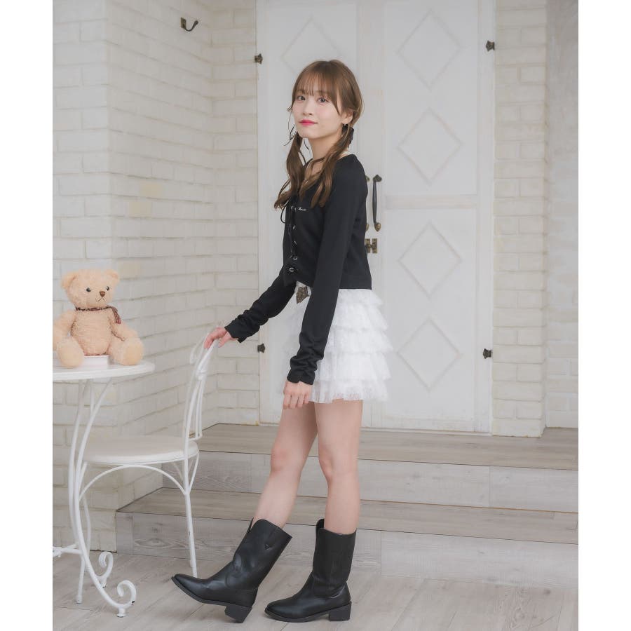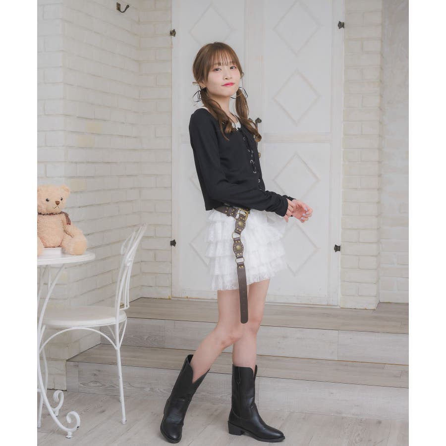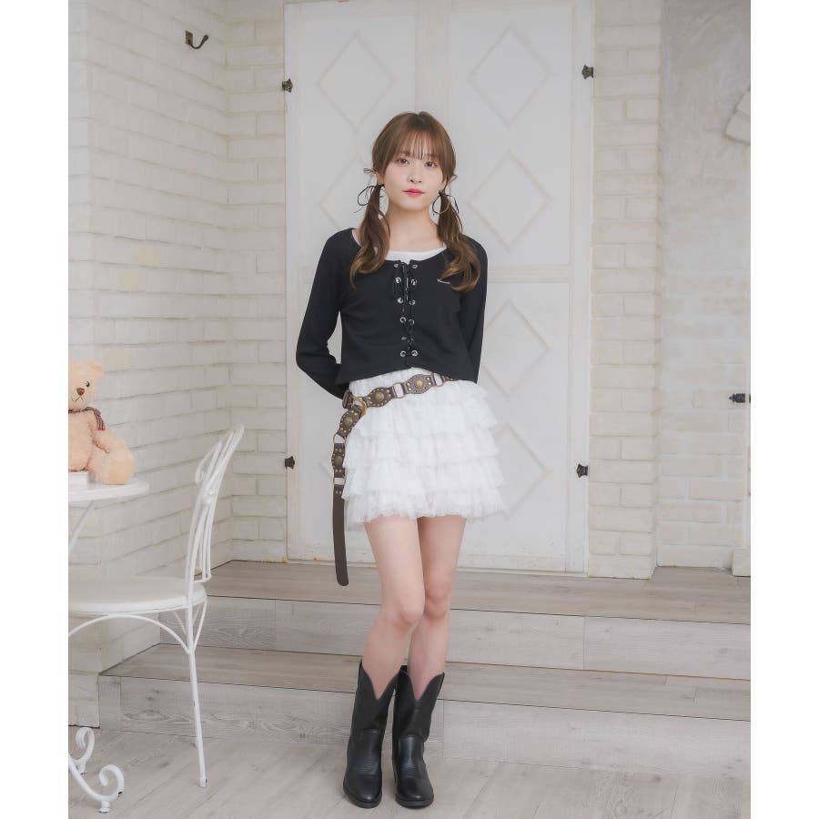 レースアップレイヤード風ロンTEE