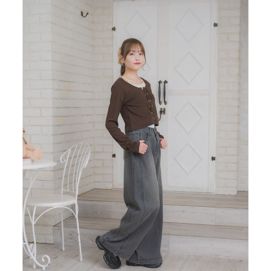 <夏に大人気を頂いたレースアップカットソーが秋も登場!>▼デザインフロント部分にレースアップデザインが施されたデザインカットソー。夏に半袖バージョンで大人気を頂いたアイテムをリバイバルしました。コンパクトな丈感で今年らしいY2Kコーデにおすすめの1枚。袖丈も長く、スタイルアップ効果も期待できるデザインにこだわりました。▼コーディネートコンパクトな着丈で、ボトムの邪魔をしないデザインです。オーバーダイデニムと合わせてY2kコーデを楽しんでみて下さい♪------------------------------生地感:普通伸縮性:ある透け感:なし裏地:なし------------------------------▼ブランド紹介ems excite (エムズエキサイト)“more fun more cute”今をもっと楽しくもっと可愛くいたい女の子に向けたgirly cuteなブランド#レースアップ #カットソー #レースアップデザイン #Y2K #カジュアルコーデ▼注意事項※撮影環境やモニター環境によって実際の商品とお色味が多少異なってみえる場合がございます。品番:EF556411C001 / 品名:レースアップレイヤード風ロンTEE