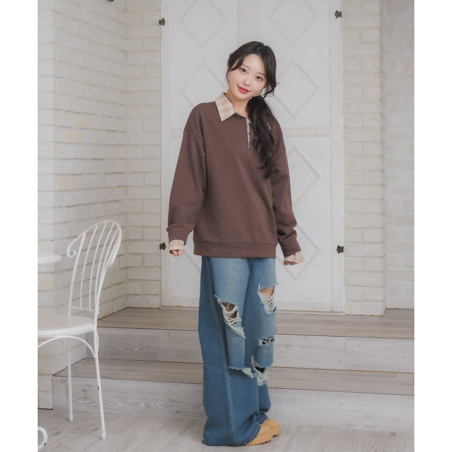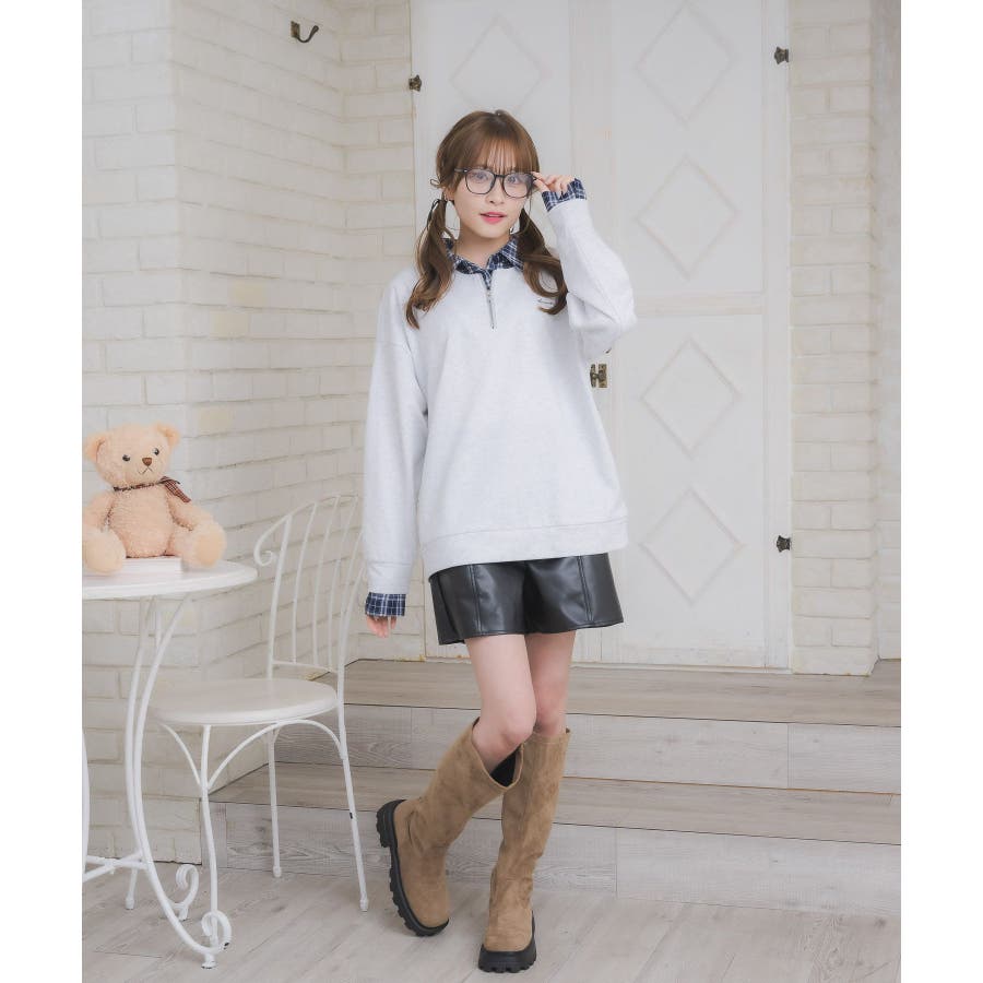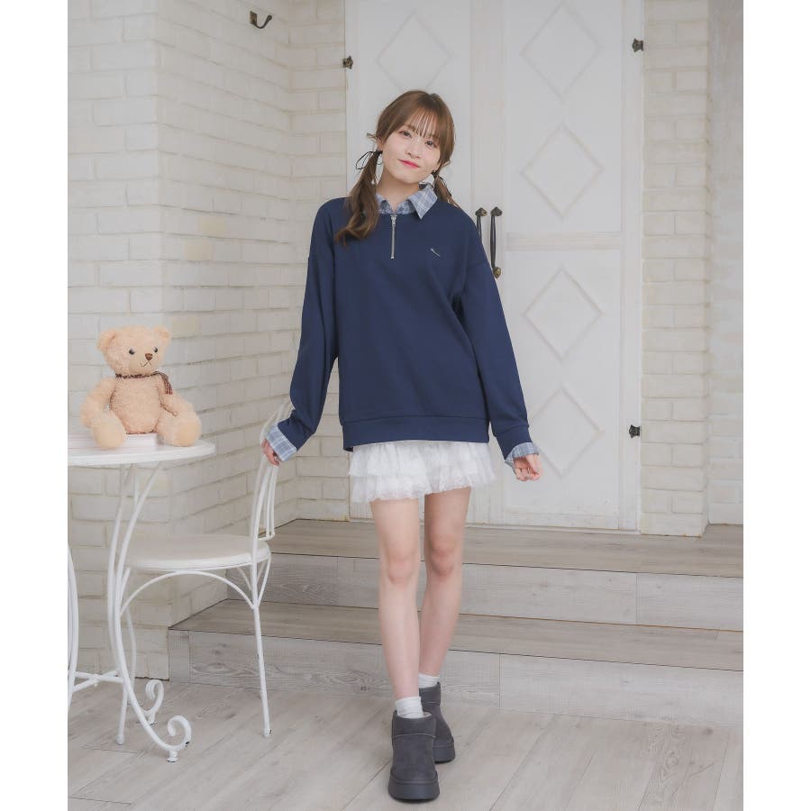 〈ビックシルエットでシャツレイヤード見えするカジュアルトレーナー〉▼デザイン秋コーデの定番、トレーナーアイテム。インナーにチェックシャツをレイヤードしているように見えるデザインが今年らしいポイント!大き目シルエットで、韓国カジュアルなデザイン。センターZIPでシャツの見え方もアレンジ可能です◎▼コーディネートコーデの主役になるデザインアイテム。ボトムはプリーツスカートやデニムパンツ合わせで韓国カジュアルなスタイリングがおすすめ!------------------------------生地感:普通伸縮性:ある透け感:なし裏地:なし------------------------------▼ブランド紹介ems excite (エムズエキサイト)“more fun more cute”今をもっと楽しくもっと可愛くいたい女の子に向けたgirly cuteなブランド#トレーナー #レイヤード #デザイントレーナー #チェック柄 #チェックシャツ #センターZIP #秋コーデ #秋アイテム▼注意事項※撮影環境やモニター環境によって実際の商品とお色味が 多少異なってみえる場合がございます。品番:EF556411C002 / 品名:シャツレイヤード風トレーナー