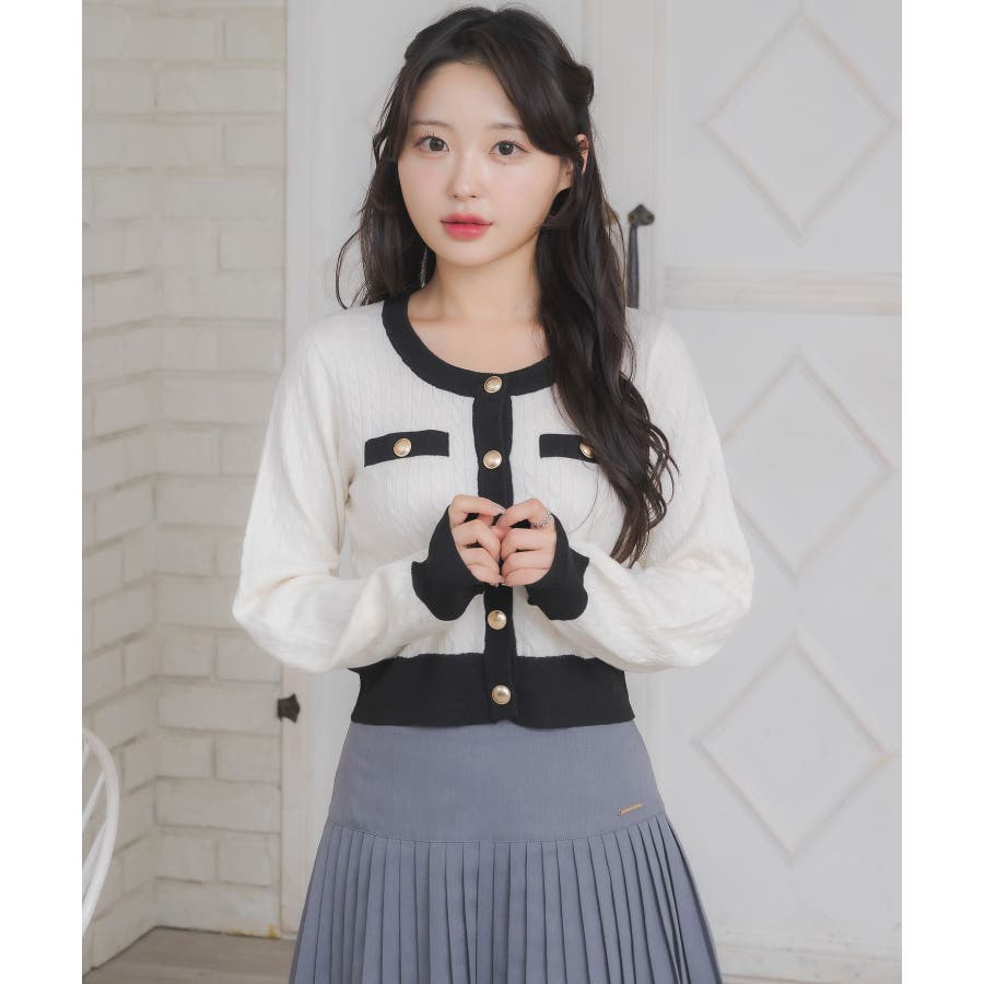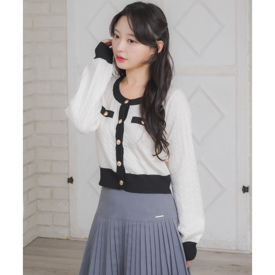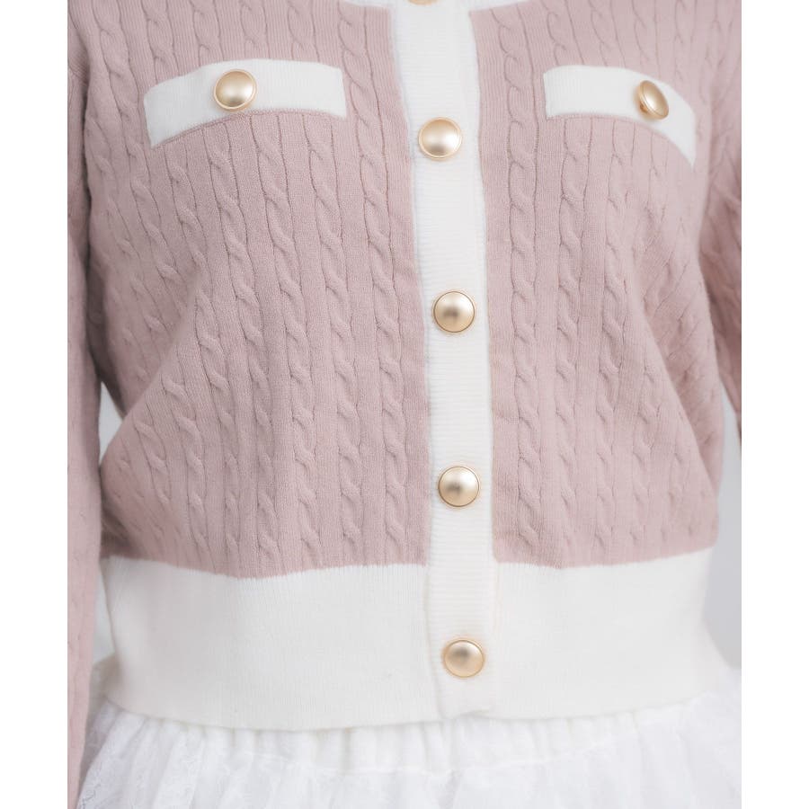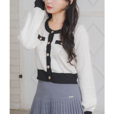 <上品なヴィンテージカーデがケーブル編みになって再登場♪>▼デザイン毎年大人気を頂くヴィンテージカーディガン!1枚で上品で高級感あるコーデに仕上ります。金釦で高見え間違いなしのデザインが魅力的!ケーブル編みになって、秋冬コーデに取り入れたい素材感にブラッシュアップ致しました。▼コーディネートシンプルなボトムスとコーディネートするだけでレディなスタイルが完成します!ワンピースに羽織っても合いやすく、おすすめです。-----------------------------生地感:普通伸縮性:ある透け感:なし裏地:なし------------------------------▼ブランド紹介ems excite (エムズエキサイト)“more fun more cute”今をもっと楽しくもっと可愛くいたい女の子に向けたgirly cuteなブランド#ケーブルカーデ #ヴィンテージ #ヴィンテージカーデ #配色デザイン #ケーブルニット▼注意事項※撮影環境やモニター環境によって実際の商品とお色味が多少異なってみえる場合がございます。品番:EF556412B001 / 品名:ケーブルヴィンテージカーデ