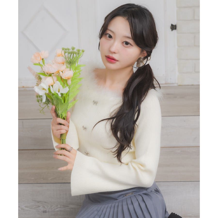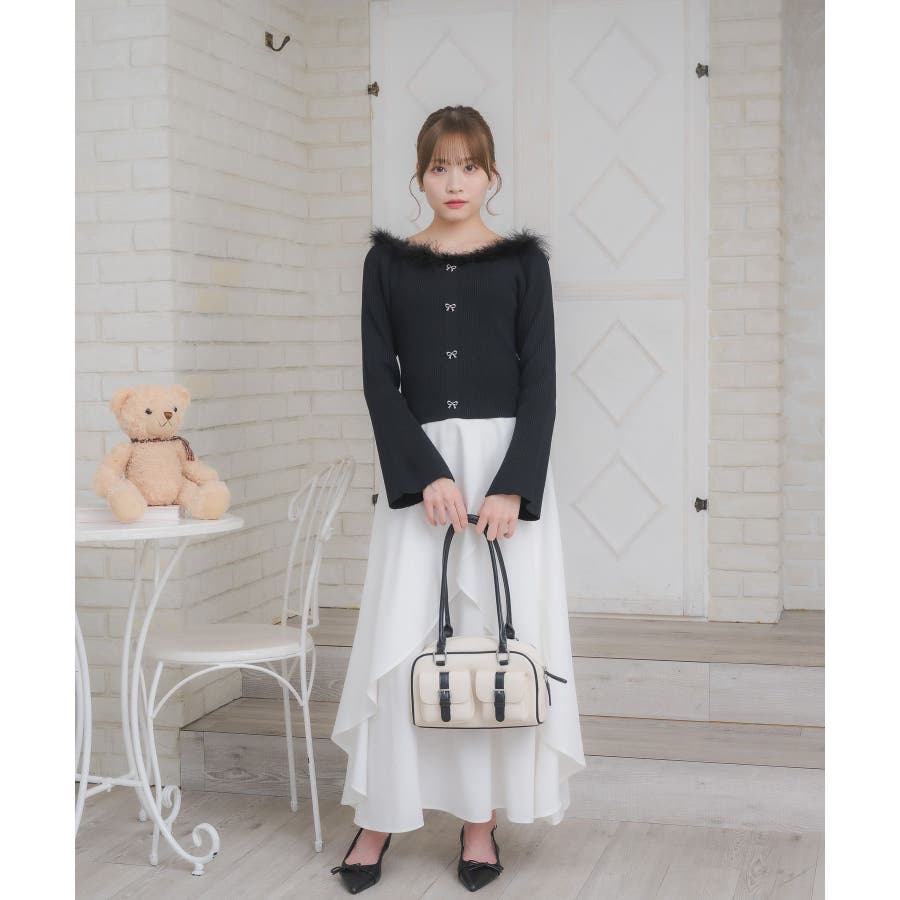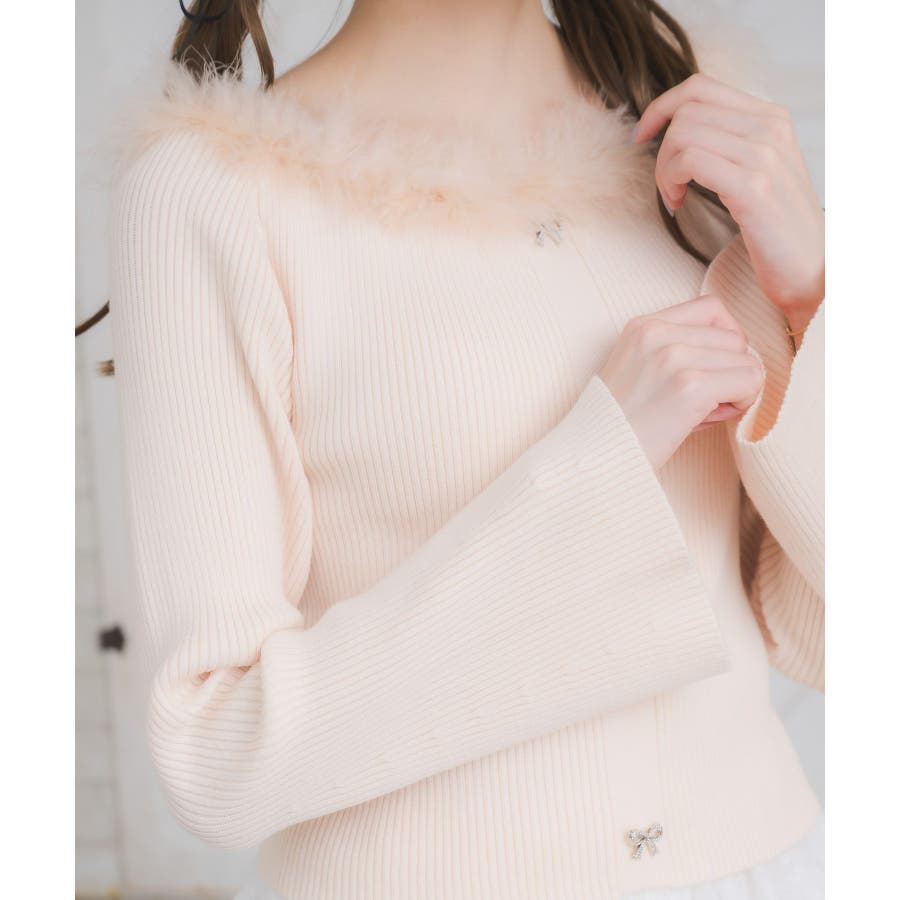 <あざと可愛いデートニット>▼デザイン冬に嬉しいマラボーデザインのリブニット!袖口はフレアスリーブになっていて、ふわっと広がるシルエットが可愛い♪フロント部分はビジューたっぷりのリボンプレートが付いているので、華やか◎クリスマスデートにもセレクトして頂きたい1枚です。▼コーディネート女の子らしく可愛いあざとニット!ボトムはミニスカートで女性らしいスタイリングや、ロングスカートで大人ガーリーコーデに仕上げても可愛いです。------------------------------生地感:普通伸縮性:ある透け感:なし裏地:なし------------------------------▼ブランド紹介ems excite (エムズエキサイト)“more fun more cute”今をもっと楽しくもっと可愛くいたい女の子に向けたgirly cuteなブランド#ファー #ファー素材 #冬コーデ #ガーリーコーデ #ガーリーアイテム #リブニット #ビジュー #リボン #マラボー▼注意事項※撮影環境やモニター環境によって実際の商品とお色味が多少異なってみえる場合がございます。品番:EF556912G004 / 品名:マラボー付きNTPO