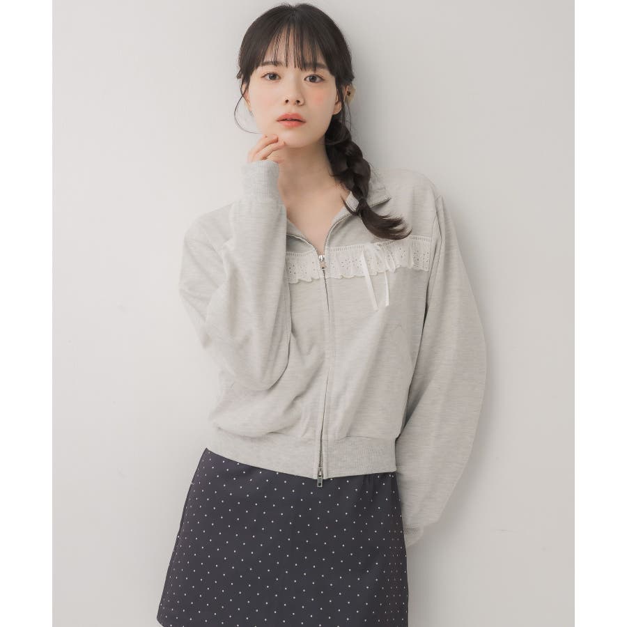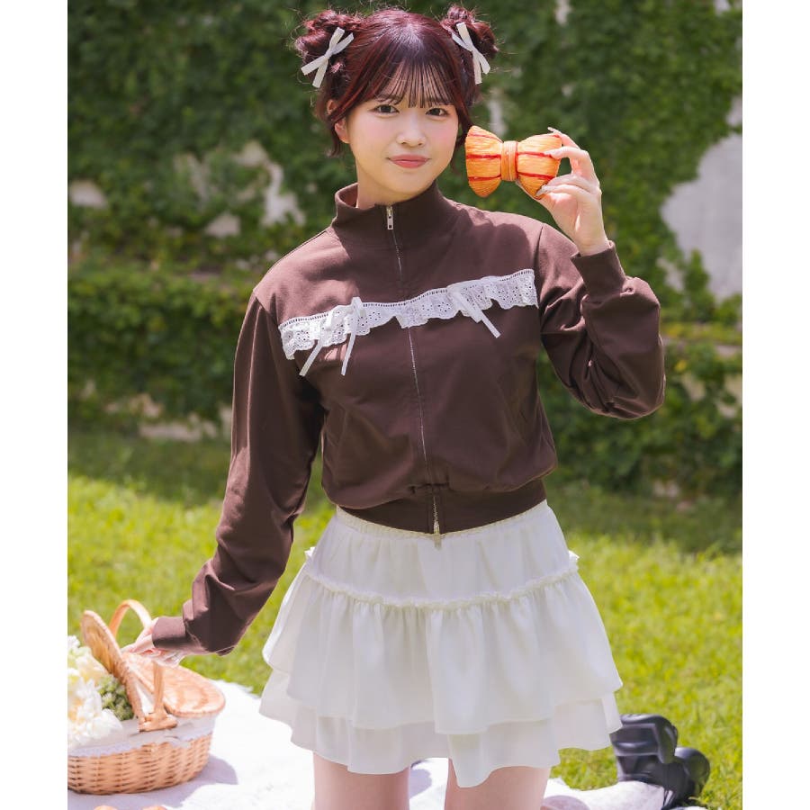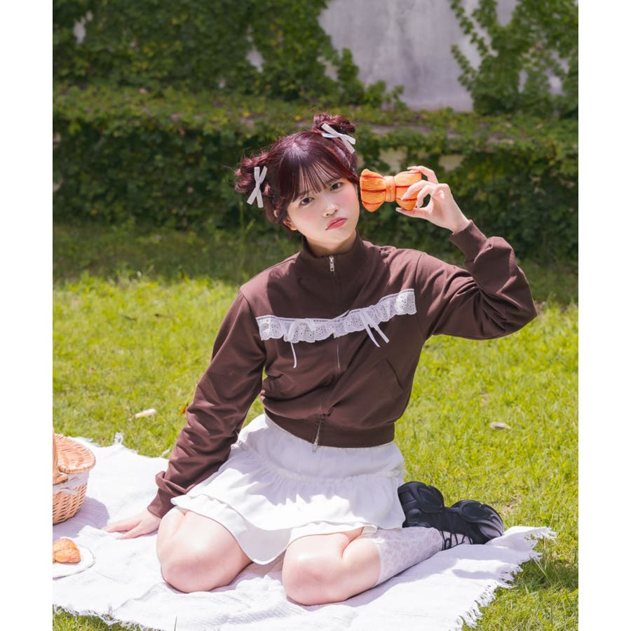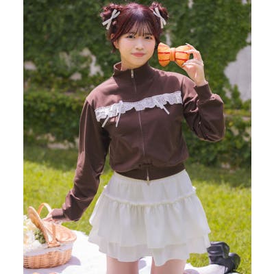 〈スポーツライクなガーリージャケット〉▼デザイン昨年から大人気のトラックジャケット。胸元のレースとリボンで甘めなデザインに仕上げました。ブラウンはビジュアル着用アイテムで、取り入れるだけで秋先取りコーデに◎上までZIPを閉めれば、首回りも暖かく、気温が下がり過ぎない秋から冬にかけても大活躍です♪▼コーディネートプリーツスカート合わせで韓国カジュアルコーデはもちろん、スウェットパンツでカジュアルなスポーツコーデもおすすめ。------------------------------生地感:普通伸縮性:ある透け感:なし裏地:なし------------------------------▼ブランド紹介ems excite (エムズエキサイト)“more fun more cute”今をもっと楽しくもっと可愛くいたい女の子に向けたgirly cuteなブランド#カジュアル #スポーツアイテム #ジャケット #韓国コーデ #ガーリーコーデ #トラックジャケット #レース #リボン▼注意事項※撮影環境やモニター環境によって実際の商品とお色味が 多少異なってみえる場合がございます。品番:EP557111G002 / 品名:レースリボントラックJK