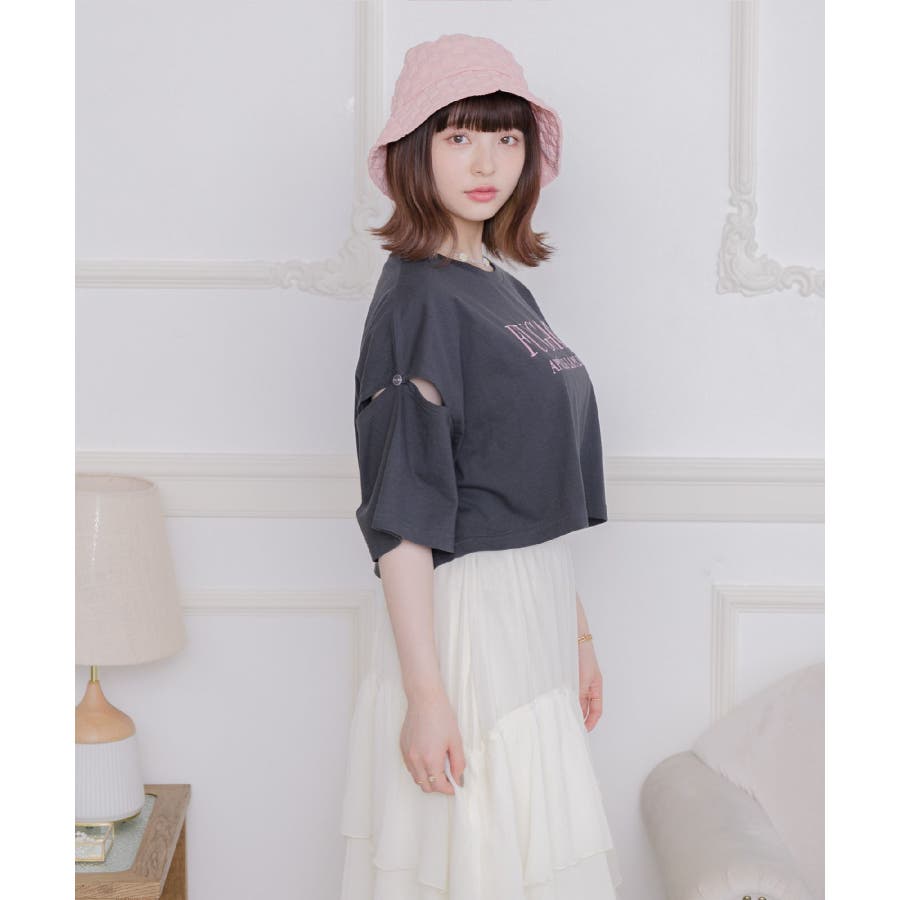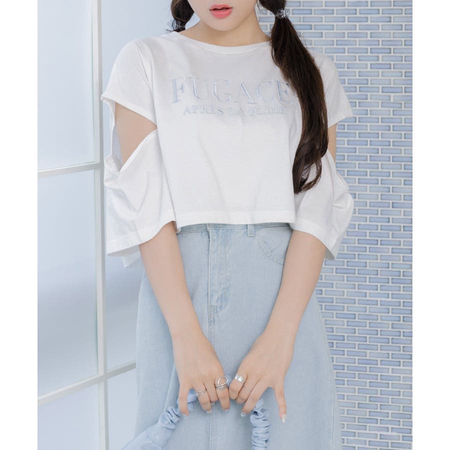 肩あきロゴ刺繍Tee