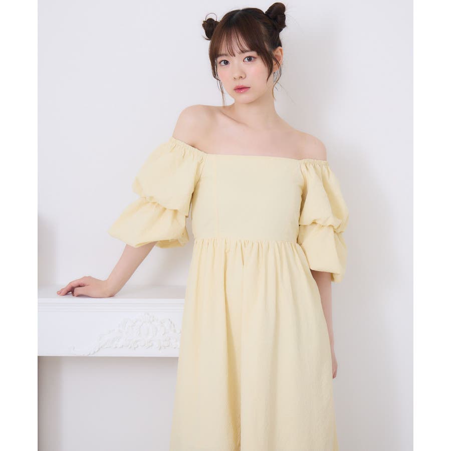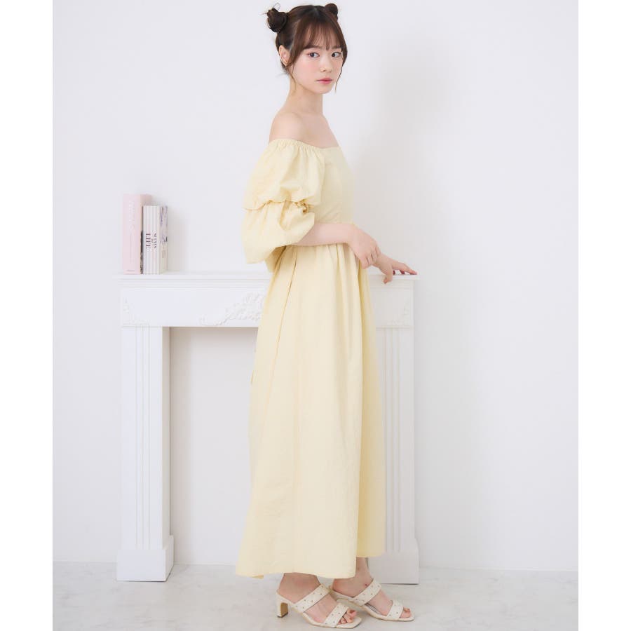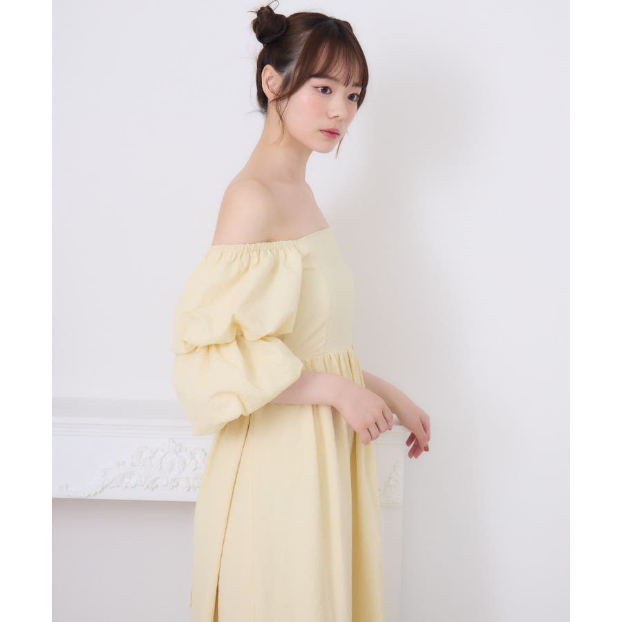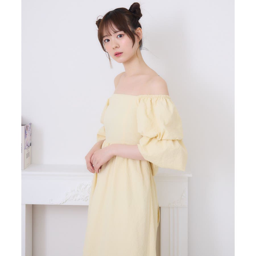 <ボリューム袖でシルエットが可愛いオフショルダーワンピース>▼デザインボリューム感のある2段のパフ袖が気になる二の腕をカバーしてくれるワンピース。バックリボンがワンポイントで、背中のスリットが夏らしい印象になります。スクエアネックで、デコルテを綺麗に見せてくれます。デートにもおすすめしたい女性らしいモテワンピースです。▼コーディネート1枚でスタイリングの完成するワンピース。麦わら帽子や小物でもっと夏らしさをプラスするのもおすすめです。------------------------------生地感:普通伸縮性:なし透け感:なし裏地:ある------------------------------▼ブランド紹介ems excite (エムズエキサイト)“more fun more cute”今をもっと楽しくもっと可愛いくいたい女の子に向けたgirly cuteなブランド#ワンピース #バルーンワンピース #上品 #デートコーデ #イエローコーデ ▼注意事項※撮影環境やモニター環境によって実際の商品とお色味が多少異なってみえる場合がございます。品番:EL480022B001 / 品名:バルーンスリーブオフショルOP