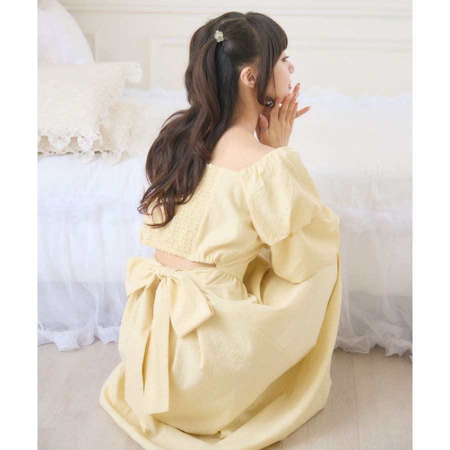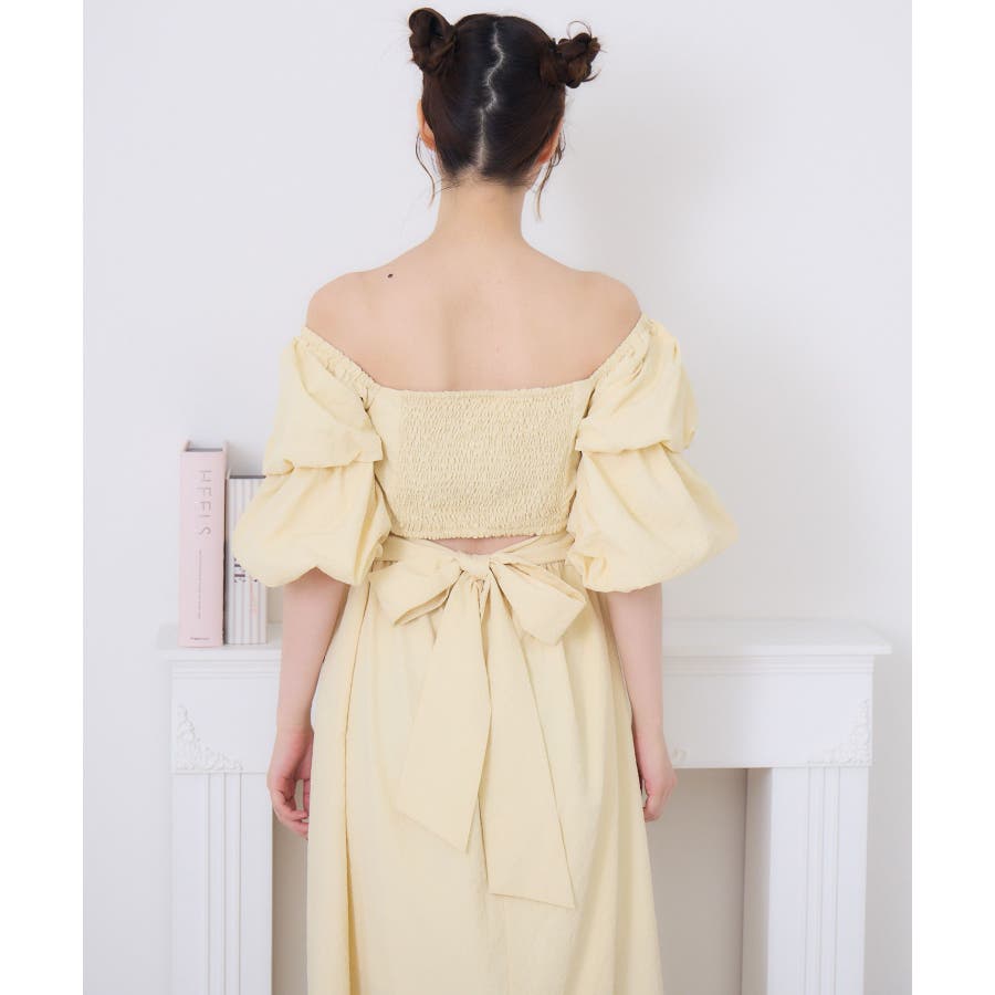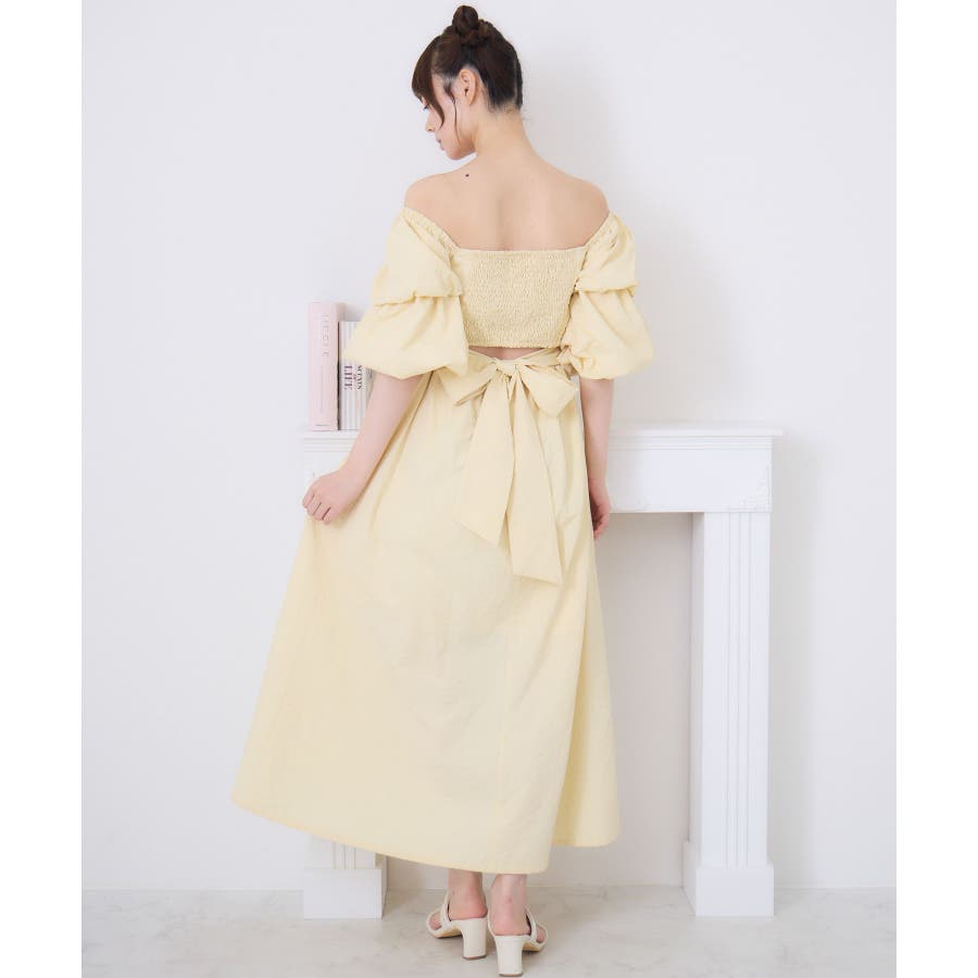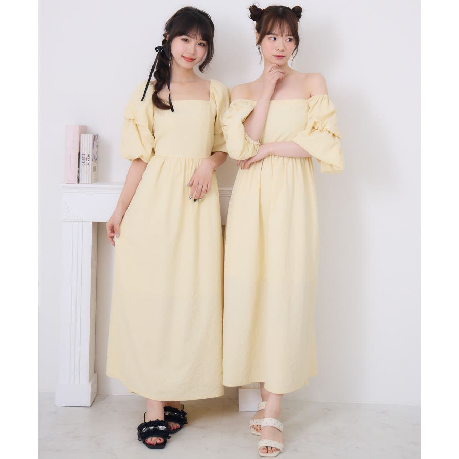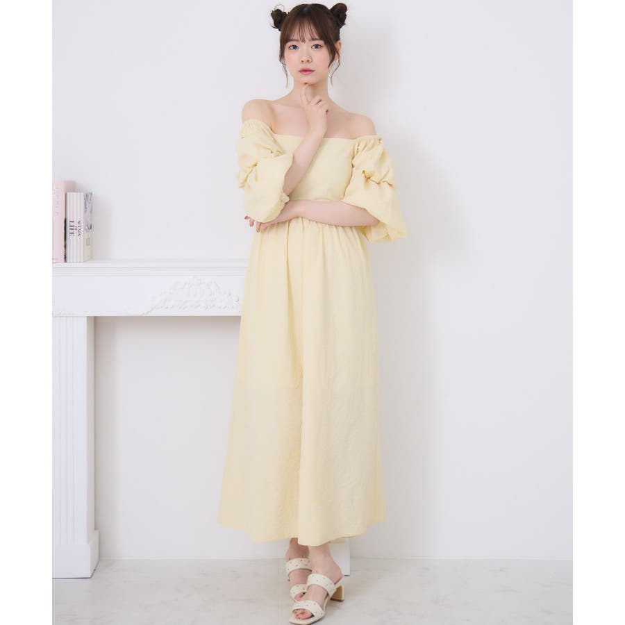 <ボリューム袖でシルエットが可愛いオフショルダーワンピース>▼デザインボリューム感のある2段のパフ袖が気になる二の腕をカバーしてくれるワンピース。バックリボンがワンポイントで、背中のスリットが夏らしい印象になります。スクエアネックで、デコルテを綺麗に見せてくれます。デートにもおすすめしたい女性らしいモテワンピースです。▼コーディネート1枚でスタイリングの完成するワンピース。麦わら帽子や小物でもっと夏らしさをプラスするのもおすすめです。------------------------------生地感:普通伸縮性:なし透け感:なし裏地:ある------------------------------▼ブランド紹介ems excite (エムズエキサイト)“more fun more cute”今をもっと楽しくもっと可愛いくいたい女の子に向けたgirly cuteなブランド#ワンピース #バルーンワンピース #上品 #デートコーデ #イエローコーデ ▼注意事項※撮影環境やモニター環境によって実際の商品とお色味が多少異なってみえる場合がございます。品番:EL480022B001 / 品名:バルーンスリーブオフショルOP