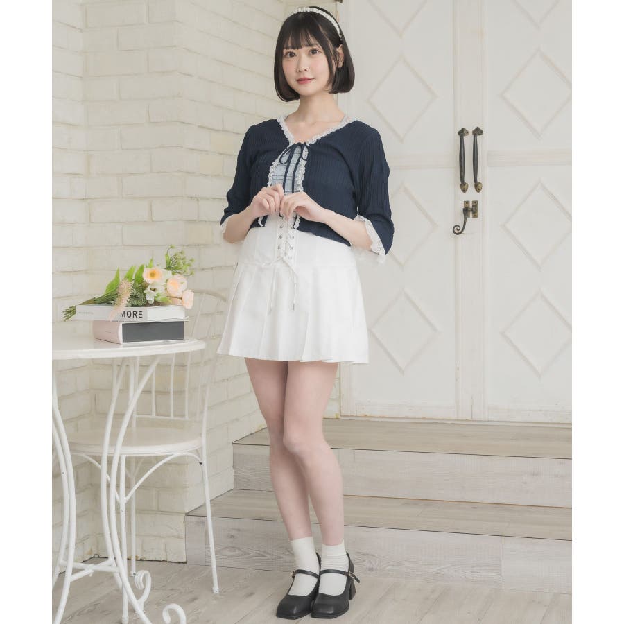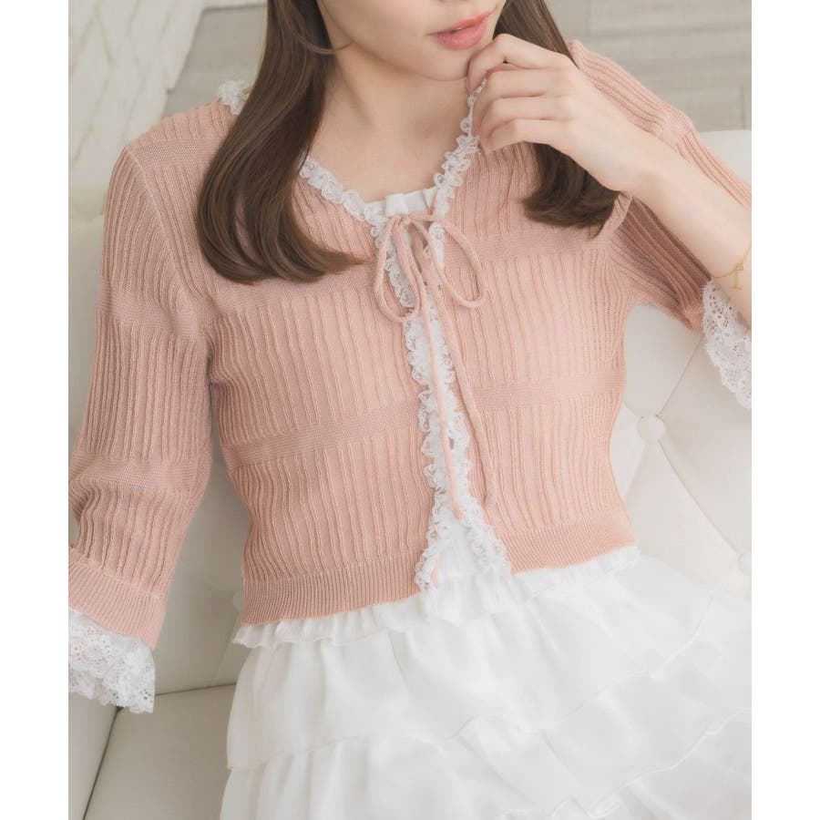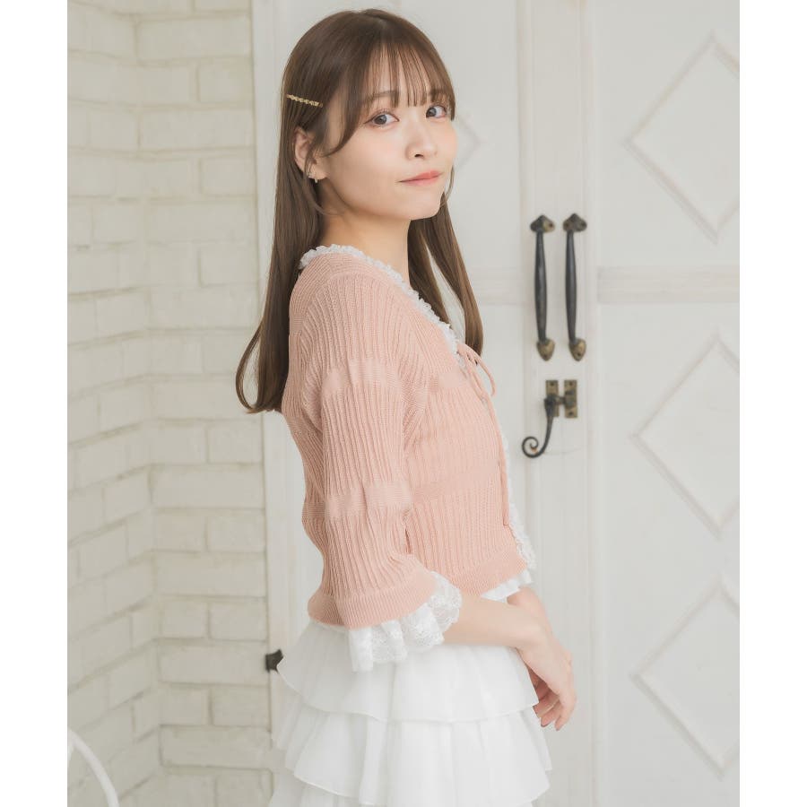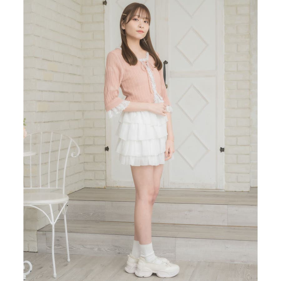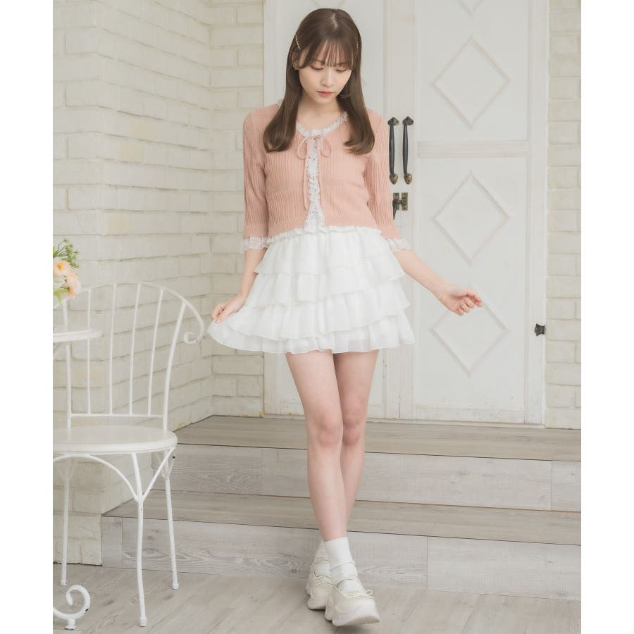 レース付きフリルカーデ