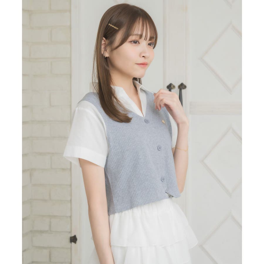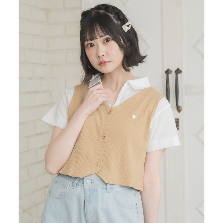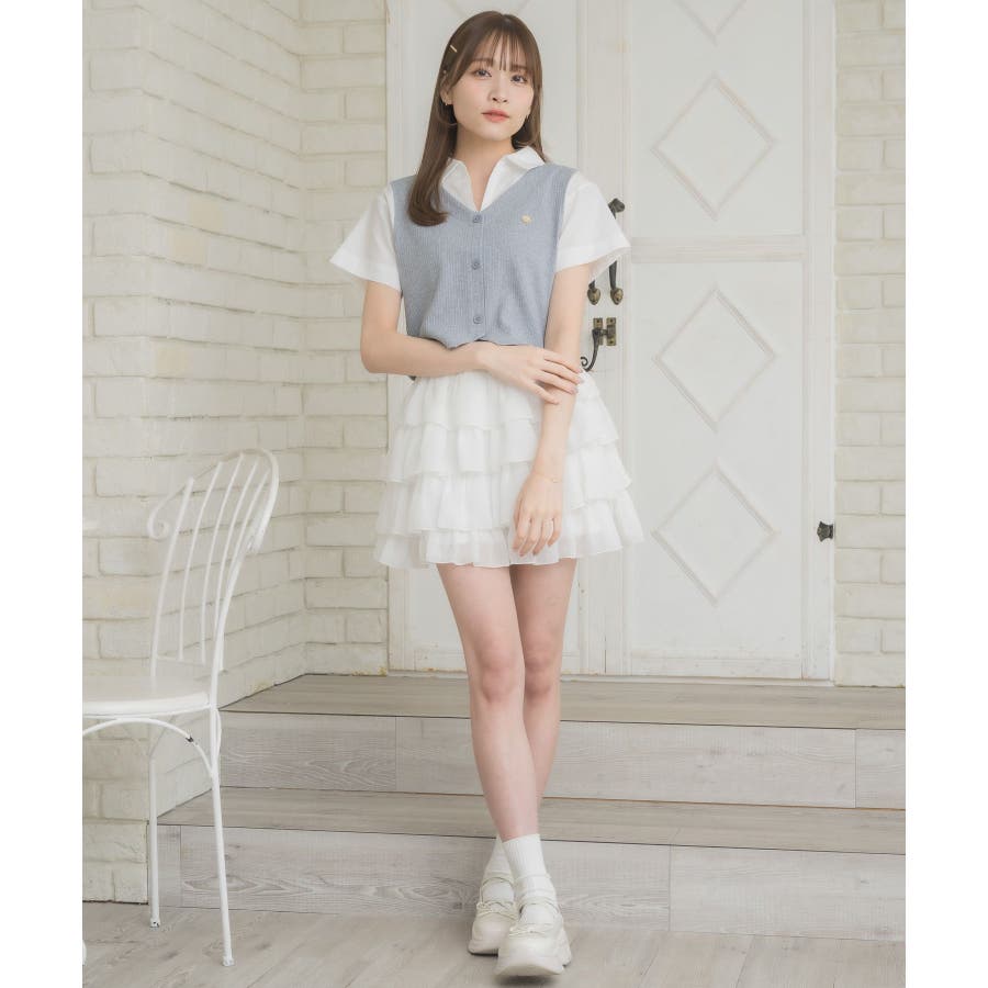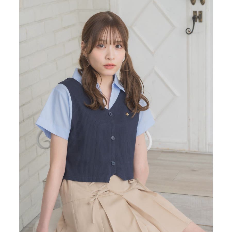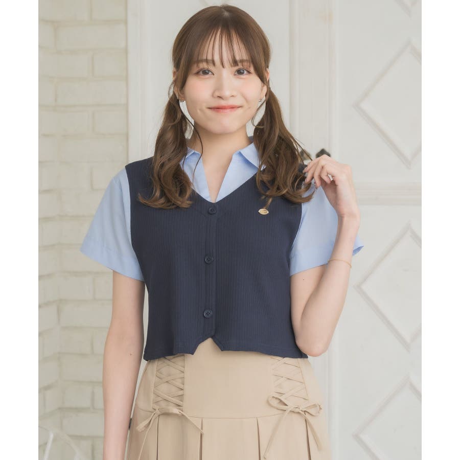 〈スキッパー襟ですっきり見えるトレンドドッキングアイテム〉今年大人気のレイヤード見えアイテム!シャツはスキッパーデザインで、直線的な印象に。開襟スタイルで夏も苦しくないすっきりスタイル♪胸元のプレートが輝くワンポイント!スクールガールなスタイリングもぴったりです◎▼コーディネート一見カジュアル見えするスキッパーデザインなので、デニムなどカジュアルコーデも楽しめます。プリーツスカートと合わせてスクールガールコーデにアレンジするのも可愛いです♪------------------------------生地感:普通伸縮性:なし透け感:なし裏地:なし------------------------------▼ブランド紹介ems excite (エムズエキサイト)“more fun more cute”今をもっと楽しくもっと可愛くいたい女の子に向けたgirly cuteなブランド#シャツ #ニット #襟 #ニットアイテム #ドッキング #レイヤード #ガーリーコーデ #スクールガール #スキッパー▼注意事項※撮影環境やモニター環境によって実際の商品とお色味が 多少異なってみえる場合がございます。品番:EL541523C002 / 品名:スキッパードッキングSH