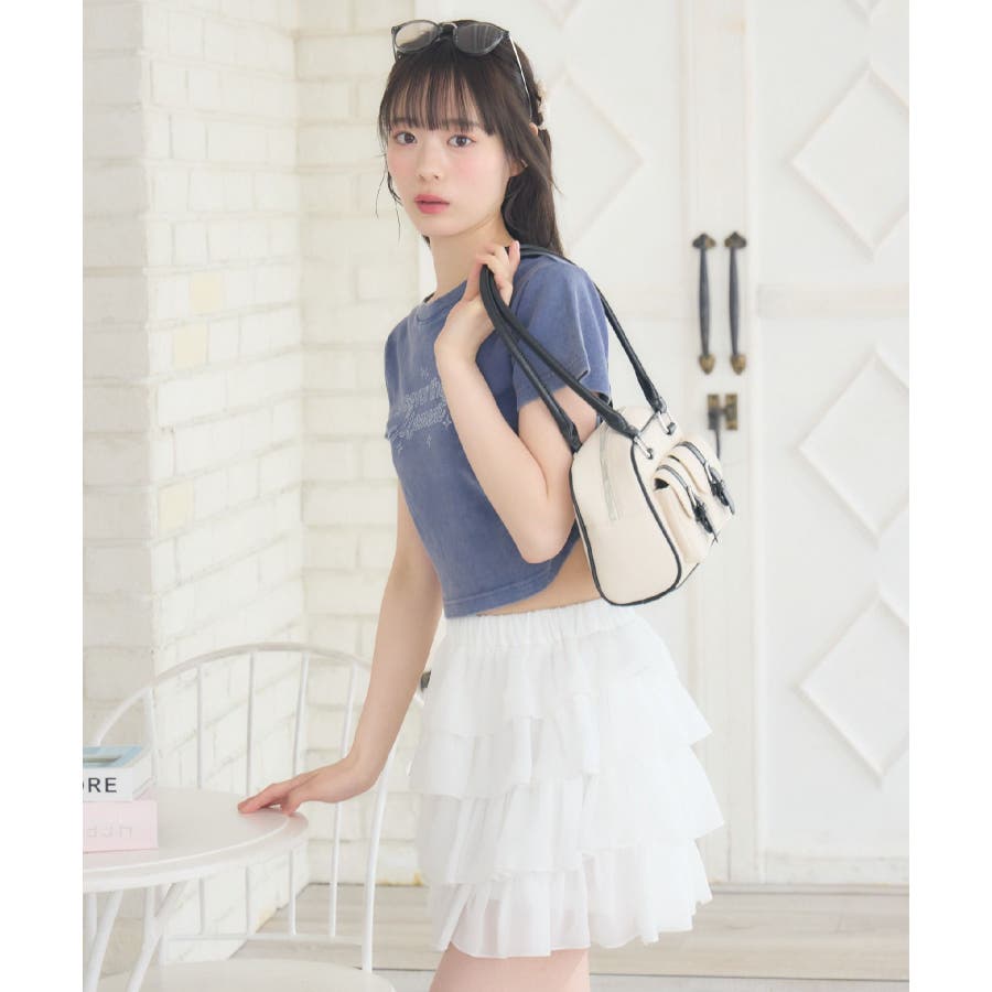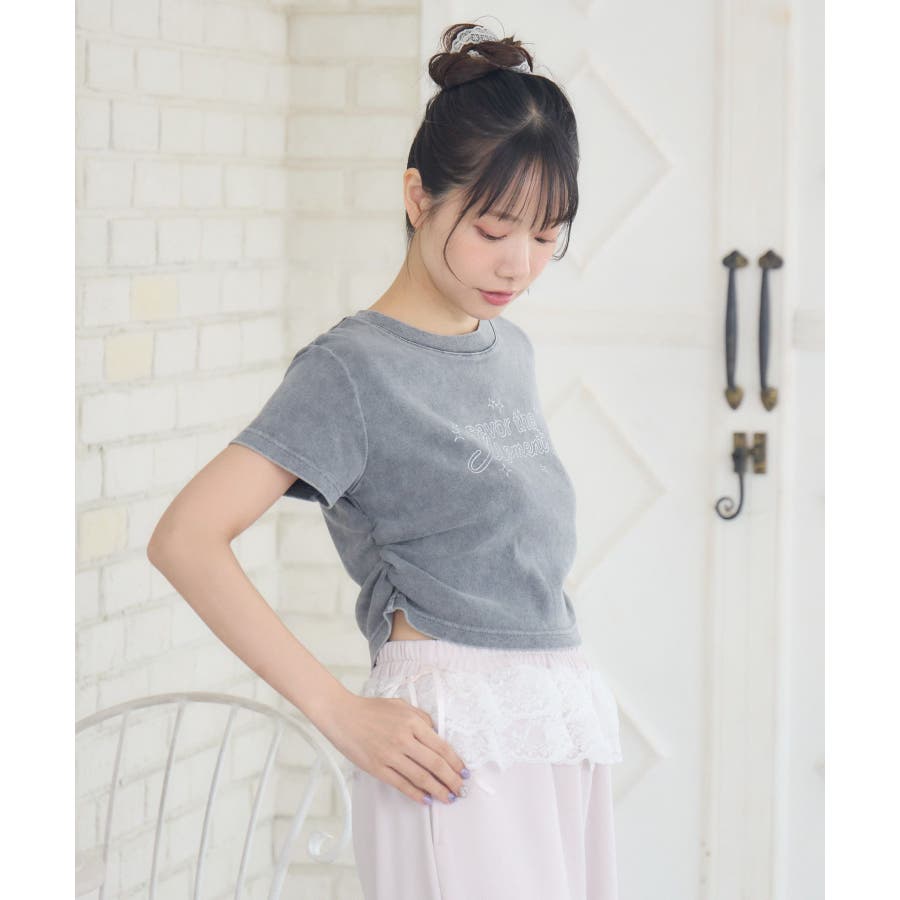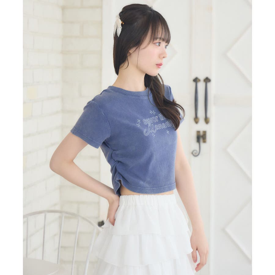 <ショート丈で加工感たっぷりのデザイン>▼デザインカジュアルなデザインのTシャツアイテム。両サイドが絞られたデザインで、ヘルシーなスタイリングに。加工感あるアシッドウォッシュでトレンドのY2Kスタイリングにもおすすめです!▼コーディネートどんなアイテムとも合わせやすいシンプルなTシャツアイテム。ウエストラインを綺麗に魅せるデザインなので、デニム合わせでY2Kにかっこよく♪------------------------------生地感:普通伸縮性:ある透け感:なし裏地:なし------------------------------▼ブランド紹介ems excite (エムズエキサイト)“more fun more cute”今をもっと楽しくもっと可愛くいたい女の子に向けたgirly cuteなブランド#Tシャツ #Tシャツ #Y2Kコーデ #ミニ丈デザイン#ミニTシャツ #シャーリング▼注意事項※撮影環境やモニター環境によって実際の商品とお色味が多少異なってみえる場合がございます。品番:EL557111C001 / 品名:アシッドウォッシュロゴTEE