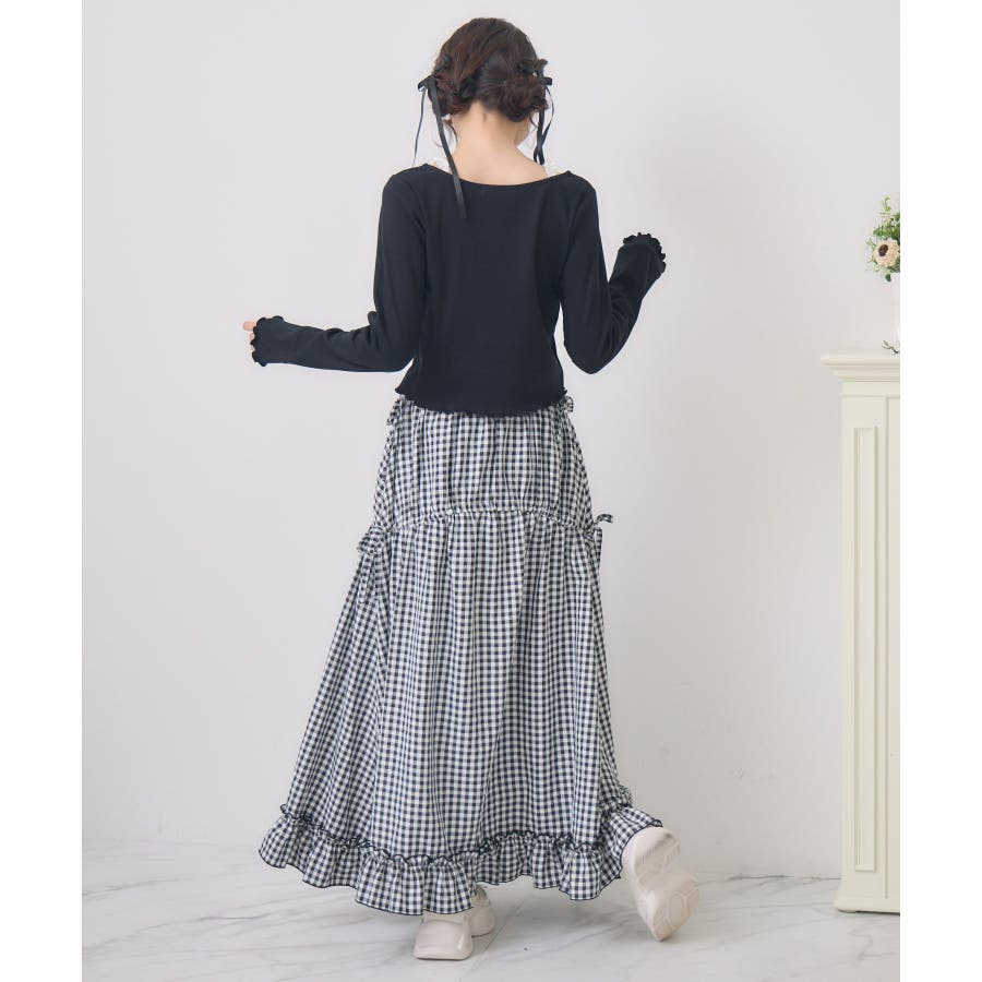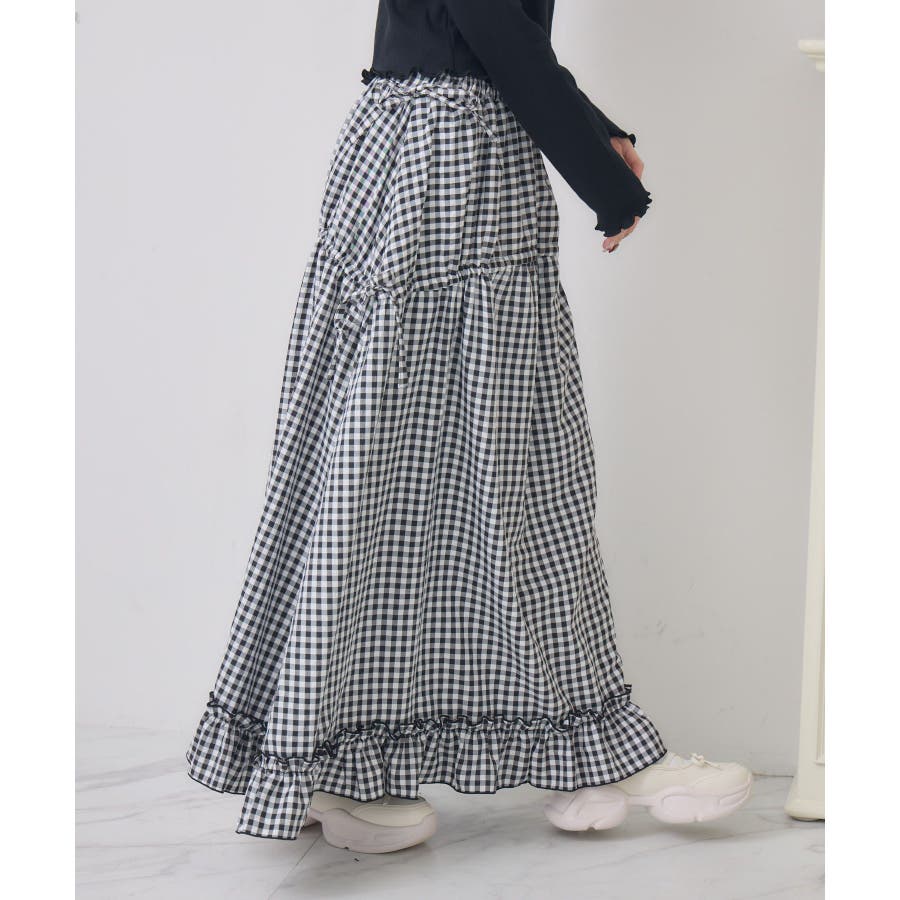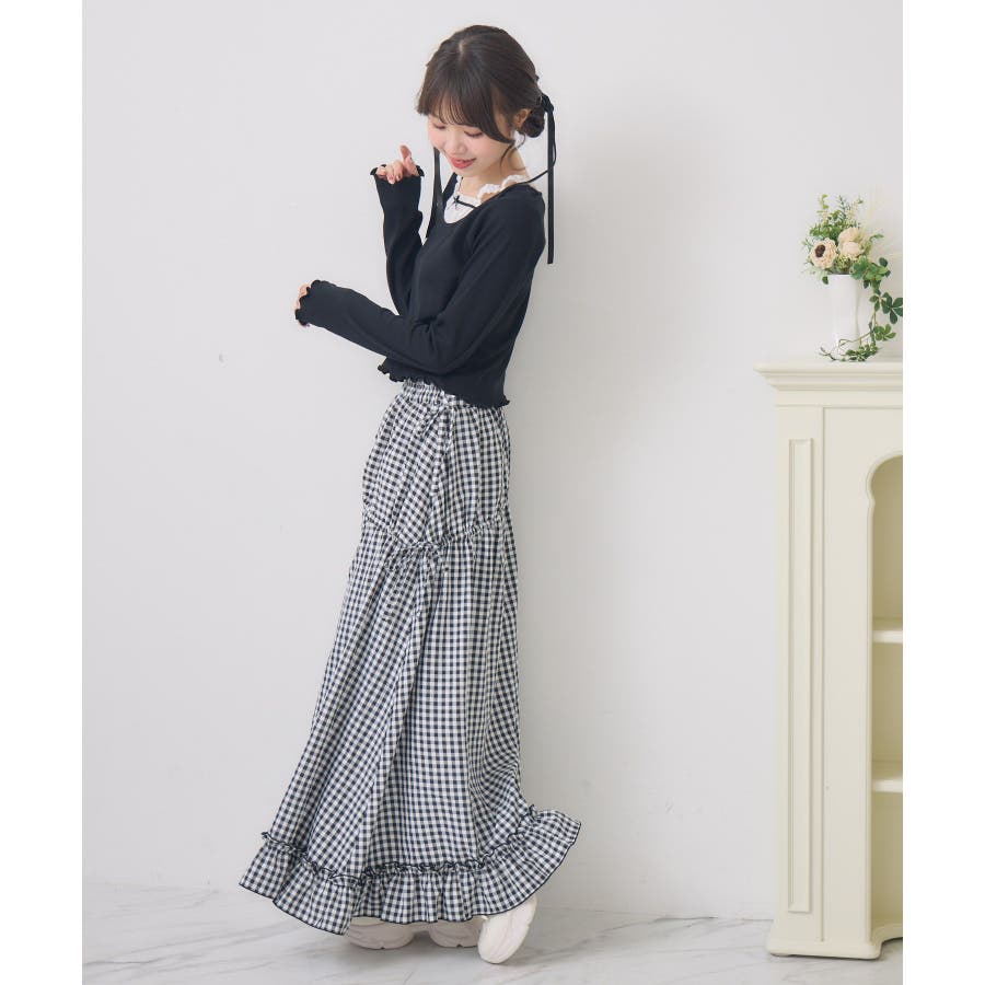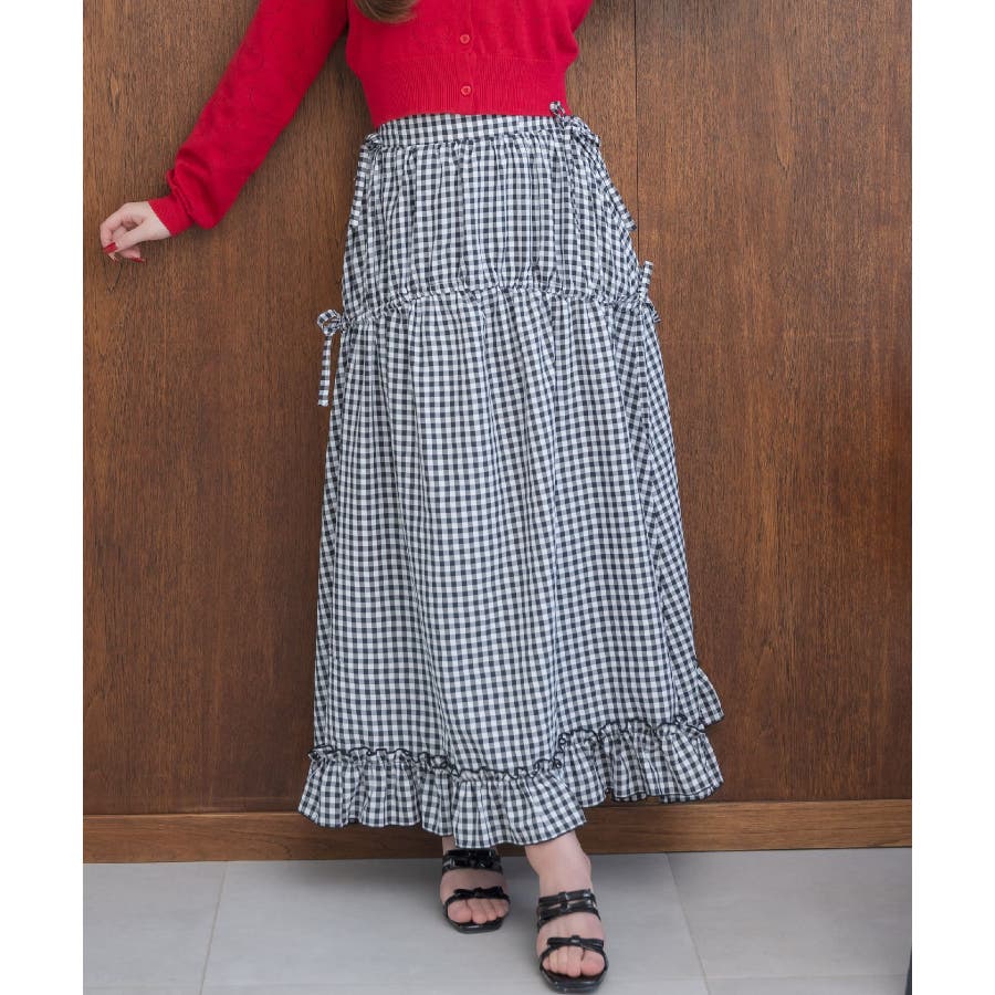 <ハイウエストでスタイルアップ効果あり!マキシ丈スカート>▼デザイン両サイドに2つずつリボンデザインが施されたスカート。ドロストデザインで、シルエットもお好みで変更して頂けます。裾のフリルデザインが、ボリューム感たっぷり!ハイウエストな部分で切り替えになっているので、ウエスト部分が細く見えたり、脚が長く見えるのが嬉しいポイント♪▼コーディネートボリューム感のあるスカートなので、シンプルにトレーナーやカットソー合わせるだけでガーリーコーデに。ギンガムチェックは夏を代表するカラーでフレッシュな印象に♪大き目で存在感のあるギンガムチェックで、顔タイプアクティブキュートの方にぴったり!------------------------------生地感:普通伸縮性:なし透け感:なし裏地:ある------------------------------▼ブランド紹介ems excite (エムズエキサイト)“more fun more cute”今をもっと楽しくもっと可愛くいたい女の子に向けたgirly cuteなブランド#ドロスト #ロングスカート #マキシスカート #ガーリーアイテム #ギンガムチェック▼注意事項※撮影環境やモニター環境によって実際の商品とお色味が多少異なってみえる場合がございます。品番:EM537531G002 / 品名:ハイウエストドロストフレアSK