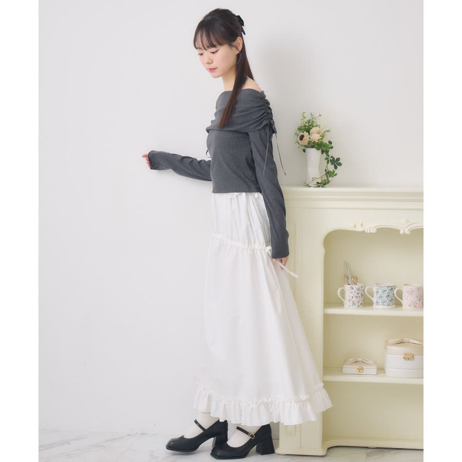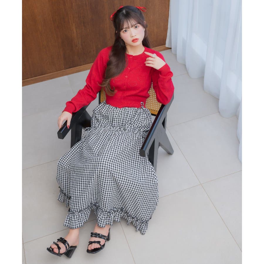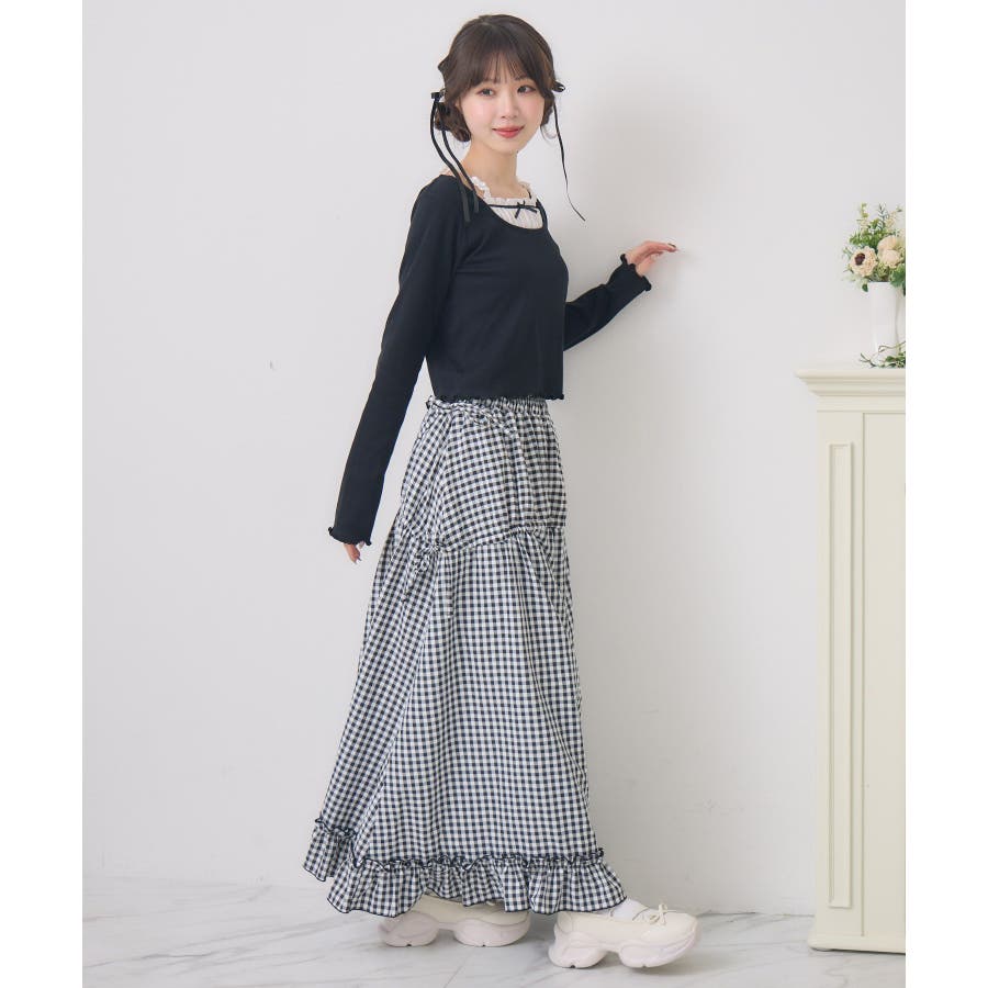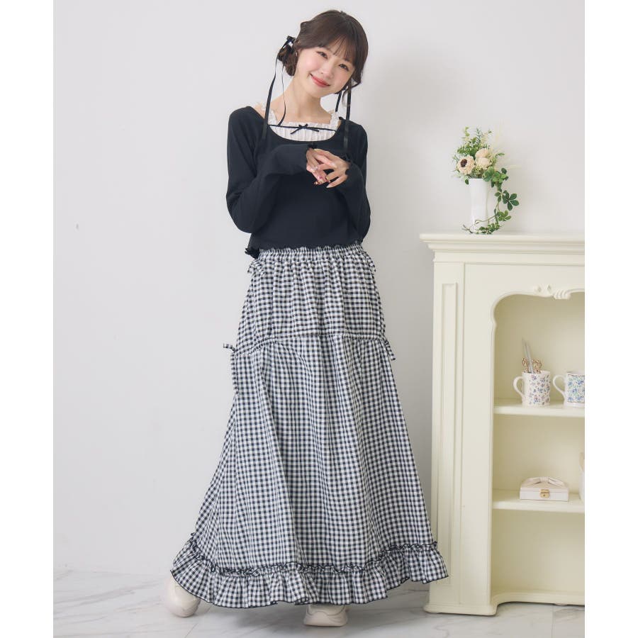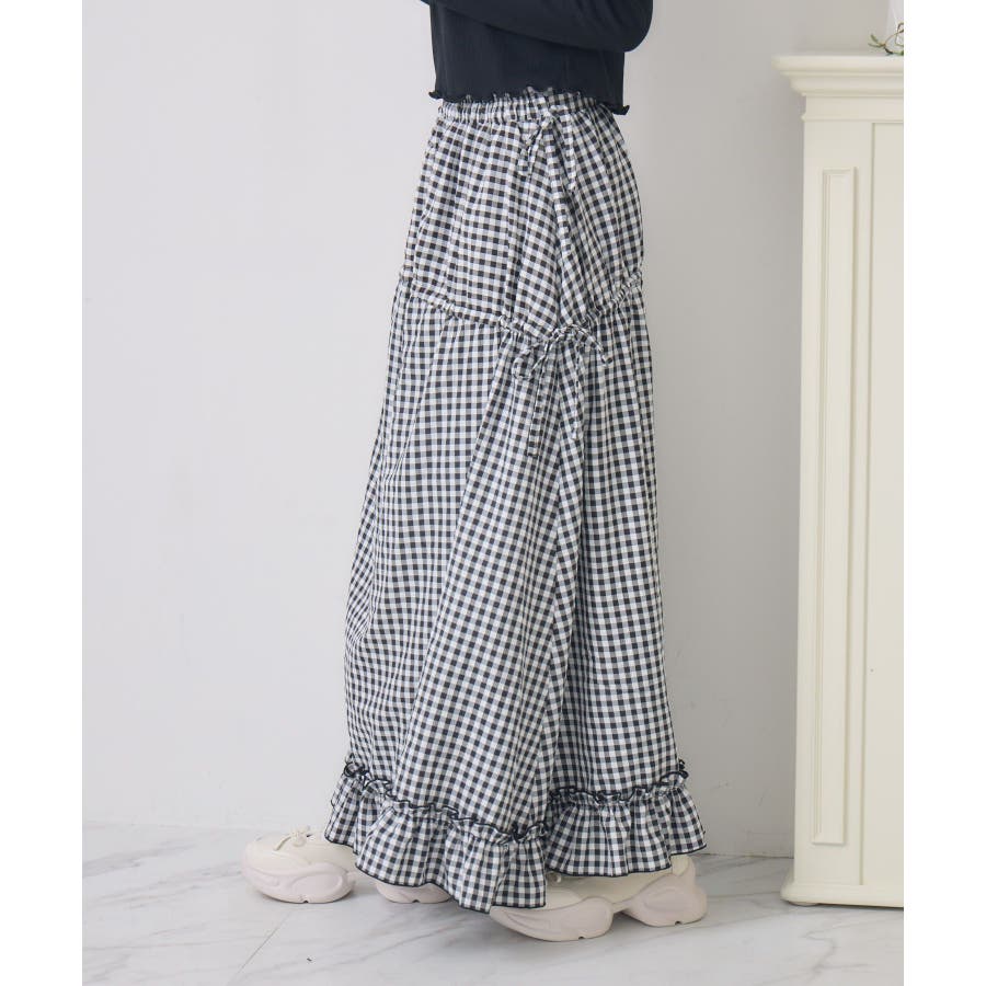 <ハイウエストでスタイルアップ効果あり!マキシ丈スカート>▼デザイン両サイドに2つずつリボンデザインが施されたスカート。ドロストデザインで、シルエットもお好みで変更して頂けます。裾のフリルデザインが、ボリューム感たっぷり!ハイウエストな部分で切り替えになっているので、ウエスト部分が細く見えたり、脚が長く見えるのが嬉しいポイント♪▼コーディネートボリューム感のあるスカートなので、シンプルにトレーナーやカットソー合わせるだけでガーリーコーデに。ギンガムチェックは夏を代表するカラーでフレッシュな印象に♪大き目で存在感のあるギンガムチェックで、顔タイプアクティブキュートの方にぴったり!------------------------------生地感:普通伸縮性:なし透け感:なし裏地:ある------------------------------▼ブランド紹介ems excite (エムズエキサイト)“more fun more cute”今をもっと楽しくもっと可愛くいたい女の子に向けたgirly cuteなブランド#ドロスト #ロングスカート #マキシスカート #ガーリーアイテム #ギンガムチェック▼注意事項※撮影環境やモニター環境によって実際の商品とお色味が多少異なってみえる場合がございます。品番:EM537531G002 / 品名:ハイウエストドロストフレアSK