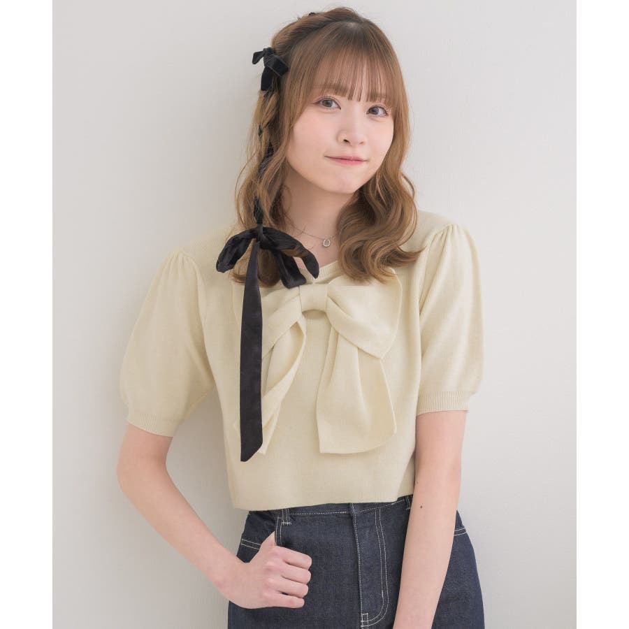 <大きなリボンで夏もヒロインになれちゃう!サマーニット>▼デザインフロント部分に大きなリボンニットが施されたニットアイテム。毎回大人気を頂くデザインが半袖になって再登場!今年気になるチョーカーデザインでお好みのアレンジが可能◎夏糸に変更されて、軽やかで風通しのいい素材感です♪▼コーディネートかわいらしいガーリーな印象のアイテム!チュールスカートやマーメイドスカート合わせがおすすめ♪デニム合わせでもバランスの取れた甘カジコーデに◎------------------------------生地感:普通伸縮性:ある透け感:なし裏地:なし------------------------------▼ブランド紹介ems excite (エムズエキサイト)“more fun more cute”今をもっと楽しくもっと可愛くいたい女の子に向けたgirly cuteなブランド#フロントリボン #リボンアイテム #リボン #ガーリーコーデ #ガーリーアイテム #リボンニット #サマーニット▼注意事項※撮影環境やモニター環境によって実際の商品とお色味が 多少異なってみえる場合がございます。品番:EM541512G006 / 品名:BIGリボンパフ袖NT