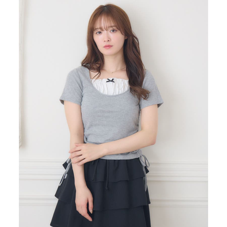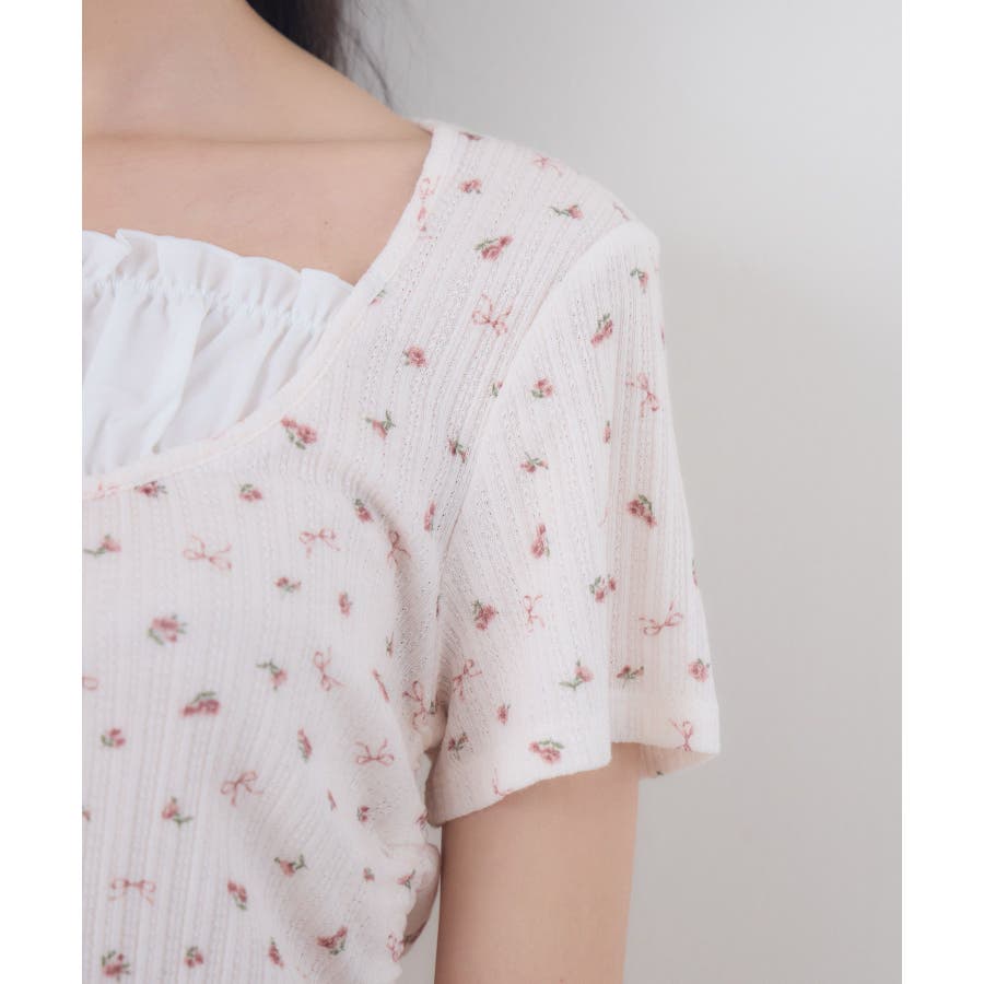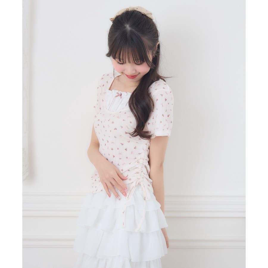 <バレエコアなデザインに韓国っぽさも取り入れたカットソー>▼デザイン切替デザインと胸元のリボンが可愛いカットソー。両サイドはドロストデザインが施されていて、ウエストラインがちら見え。ピンクの花柄は、春らしくバレエコアコーデにもピッタリです◎▼コーディネートフレアスカートやティアードスカートを合わせてバレエコアコーデにするのがおすすめのコーデ。ロングスカートで合わせてフェミニンに着こなすのも可愛い!------------------------------生地感:普通伸縮性:ある透け感:なし裏地:なし------------------------------▼ブランド紹介ems excite (エムズエキサイト)“more fun more cute”今をもっと楽しくもっと可愛くいたい女の子に向けたgirly cuteなブランド#リボン #ドロスト #カットソー #バレエコア #ガーリーカットソー #花柄 #ドロスト▼注意事項※撮影環境やモニター環境によって実際の商品とお色味が 多少異なってみえる場合がございます。品番:EM556211G001 / 品名:ドロスト切替CT