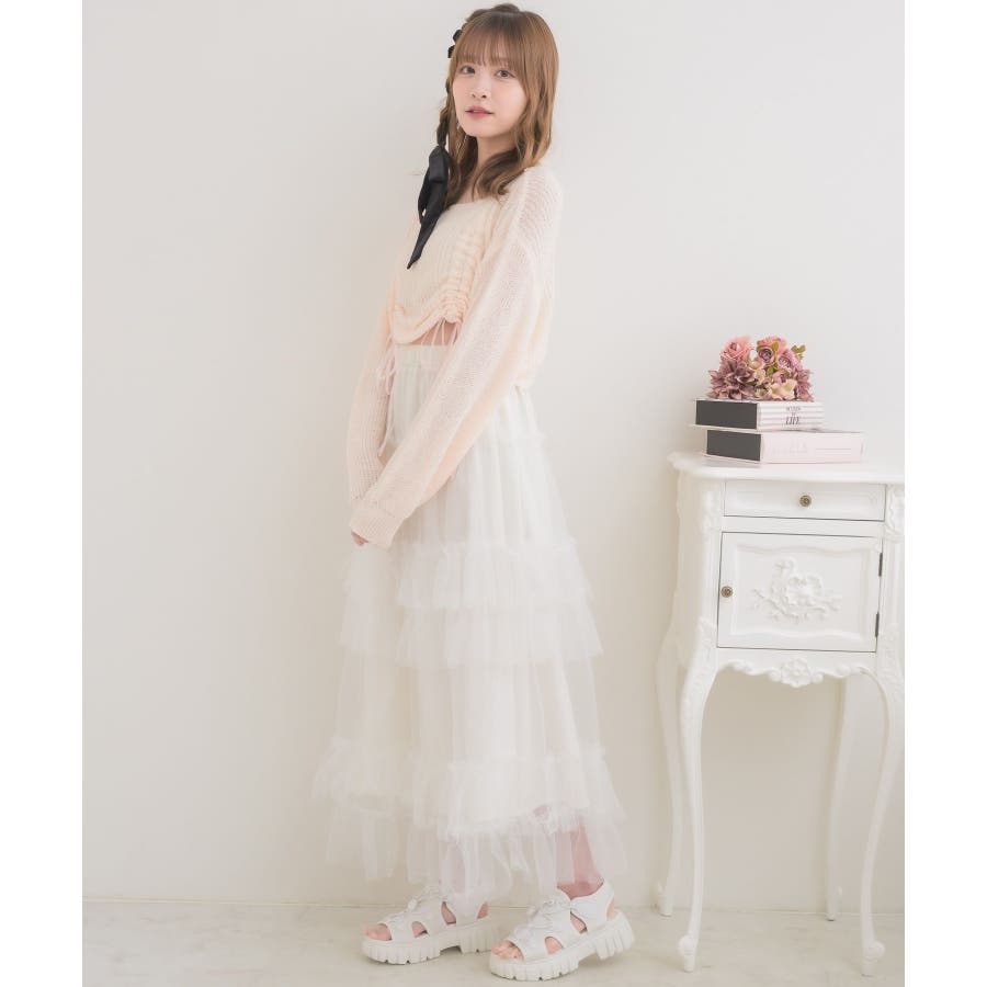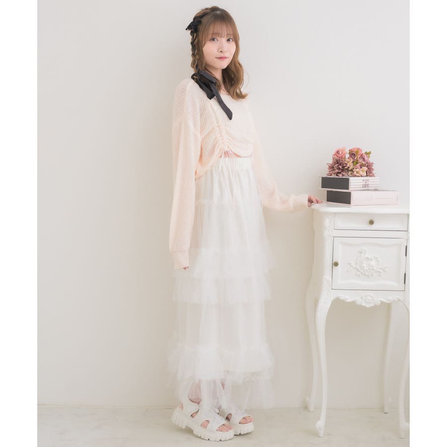 <フロント部分にシャーリングが施されたスカシ編みニット>▼デザインスカシ編みで涼しいサマーニットアイテム。フロント部分はシャーリングデザインが2か所施されていて、着丈の調節が可能です。ウエスト部分をチラッと見せて春夏は涼しい肌見せコーデに♪▼コーディネートガーリーなコーデもカジュアルなコーデも似合うニット!フレアスカートやチュールスカートで女の子らしいスタイリング♪デニムやストレートパンツでカジュアルにも決められます。------------------------------生地感:普通伸縮性:ある透け感:ある裏地:なし------------------------------▼ブランド紹介ems excite (エムズエキサイト)“more fun more cute”今をもっと楽しくもっと可愛くいたい女の子に向けたgirly cuteなブランド#大人ガーリーコーデ #ドロスト #ガーリーコーデ #スカシ編み #サマーニット▼注意事項※撮影環境やモニター環境によって実際の商品とお色味が多少異なってみえる場合がございます。品番:EM580012C003 / 品名:ドロストスカシ編みNTPO