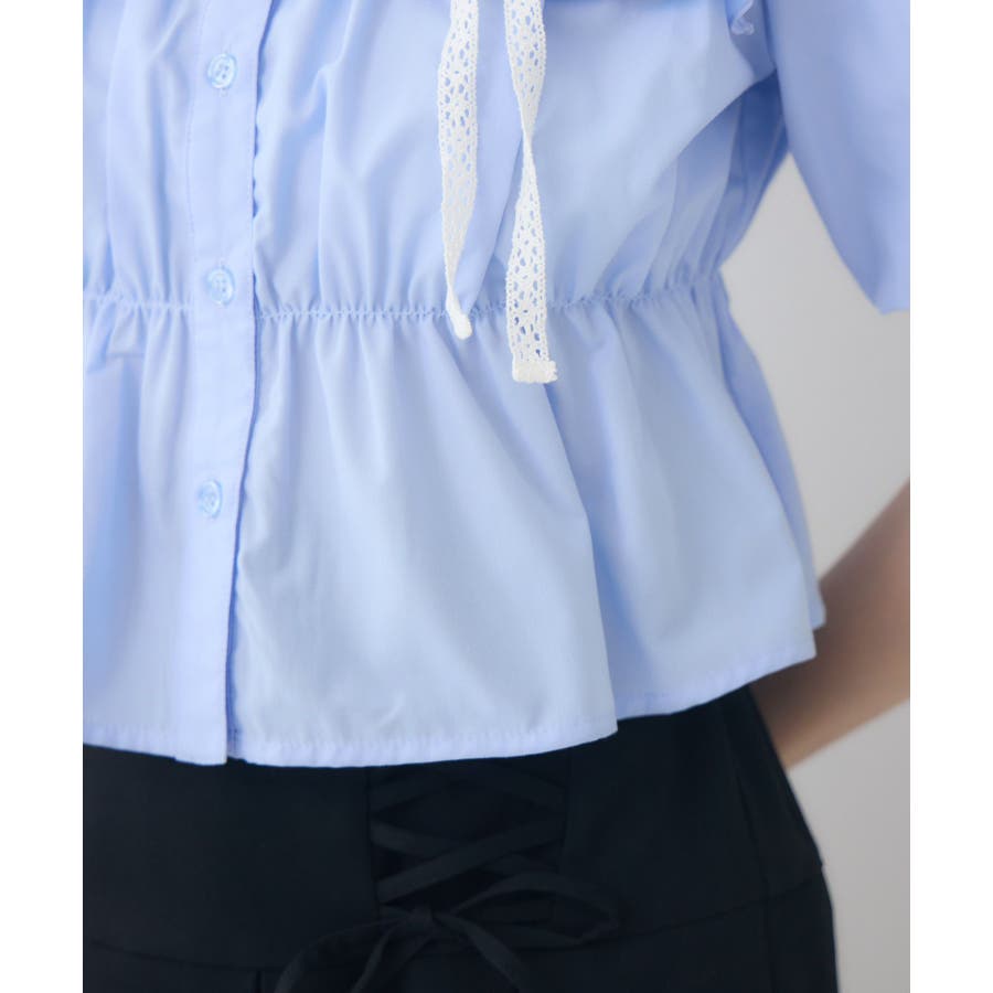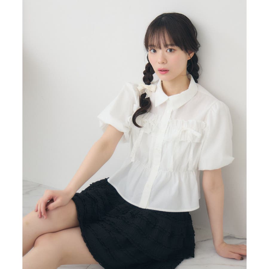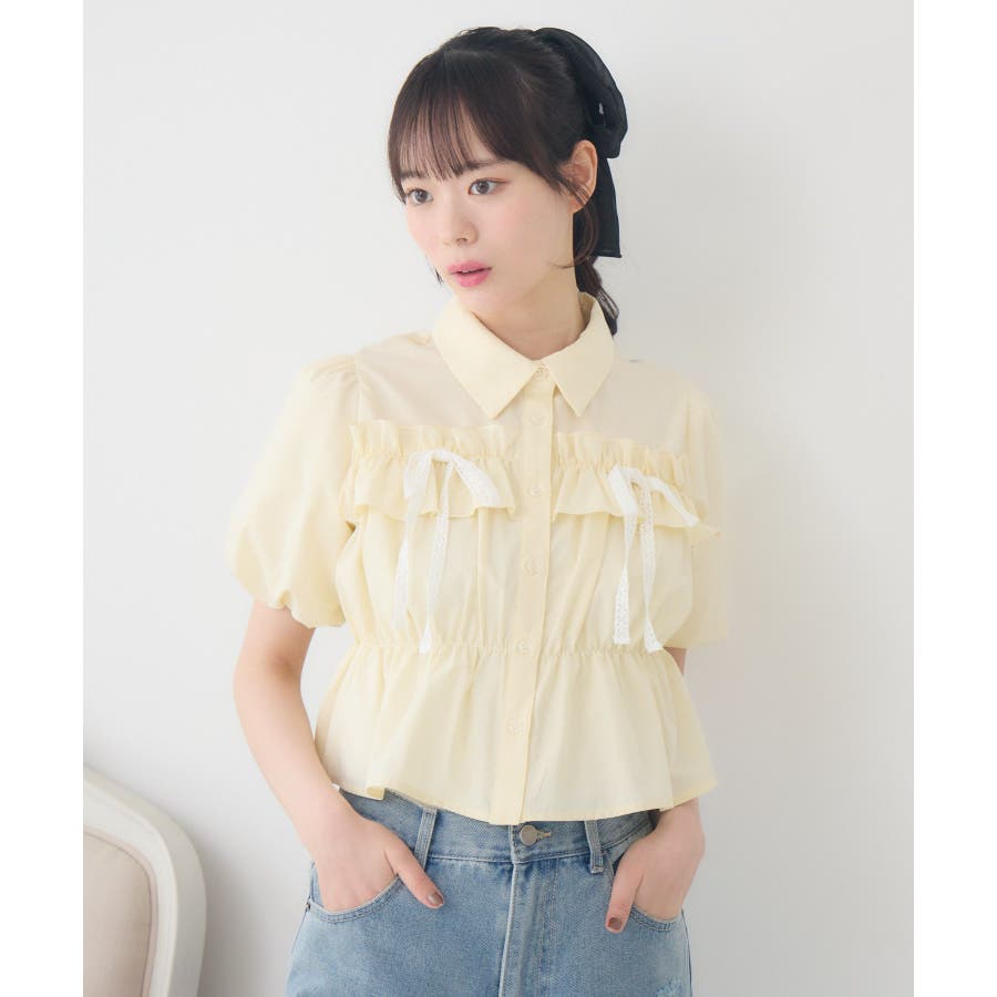 <胸元のギャザーとレースリボンがガーリーなデザインシャツ>▼デザイン昨年も大人気を頂いたemsのシャツアイテム!今年トレンドのギャザーデザインと可愛らしいレースがMIXしたこだわりの1枚。ふわっと広がるペプラムシルエットで、ウエスト周りもカバーしてくれます◎▼コーディネートギャザーとリボンというデザインを活かしたガーリーコーデがおすすめ!フレアスカートが定番ですが、あえてデニムでカジュアルダウンするのも◎------------------------------生地感:普通伸縮性:なし透け感:なし裏地:なし------------------------------▼ブランド紹介ems excite (エムズエキサイト)“more fun more cute”今をもっと楽しくもっと可愛くいたい女の子に向けたgirly cuteなブランド#レースリボン #リボン #リボンシャツ #リボン#リボンデザイン#ガーリーコーデ▼注意事項※撮影環境やモニター環境によって実際の商品とお色味が多少異なってみえる場合がございます。品番:EM580023G011 / 品名:レースリボンペプラムSH