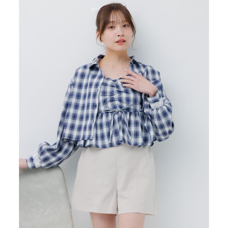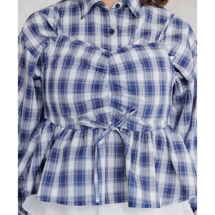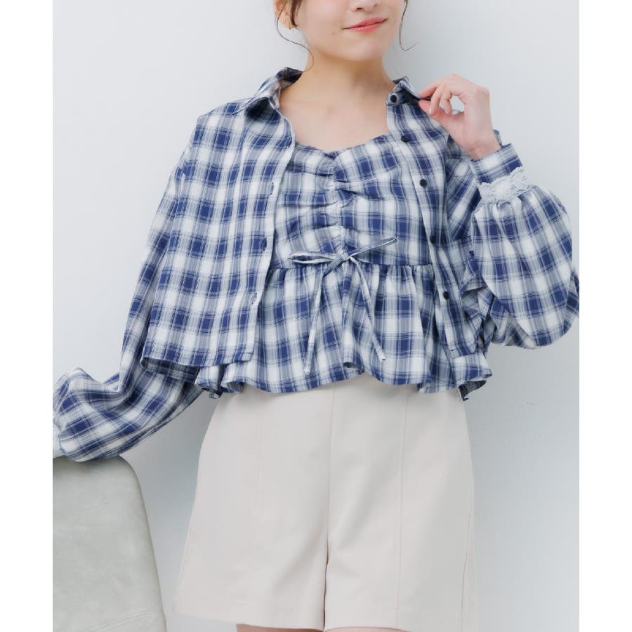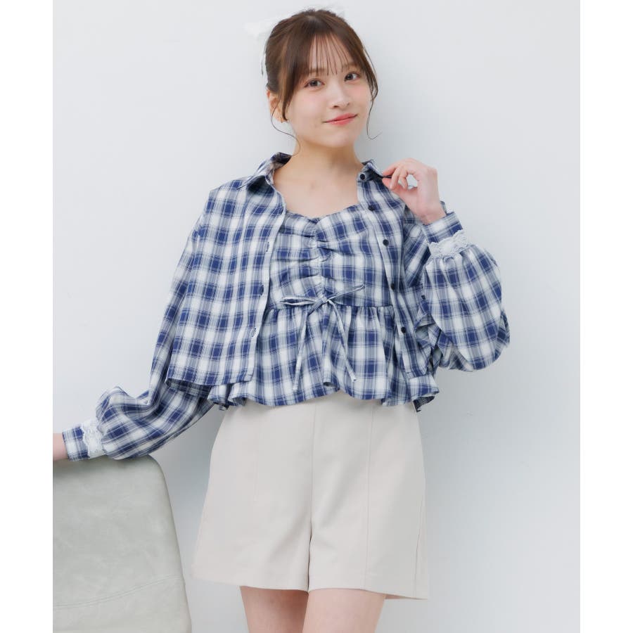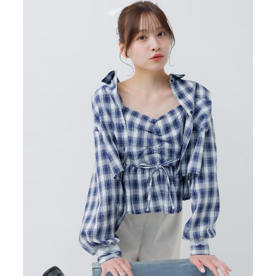 <ビスチェとシャツがセットになった着回し力抜群アイテム!>▼デザインemsexciteで大人気のセットアイテム!ビチェとシャツがセットになりいろんな着回しが楽しめます。シャツをインナーにして、上からビスチェレイヤードしたり、ビスチェをインナーにして、上からシャツを羽織ったり、1枚でコーデの幅が広がるアイテムです。袖部分のレースデザインが目を惹くガーリーなワンポイント♪▼コーディネートセットではもちろん、別々でも着用できるのでコーデの幅が広がる1枚。チェック柄で華やかなアイテムなので、ボトムはシンプルなものと合わせるのがオススメチュールスカートやプリーツスカートでガーリーコーデに。カジュアルに合わせたい時は、デニムパンツやスウェットパンツと合わせてみて♪▼セット内容・シャツ・ビスチェ------------------------------生地感:インナー:普通 ビスチェ:普通伸縮性:インナー:なし ビスチェ:なし透け感:インナー:なし ビスチェ:なし裏地:なし------------------------------▼ブランド紹介ems excite (エムズエキサイト)“more fun more cute”今をもっと楽しくもっと可愛いくいたい女の子に向けたgirly cuteなブランド#インナー #ビスチェ #セットアイテム #シャツ #春コーデ #着回しカーデ ▼注意事項※撮影環境やモニター環境によって実際の商品とお色味が多少異なってみえる場合がございます。品番:EM637523C002 / 品名:ビスチェ&チェックSHセット
