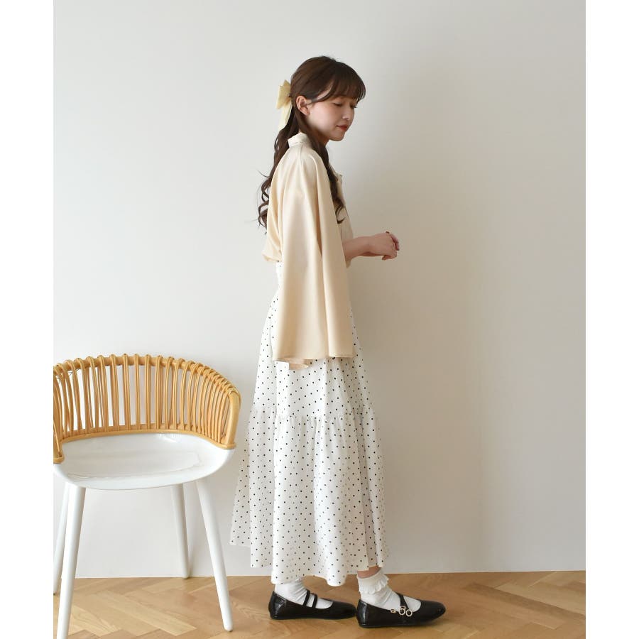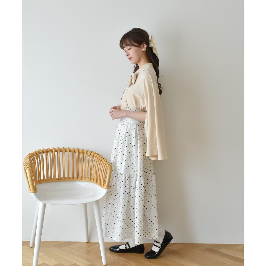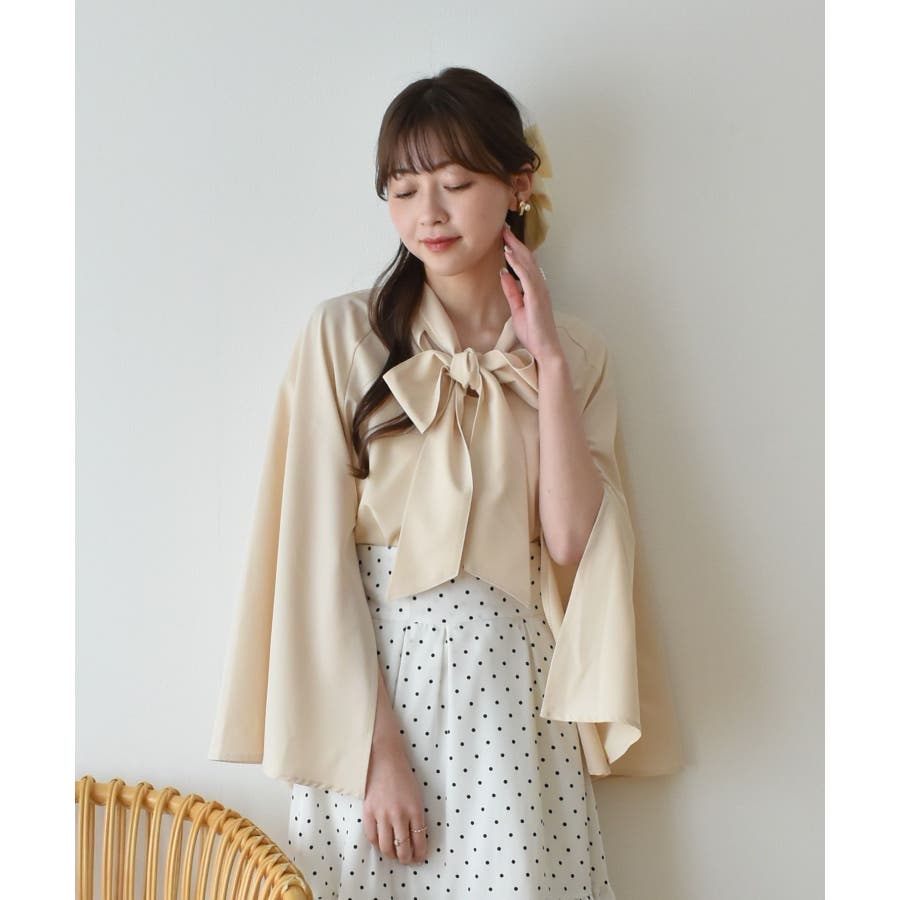 <袖のデサインに注目!トレンドのフレアスリーブブラウス>▼デザイン程よいトレンド感で大人可愛く着られるシャツ今シーズン挑戦したいフレアスリーブが女性らしいドレープ感を演出動く度にひらひらと動きを出してくれますさらに大きめのボウタイデザインで女性らしい印象に仕上げてくれるブラウス▼コーディネートシンプルであわせやすいのに、デザイン性が目をひき存在感抜群の一枚!女性らしいアイテムなので、スカートとの相性抜群!さらに、フェイクレザーアイテムやカジュアルアイテムとあわせて甘辛ミックスもおすすめ!------------------------------生地感:厚手伸縮性:なし透け感:白のみある裏地:なし------------------------------▼ブランド紹介ems excite (エムズエキサイト)“more fun more cute”今をもっと楽しくもっと可愛くいたい女の子に向けたgirly cuteなブランド#ブラウス#フリルブラウス#ボウタイブラウス#ボウタイ#リボンブラウス#デニムコーデ#フレンチガーリー#ガーリーコーデ#袖あき#袖スリット#フレアスリーブ▼注意事項※撮影環境やモニター環境によって実際の商品とお色味が多少異なってみえる場合がございます。品番:EP380023B007 / 品名:フレアスリーブボウタイブラウス