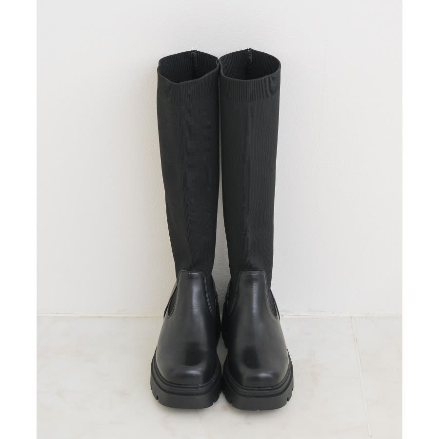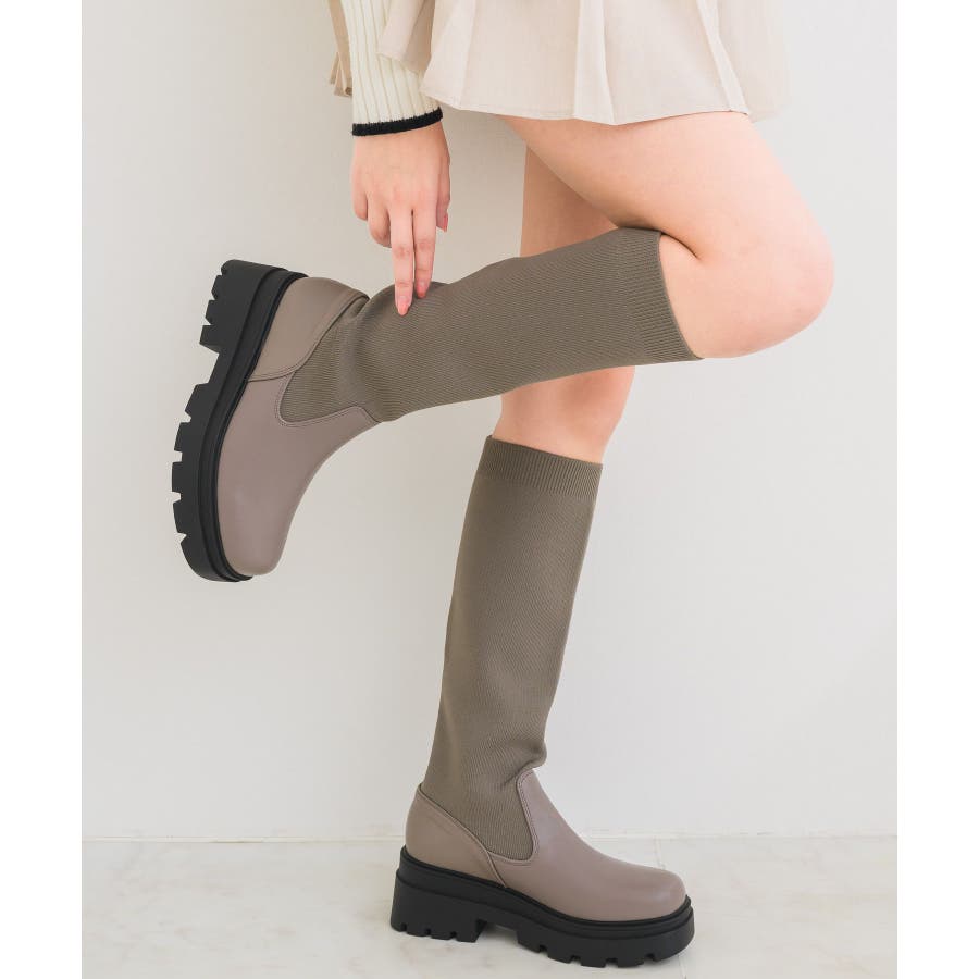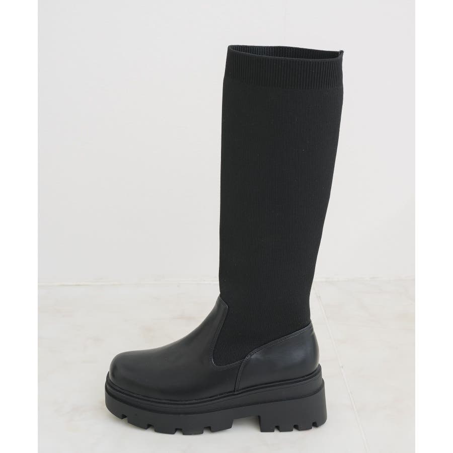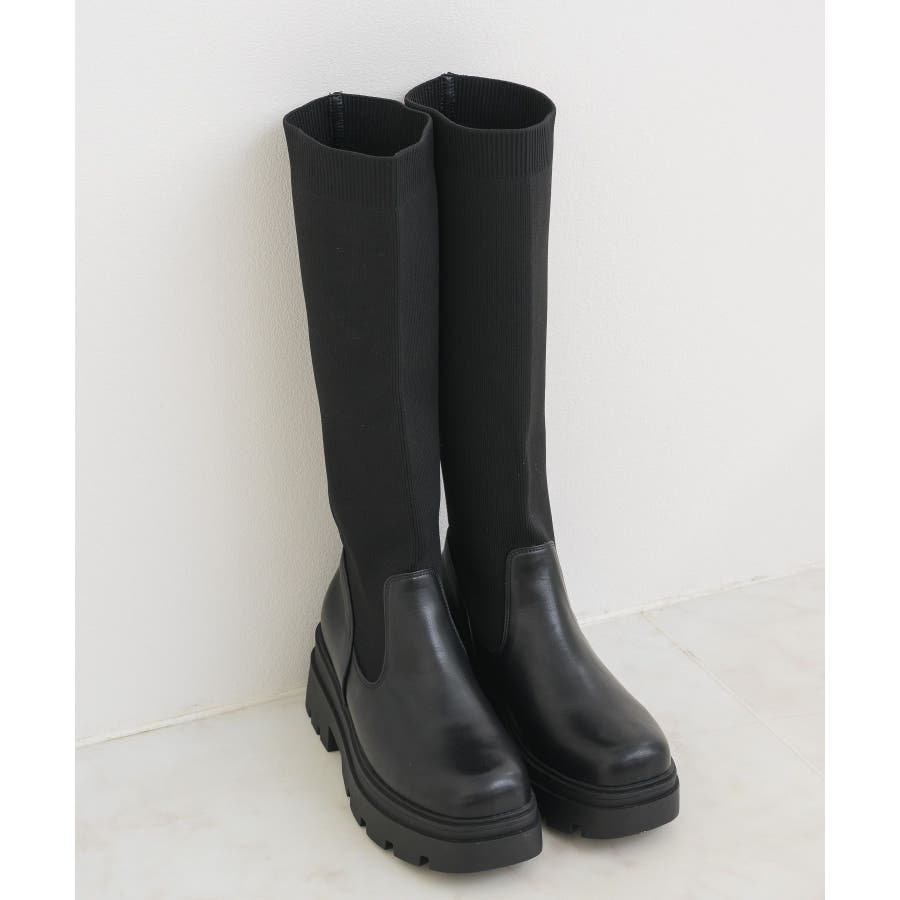 <新素材のソックスロングブーツ>▼デザイン伸縮性抜群のソックス素材のロングブーツ。フェイクレザーとリブニット部分が切替デザインになっているのもデザイン性があり嬉しい!厚底で、スタイルアップ効果も抜群です。春先にも使える素材感のロングブーツは、1つは持っておきたいアイテム♪▼コーディネートミニ丈アイテムとの相性が抜群のアイテムです。脚のサイズ感に合わせて伸縮してくれるので、どんな方にもぴったりサイズ!▼ブランド紹介ems excite (エムズエキサイト)“more fun more cute”今をもっと楽しくもっと可愛くいたい女の子に向けたgirly cuteなブランド#ロングブーツ#ロングブーツコーデ#厚底ブーツ#ブーツ#足元倶楽部#ブーツコーデ #ソックスブーツ #ニットブーツ▼注意事項※撮影環境やモニター環境によって実際の商品とお色味が 多少異なってみえる場合がございます。品番:EP451242T001/ 品名:ソックスロングブーツ