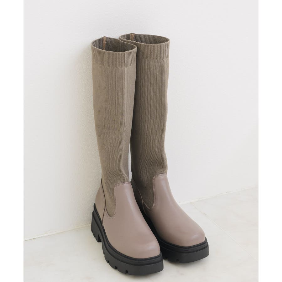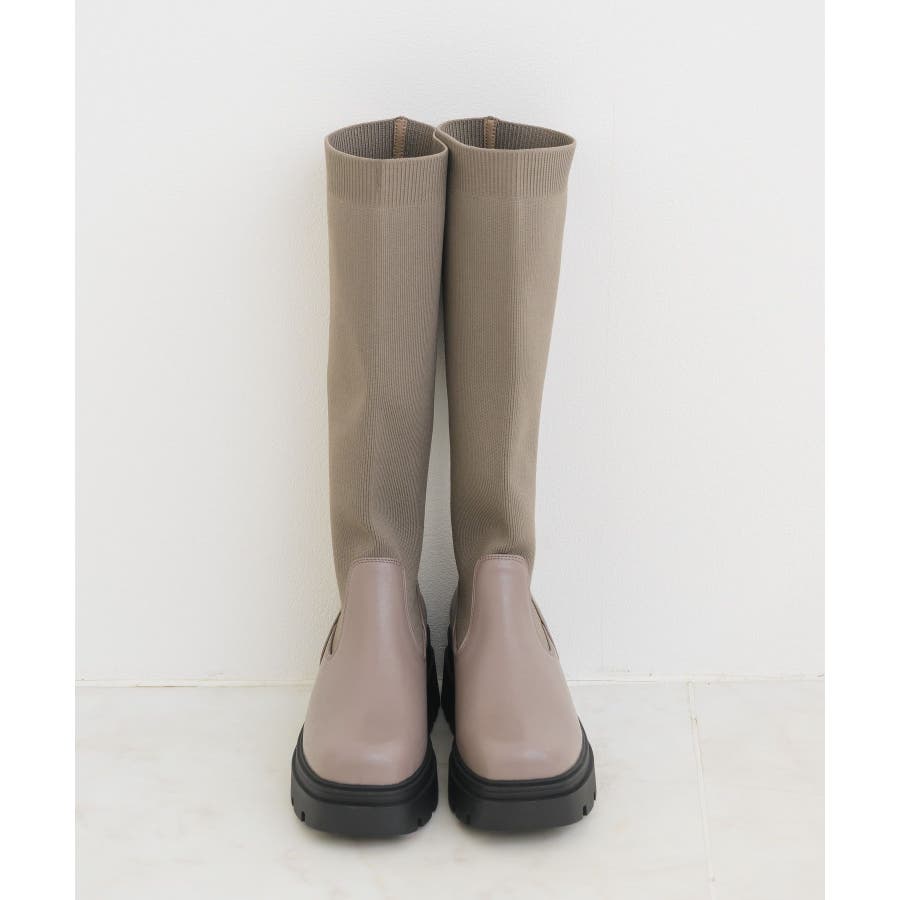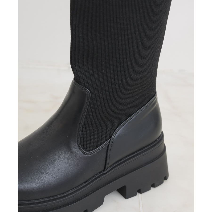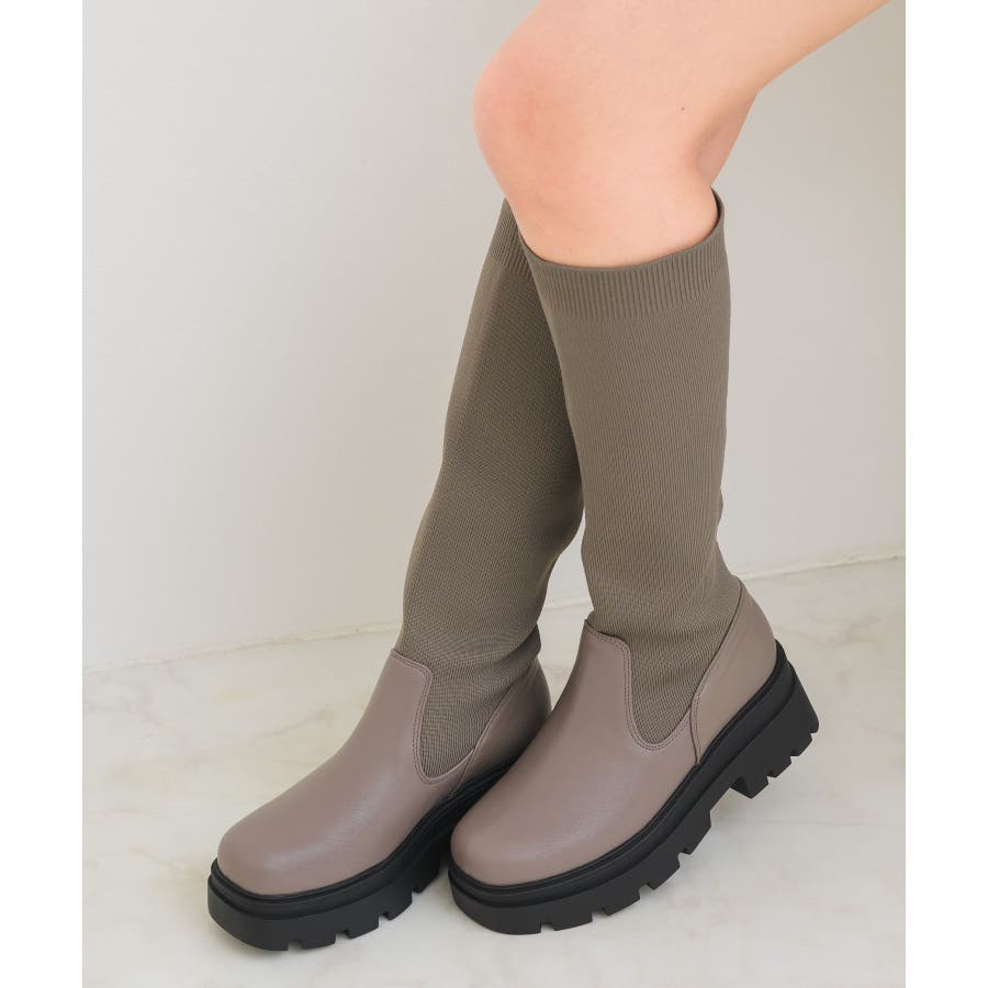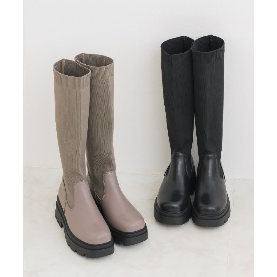 <新素材のソックスロングブーツ>▼デザイン伸縮性抜群のソックス素材のロングブーツ。フェイクレザーとリブニット部分が切替デザインになっているのもデザイン性があり嬉しい!厚底で、スタイルアップ効果も抜群です。春先にも使える素材感のロングブーツは、1つは持っておきたいアイテム♪▼コーディネートミニ丈アイテムとの相性が抜群のアイテムです。脚のサイズ感に合わせて伸縮してくれるので、どんな方にもぴったりサイズ!▼ブランド紹介ems excite (エムズエキサイト)“more fun more cute”今をもっと楽しくもっと可愛くいたい女の子に向けたgirly cuteなブランド#ロングブーツ#ロングブーツコーデ#厚底ブーツ#ブーツ#足元倶楽部#ブーツコーデ #ソックスブーツ #ニットブーツ▼注意事項※撮影環境やモニター環境によって実際の商品とお色味が 多少異なってみえる場合がございます。品番:EP451242T001/ 品名:ソックスロングブーツ