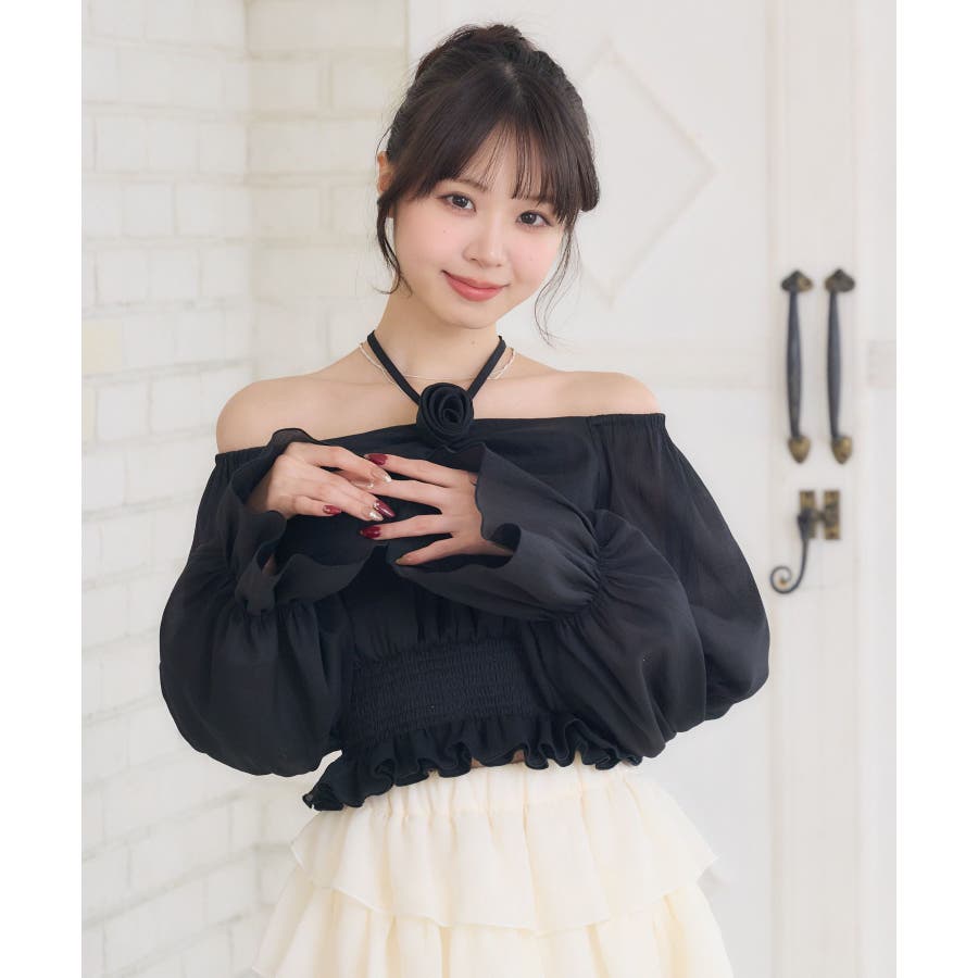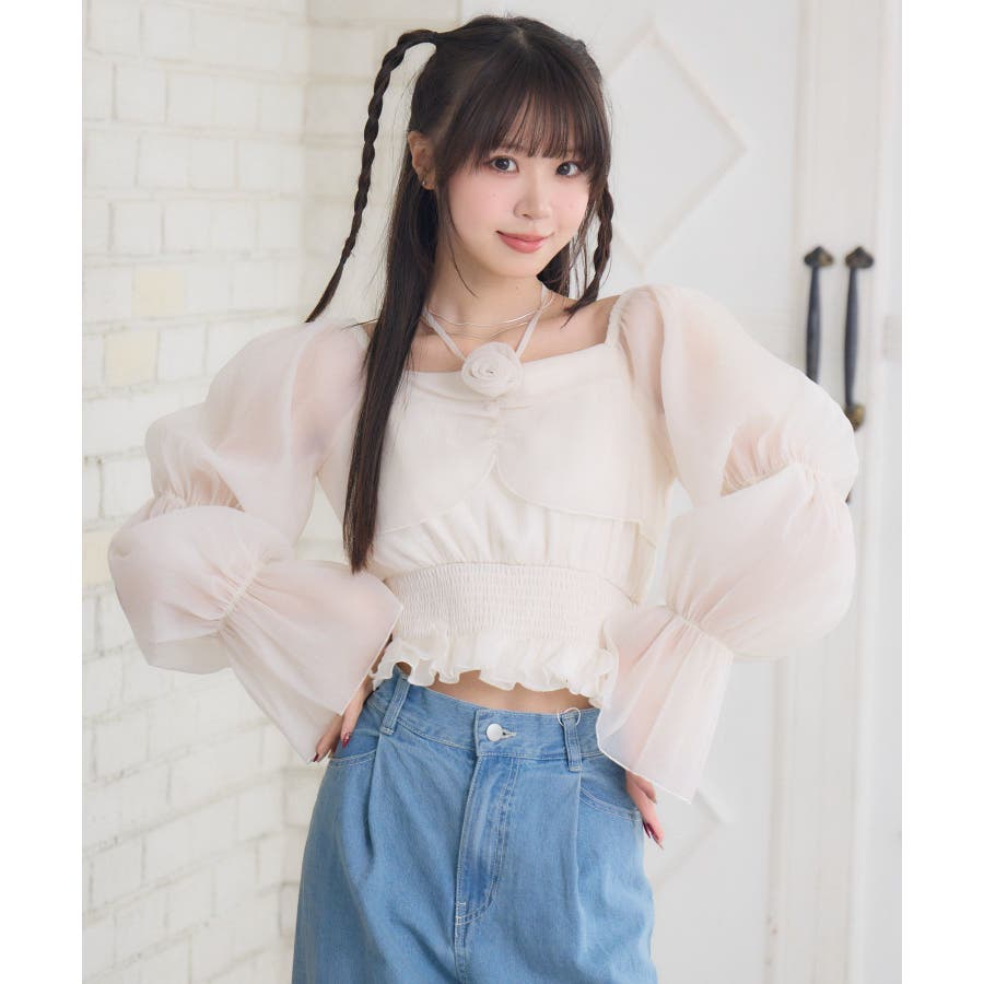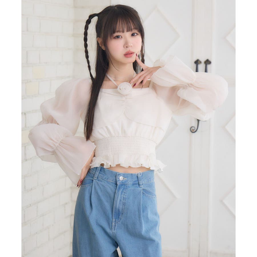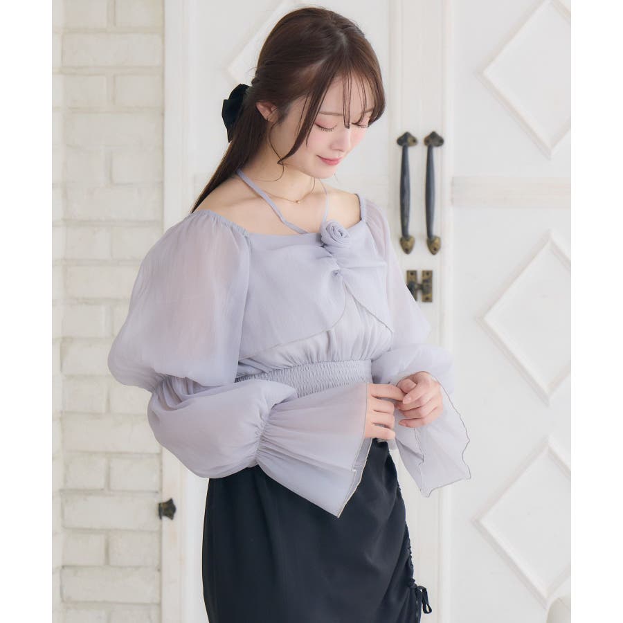 <ローズモチーフが可愛い透け感ブラウス>▼デザイン胸元に咲くローズデザインが可愛いブラウスアイテム。首回りがしっかり空いているので、女性らしいデコルテデザインが際立つアイテム。袖は2か所で絞られていて、ボリューム感たっぷりの袖が可愛いシルエットに。ホルターネックデザインは、取り外し可能なので、ネックレスと合わせる時も安心◎▼コーディネートマーメイドスカートやフレアスカートを合わせ、女の子らしさレベルアップしても可愛いです!デニム合わせしてカジュアルダウンさせても、オフショルダーで着用しても◎------------------------------生地感:薄手伸縮性:ある透け感:袖部分はある裏地:ある------------------------------▼ブランド紹介ems excite (エムズエキサイト)“more fun more cute”今をもっと楽しくもっと可愛くいたい女の子に向けたgirly cuteなブランド#ローズ #ローズブラウス #シアーブラウス #シアー #ブラウス #ブラウスコーデ #ホルターネック▼注意事項※撮影環境やモニター環境によって実際の商品とお色味が多少異なってみえる場合がございます。品番:EP537523G002 / 品名:バラモチーフ付BL