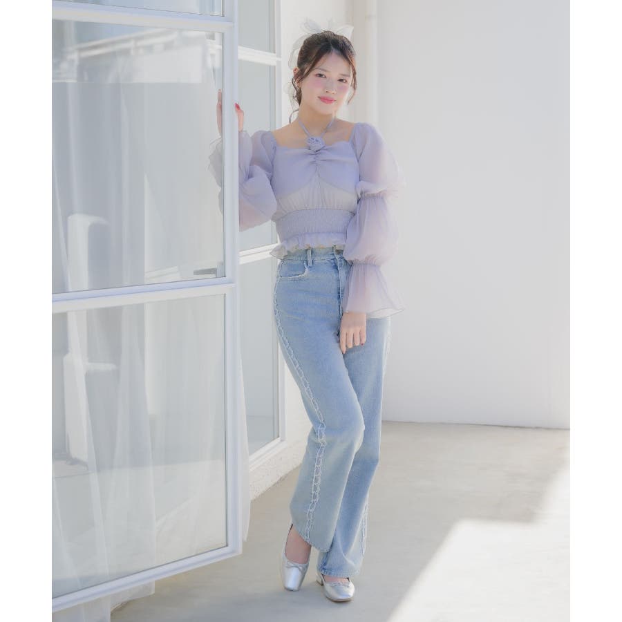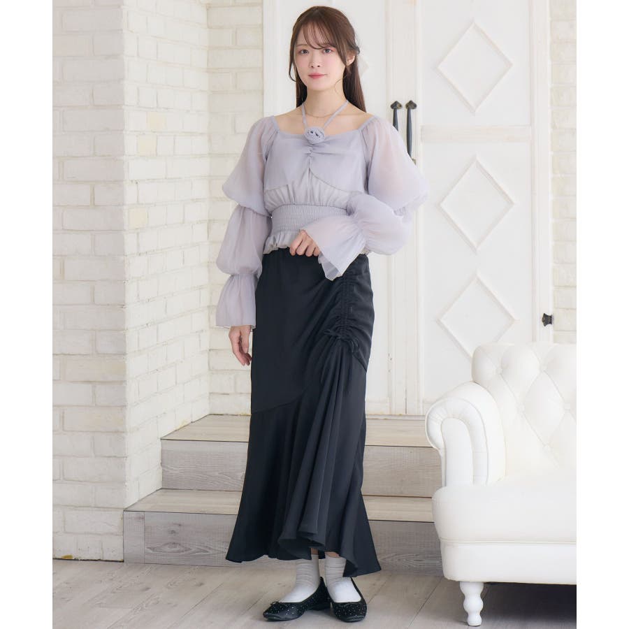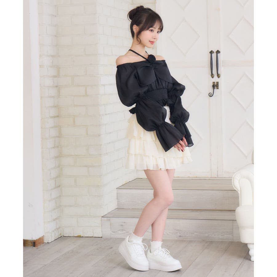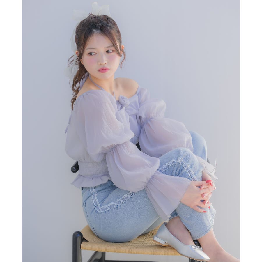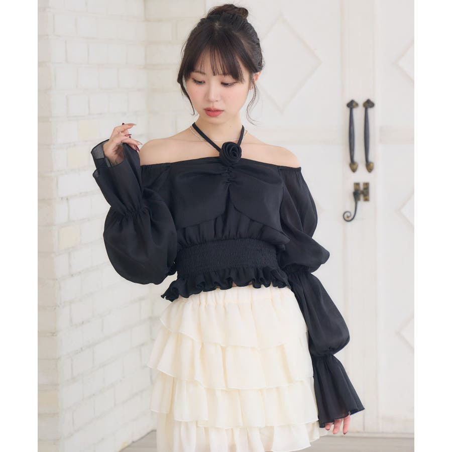 <ローズモチーフが可愛い透け感ブラウス>▼デザイン胸元に咲くローズデザインが可愛いブラウスアイテム。首回りがしっかり空いているので、女性らしいデコルテデザインが際立つアイテム。袖は2か所で絞られていて、ボリューム感たっぷりの袖が可愛いシルエットに。ホルターネックデザインは、取り外し可能なので、ネックレスと合わせる時も安心◎▼コーディネートマーメイドスカートやフレアスカートを合わせ、女の子らしさレベルアップしても可愛いです!デニム合わせしてカジュアルダウンさせても、オフショルダーで着用しても◎------------------------------生地感:薄手伸縮性:ある透け感:袖部分はある裏地:ある------------------------------▼ブランド紹介ems excite (エムズエキサイト)“more fun more cute”今をもっと楽しくもっと可愛くいたい女の子に向けたgirly cuteなブランド#ローズ #ローズブラウス #シアーブラウス #シアー #ブラウス #ブラウスコーデ #ホルターネック▼注意事項※撮影環境やモニター環境によって実際の商品とお色味が多少異なってみえる場合がございます。品番:EP537523G002 / 品名:バラモチーフ付BL