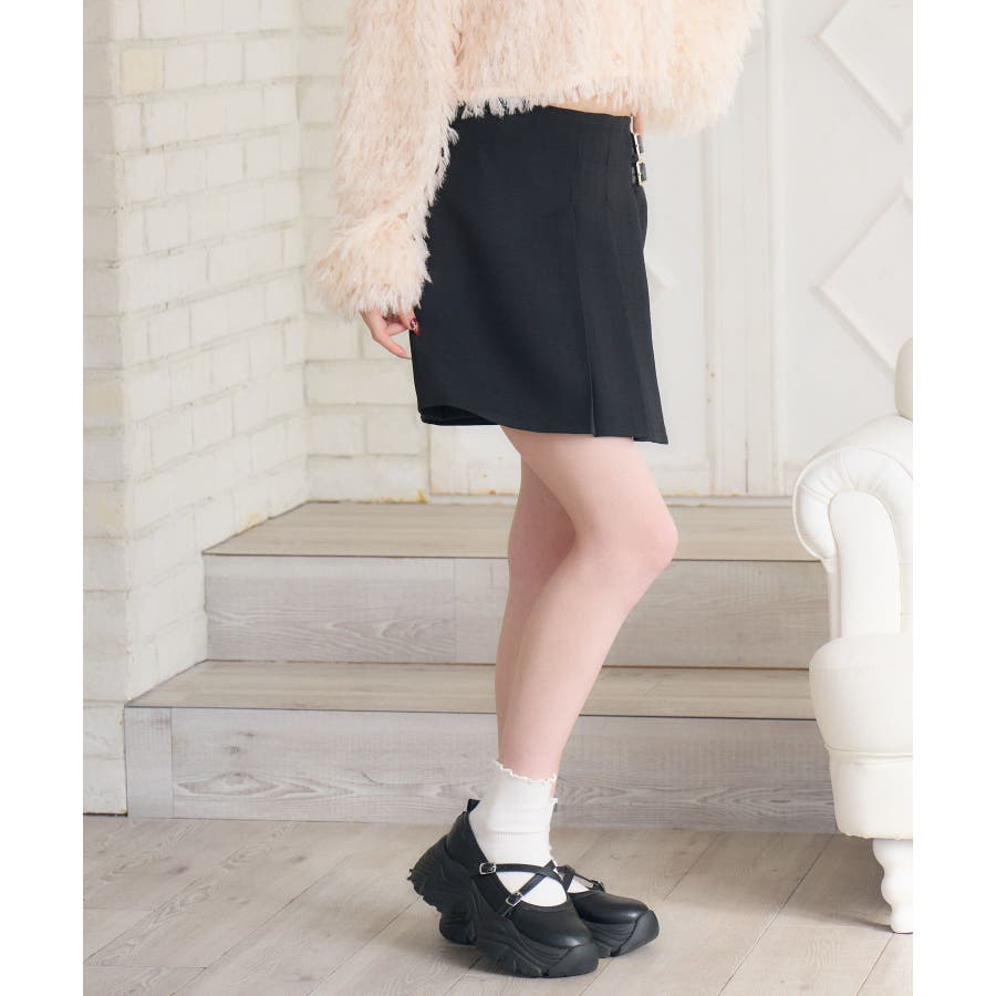 <衣装のように華やかなラップミニスカート>▼デザインサイドにWベルトが施されたラップミニスカート。フロント部分はプリーツデザインになっていて、スクールスタイルにもおすすめ、しっかりした生地感で、アイドル衣装顔負けのデザインとシルエットに。定番のブラックとホワイトでご用意しております♪▼コーディネートプリーツが入っていながらも、タイトなシルエットなので、骨格ストレートさんでも着やすいプリーツに!ウエスト部分をしっかり見せて、このスカートのデザイン性の高さを活かしたスタイリングにしてみて下さい。------------------------------生地感:普通伸縮性:なし透け感:なし裏地:ある------------------------------▼ブランド紹介ems excite (エムズエキサイト)“more fun more cute”今をもっと楽しくもっと可愛くいたい女の子に向けたgirly cuteなブランド#Wベルト #ミニスカート #ラップスカート #デザインスカート #スカートパンツ▼注意事項※撮影環境やモニター環境によって実際の商品とお色味が多少異なってみえる場合がございます。品番:EP537532B001 / 品名:ラップ風ミニスカパン