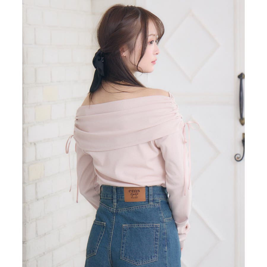 <ヘルシーな肌見せが叶う春温度カットソー>▼デザイン今年トレンドの折り返しデザインのカットソー!両サイドがリボンでドロストされていて、デザイン性抜群◎伸縮性のあるカットソーで、ラインをきれいに見せてくれます!インナー使いにもおすすめのアイテムです。▼コーディネートマーメイドスカートやフレアスカートを合わせ、女の子らしいコーデも可愛いです!デニム合わせしてカジュアルダウンさせても◎------------------------------生地感:普通伸縮性:ある透け感:ある裏地:なし------------------------------▼ブランド紹介ems excite (エムズエキサイト)“more fun more cute”今をもっと楽しくもっと可愛くいたい女の子に向けたgirly cuteなブランド#カットソー #オフショルダー #リボン #ドロスト #折り返しデザイン▼注意事項※撮影環境やモニター環境によって実際の商品とお色味が多少異なってみえる場合がございます。品番:EP541511G003 / 品名:リボン付きオフショルCT