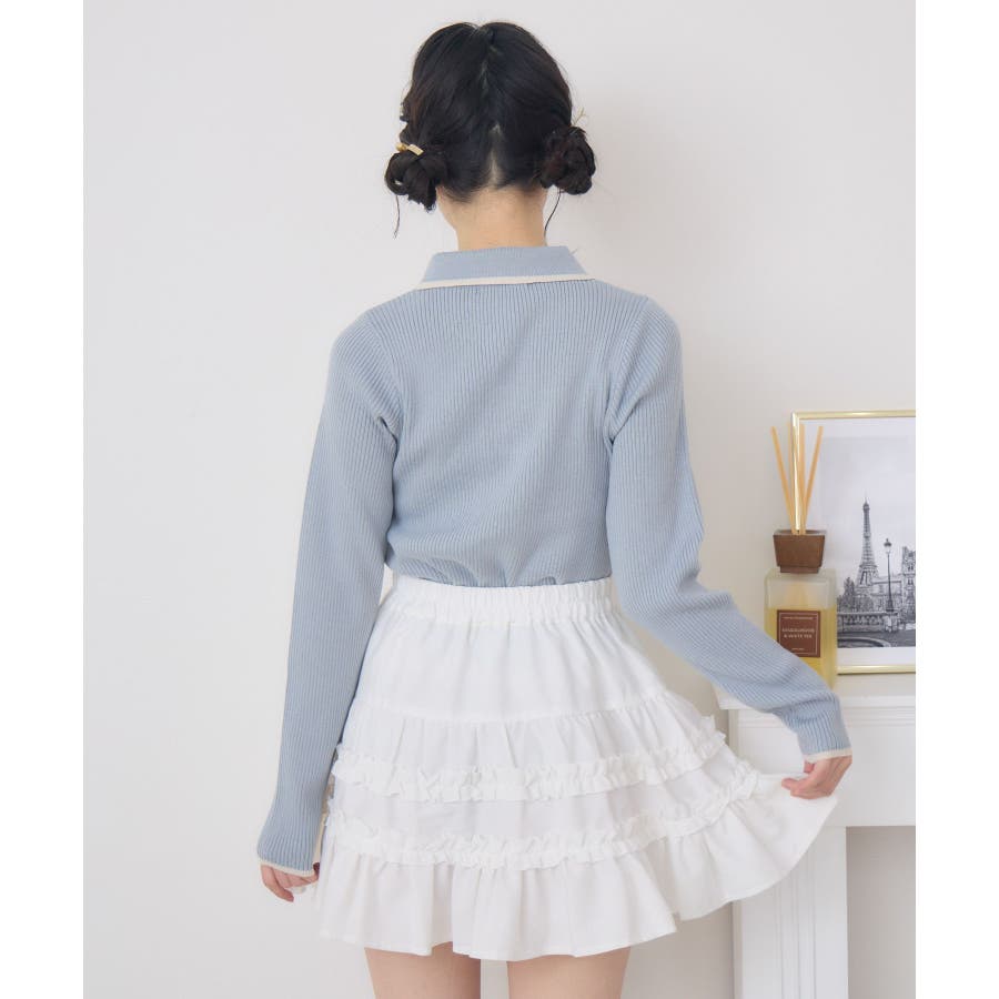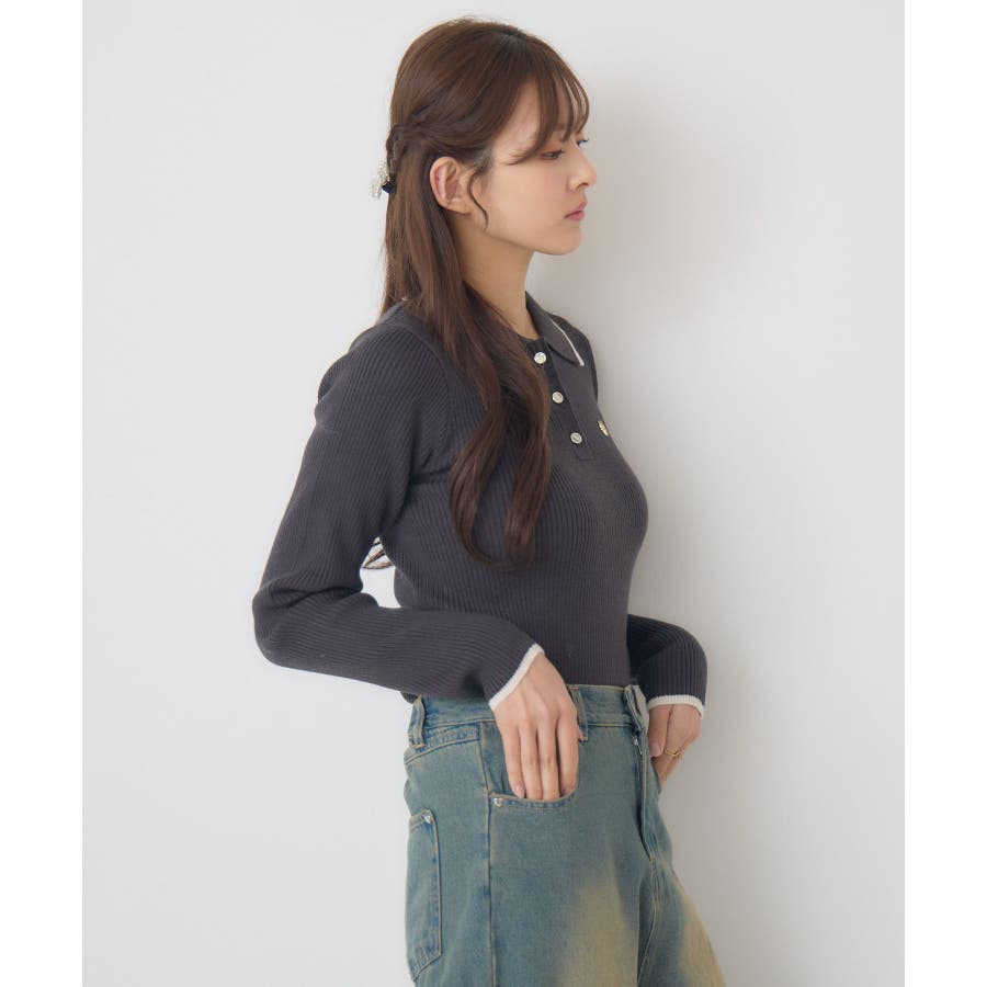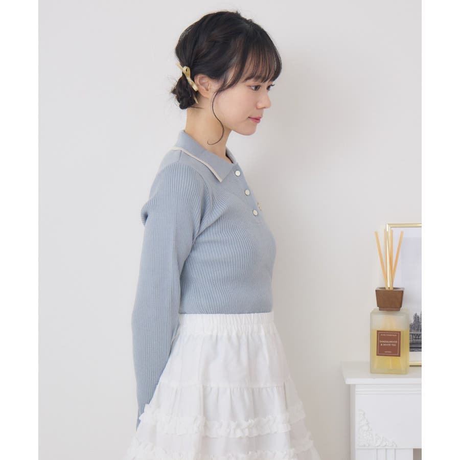 <ポロ風デザインの大人気襟付きニット>▼デザイン胸元にemsオリジナルのプレートがが施された襟ニットプルオーバー!フロントデザインのゴールドボタンが韓国っぽさを感じます♪襟には配色使いのラインデザインも!リブ素材のニットで、伸縮性もばっちりなので、お出かけの日にセレクトしても1日中ストレスフリーで楽しんで頂けます。▼コーディネート襟付きアイテムなので、着るだけでコーデを上品にしてくれるアイテムです。スクールガールコーデもお任せ◎------------------------------生地感:普通伸縮性:ある透け感:なし裏地:なし------------------------------▼ブランド紹介ems excite (エムズエキサイト)“more fun more cute”今をもっと楽しくもっと可愛くいたい女の子に向けたgirly cuteなブランド#大人ガーリーコーデ #襟付きニット #ガーリーコーデ #配色デザイン #バイカラー▼注意事項※撮影環境やモニター環境によって実際の商品とお色味が多少異なってみえる場合がございます。品番:EP541512B002 / 品名:襟バイカラーリブNTPO