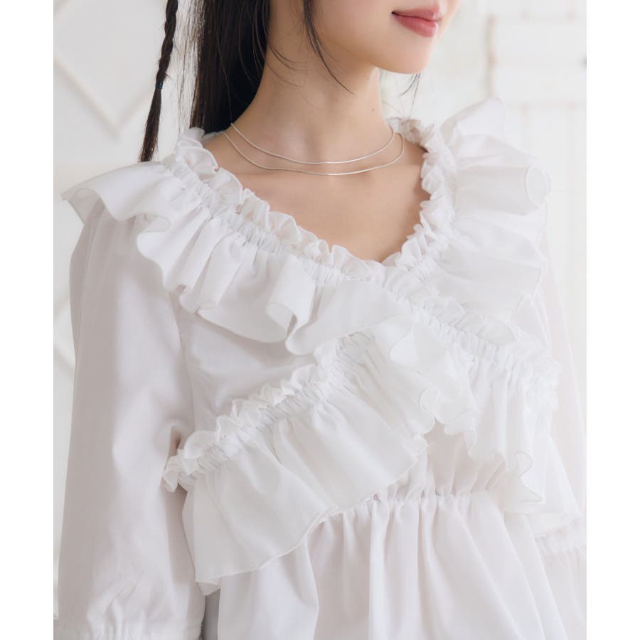 <フリルたっぷりの甘めブラウス>▼デザインクロスでフリルがあしらわれた甘めデザインのブラウス。袖口は大きなスリットが入っているので、ふわっと広がるシルエットが可愛い!オフショルダーとして着ることもできるので、夏まで大活躍◎▼コーディネートマーメイドスカートやフレアスカートを合わせ、女の子らしいコーデも可愛いです!デニム合わせしてカジュアルダウンさせても◎骨格ウェーブさんは、オフショルダースタイルで綺麗なデコルテ部分を魅せるスタイリングがおすすめです。------------------------------生地感:普通伸縮性:なし透け感:なし裏地:なし------------------------------▼ブランド紹介ems excite (エムズエキサイト)“more fun more cute”今をもっと楽しくもっと可愛くいたい女の子に向けたgirly cuteなブランド#クロス #ブラウス #フリルブラウス #スリット #ブラウスコーデ▼注意事項※撮影環境やモニター環境によって実際の商品とお色味が多少異なってみえる場合がございます。品番:EP555823B001 / 品名:クロスフリルBL