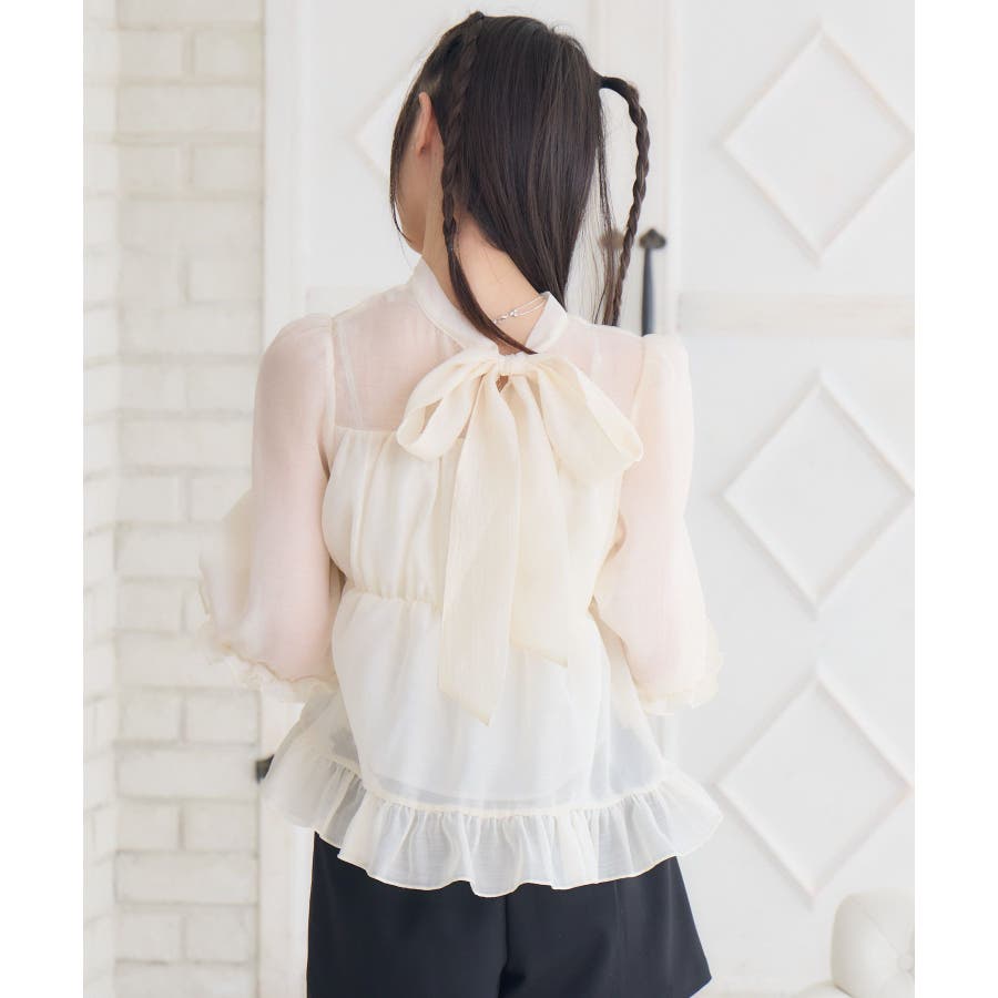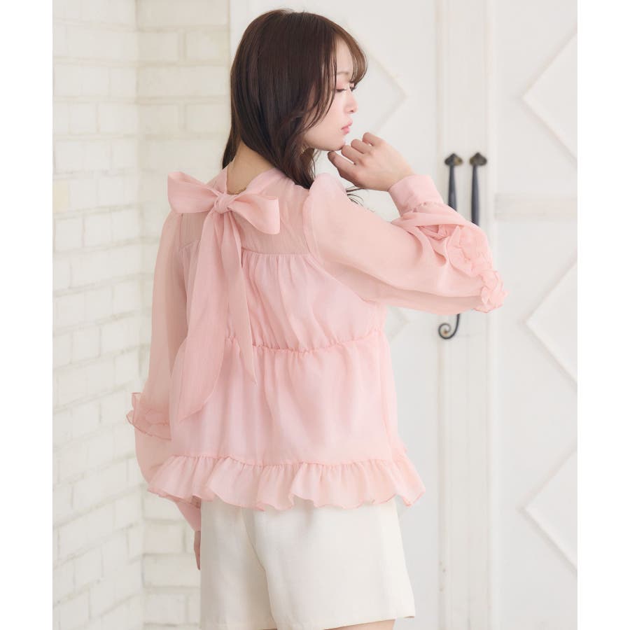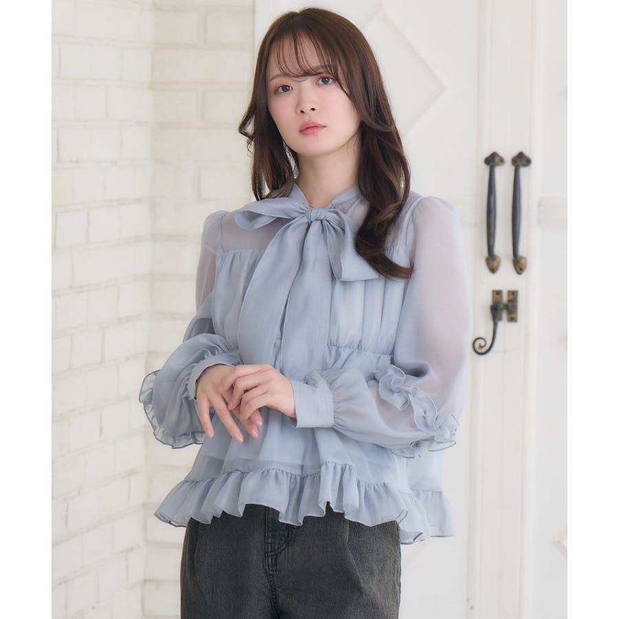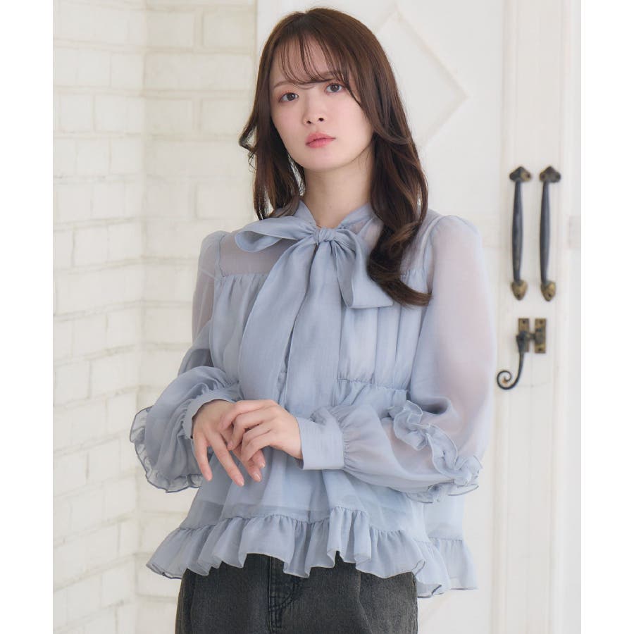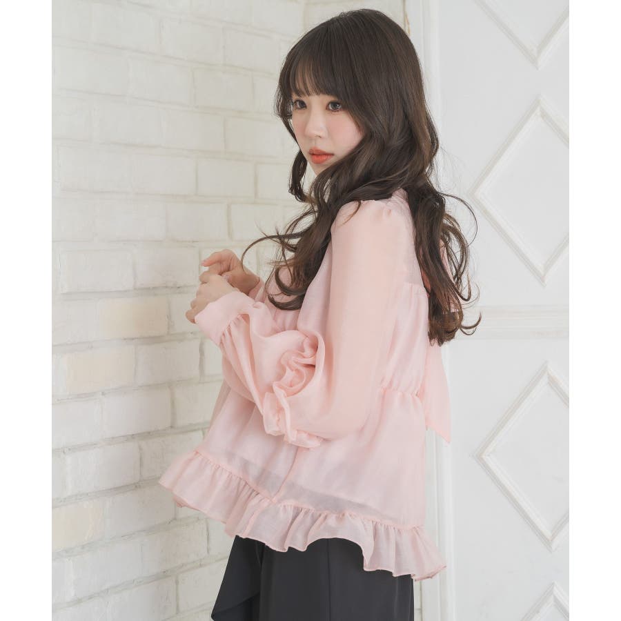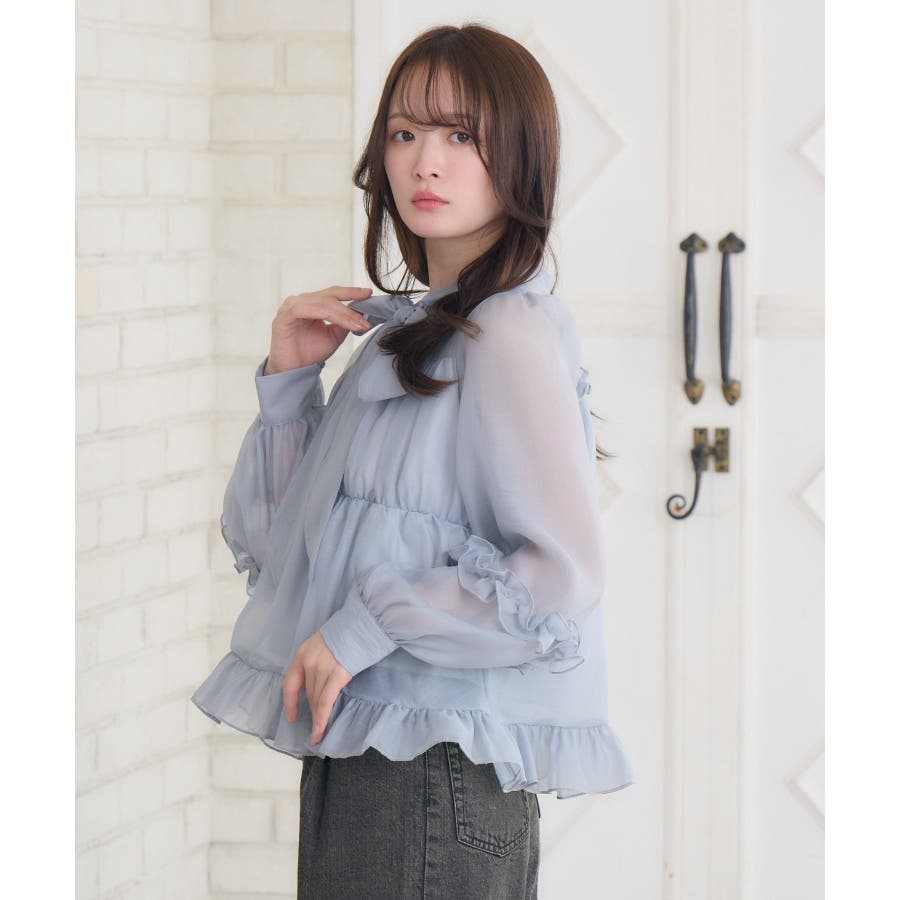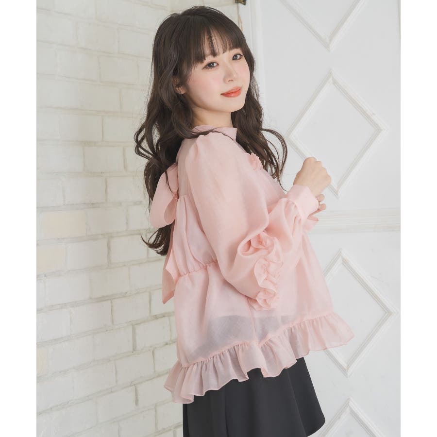 <前後2wayで着こなせる春らしい透け感ブラウス>▼デザイン春らしい透け感が可愛いブラウス。前リボンで着用すれば、ボウタイデザインで甘く可愛いスタイリングに。バックリボンでも着用可能な2wayデザインなので、後ろ姿も気を抜けない女の子にぴったり。ティアード風のメリハリのあるシルエットで、裾はフリルが可愛いガーリーな1枚です。▼コーディネートガーリーで春らしいスタイリングにセレクトしたいブラウス。ボトムを選ばないシンプルなデザインで、2wayのお作りでコーデの幅が広がります。------------------------------生地感:薄手伸縮性:なし透け感:あり裏地:袖部分なし/フロント部分あり------------------------------▼ブランド紹介ems excite (エムズエキサイト)“more fun more cute”今をもっと楽しくもっと可愛くいたい女の子に向けたgirly cuteなブランド#シアー素材 #フリル #2way #袖フリル #ボウタイ #透け感 #リボン▼注意事項※撮影環境やモニター環境によって実際の商品とお色味が 多少異なってみえる場合がございます。品番:EP556223B001 / 品名:2wayシアーフリルBL