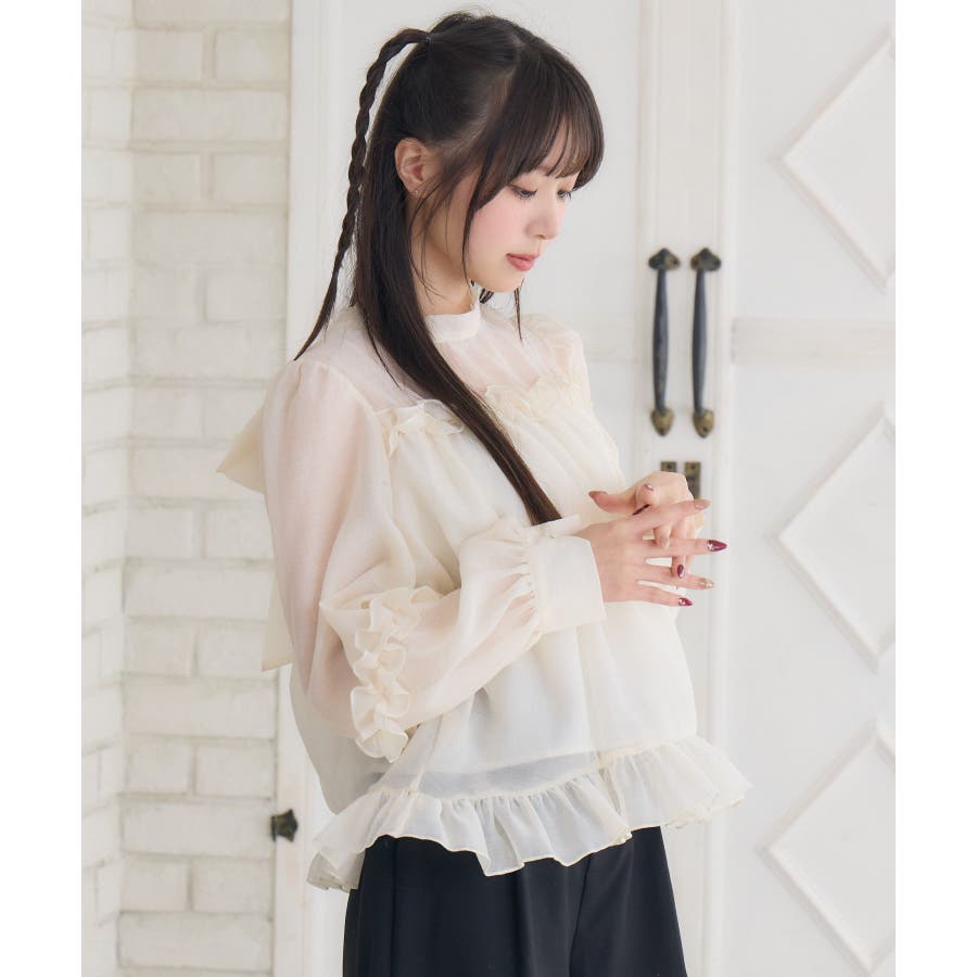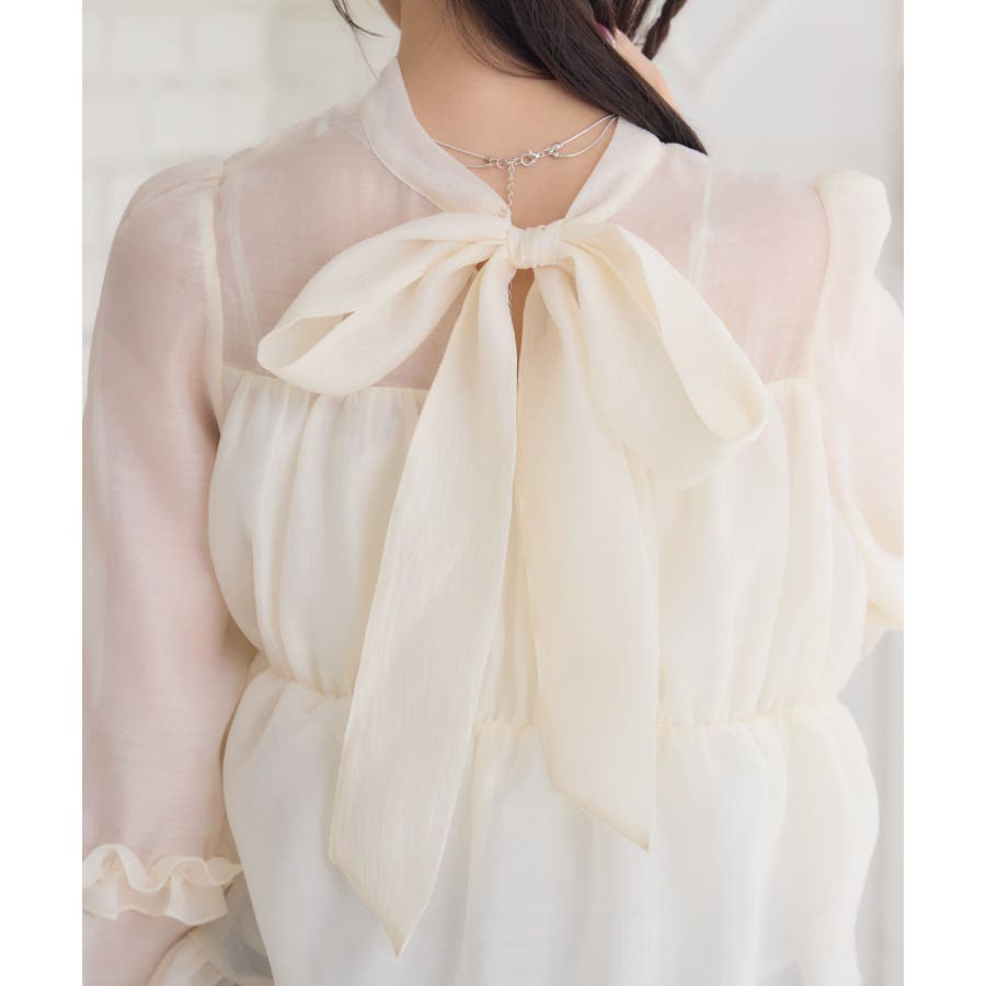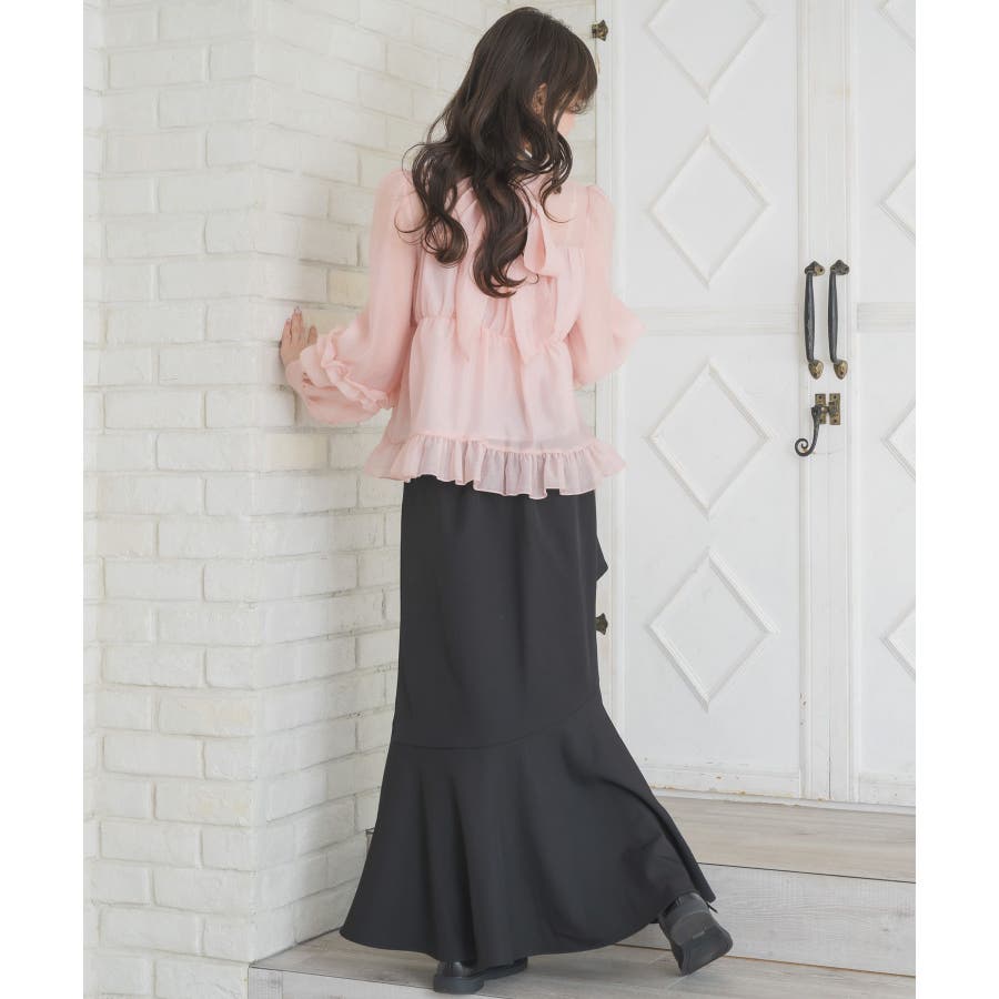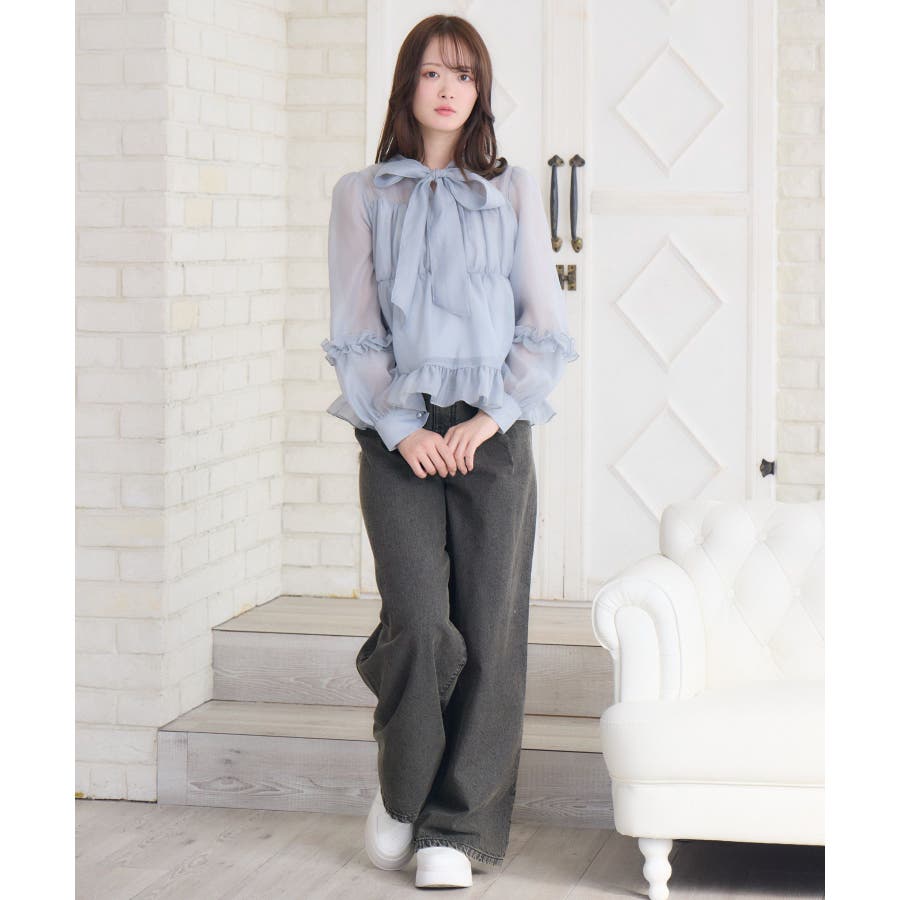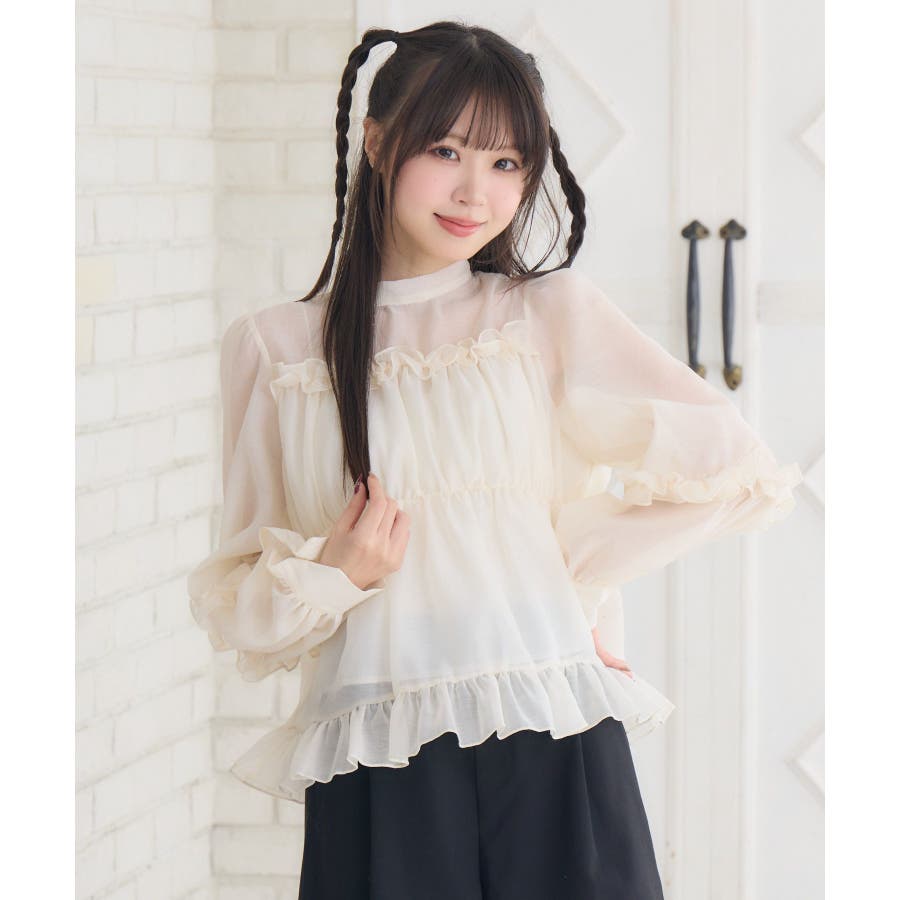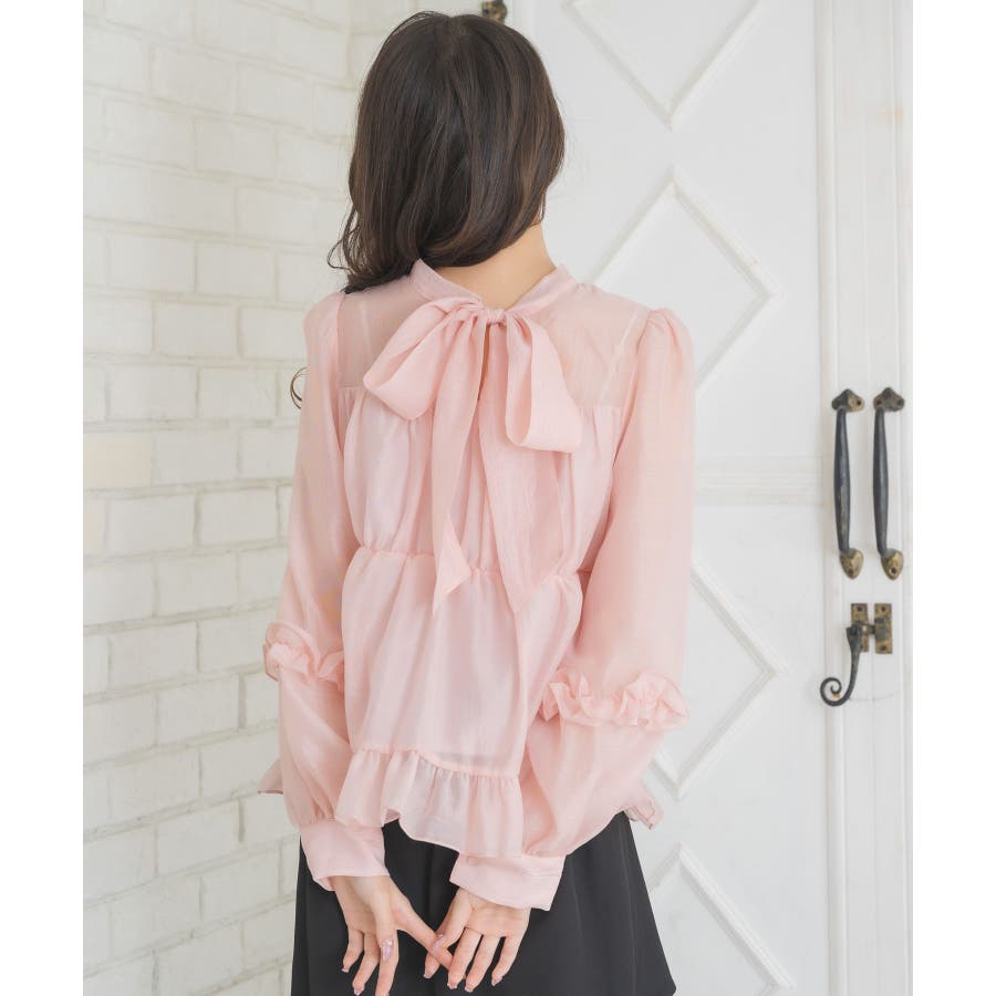 <前後2wayで着こなせる春らしい透け感ブラウス>▼デザイン春らしい透け感が可愛いブラウス。前リボンで着用すれば、ボウタイデザインで甘く可愛いスタイリングに。バックリボンでも着用可能な2wayデザインなので、後ろ姿も気を抜けない女の子にぴったり。ティアード風のメリハリのあるシルエットで、裾はフリルが可愛いガーリーな1枚です。▼コーディネートガーリーで春らしいスタイリングにセレクトしたいブラウス。ボトムを選ばないシンプルなデザインで、2wayのお作りでコーデの幅が広がります。------------------------------生地感:薄手伸縮性:なし透け感:あり裏地:袖部分なし/フロント部分あり------------------------------▼ブランド紹介ems excite (エムズエキサイト)“more fun more cute”今をもっと楽しくもっと可愛くいたい女の子に向けたgirly cuteなブランド#シアー素材 #フリル #2way #袖フリル #ボウタイ #透け感 #リボン▼注意事項※撮影環境やモニター環境によって実際の商品とお色味が 多少異なってみえる場合がございます。品番:EP556223B001 / 品名:2wayシアーフリルBL