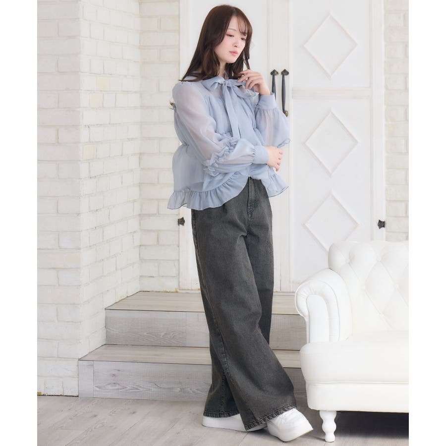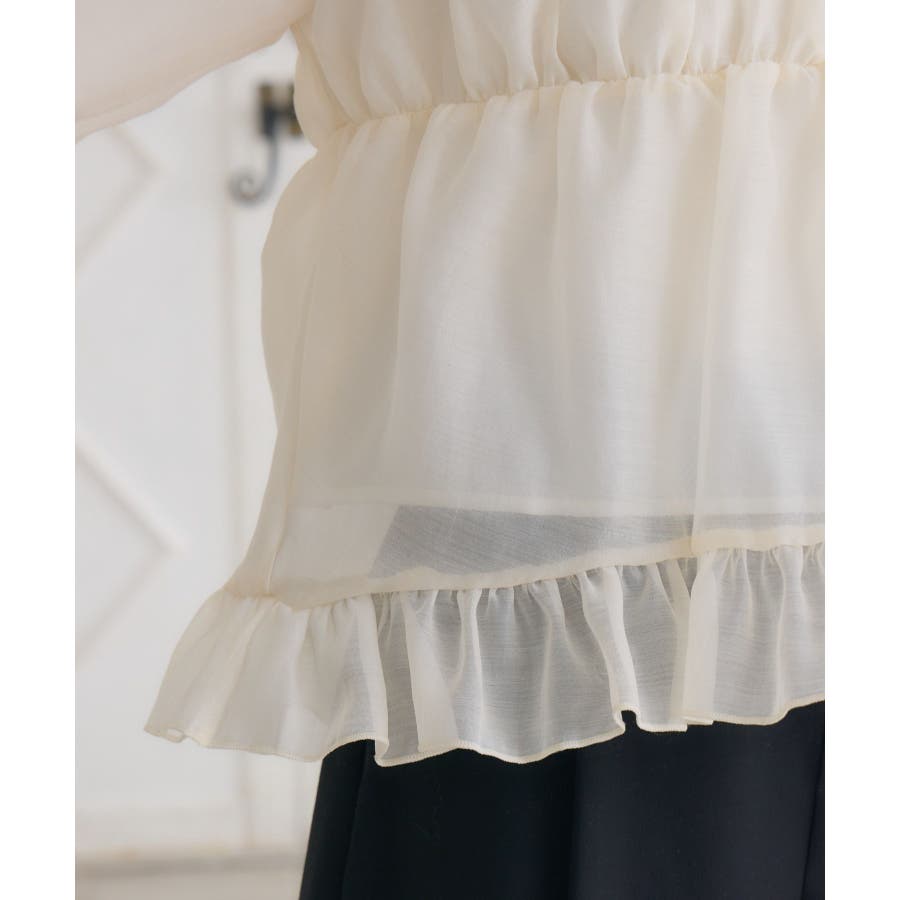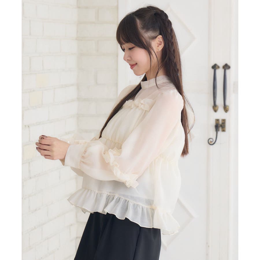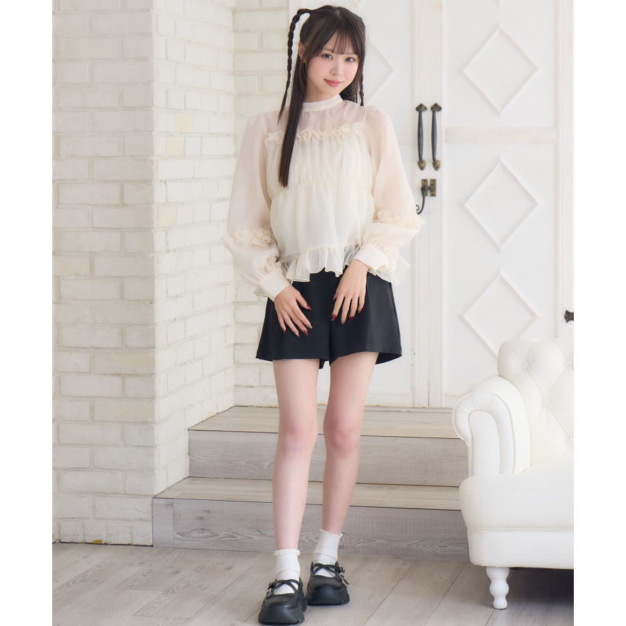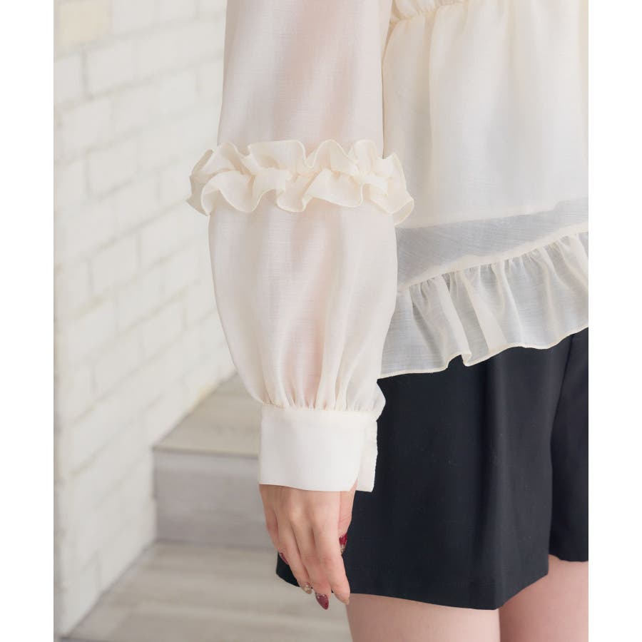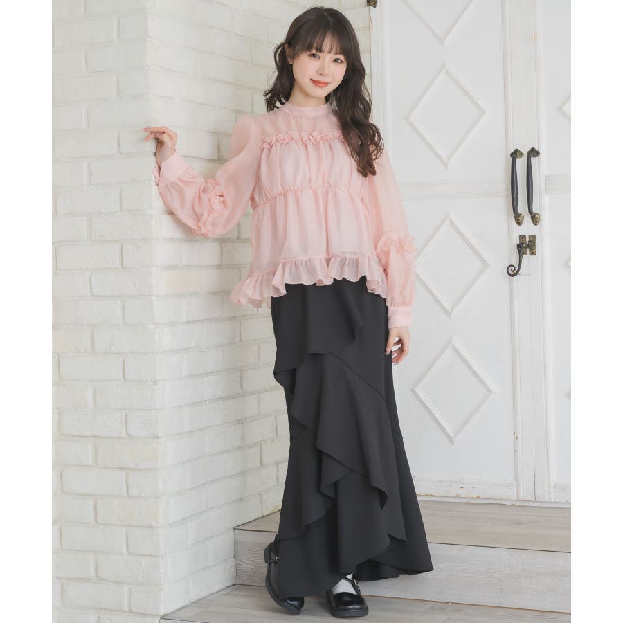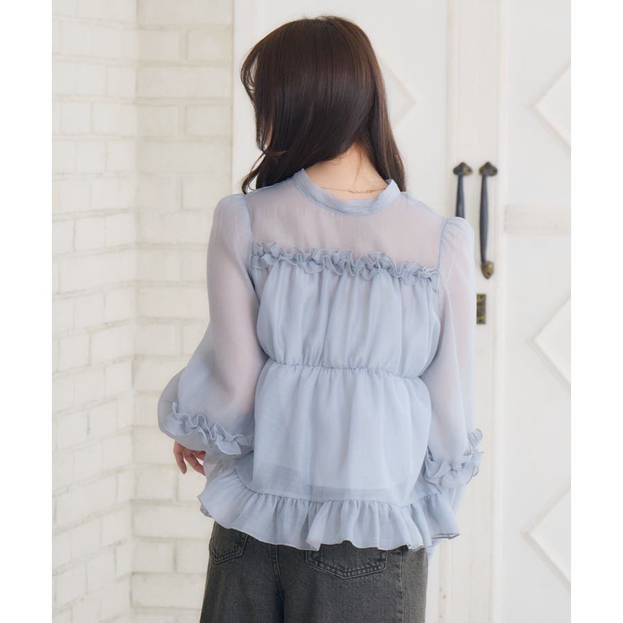 <前後2wayで着こなせる春らしい透け感ブラウス>▼デザイン春らしい透け感が可愛いブラウス。前リボンで着用すれば、ボウタイデザインで甘く可愛いスタイリングに。バックリボンでも着用可能な2wayデザインなので、後ろ姿も気を抜けない女の子にぴったり。ティアード風のメリハリのあるシルエットで、裾はフリルが可愛いガーリーな1枚です。▼コーディネートガーリーで春らしいスタイリングにセレクトしたいブラウス。ボトムを選ばないシンプルなデザインで、2wayのお作りでコーデの幅が広がります。------------------------------生地感:薄手伸縮性:なし透け感:あり裏地:袖部分なし/フロント部分あり------------------------------▼ブランド紹介ems excite (エムズエキサイト)“more fun more cute”今をもっと楽しくもっと可愛くいたい女の子に向けたgirly cuteなブランド#シアー素材 #フリル #2way #袖フリル #ボウタイ #透け感 #リボン▼注意事項※撮影環境やモニター環境によって実際の商品とお色味が 多少異なってみえる場合がございます。品番:EP556223B001 / 品名:2wayシアーフリルBL