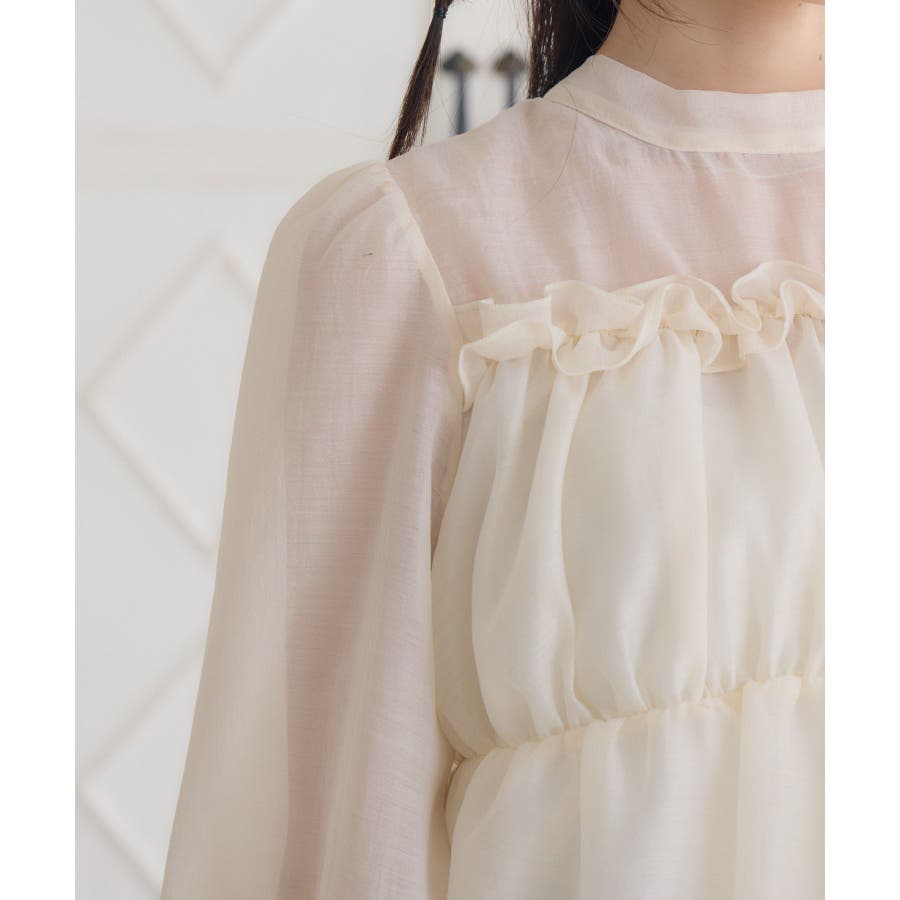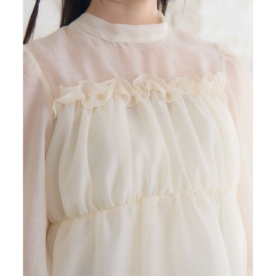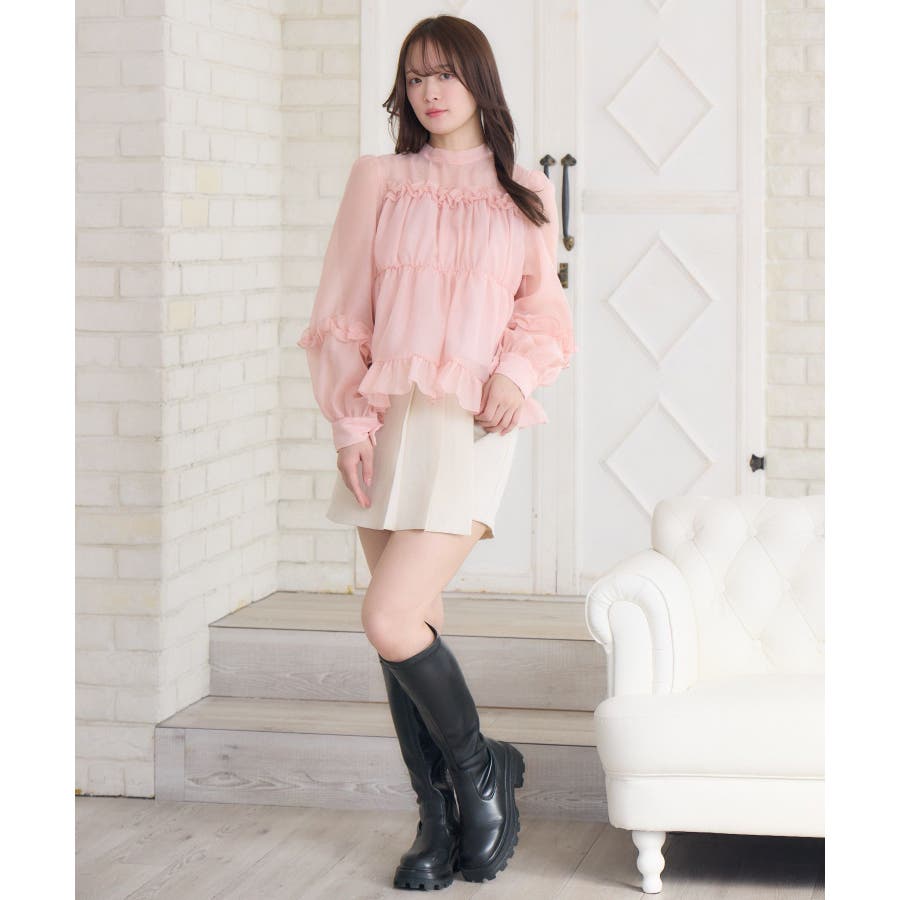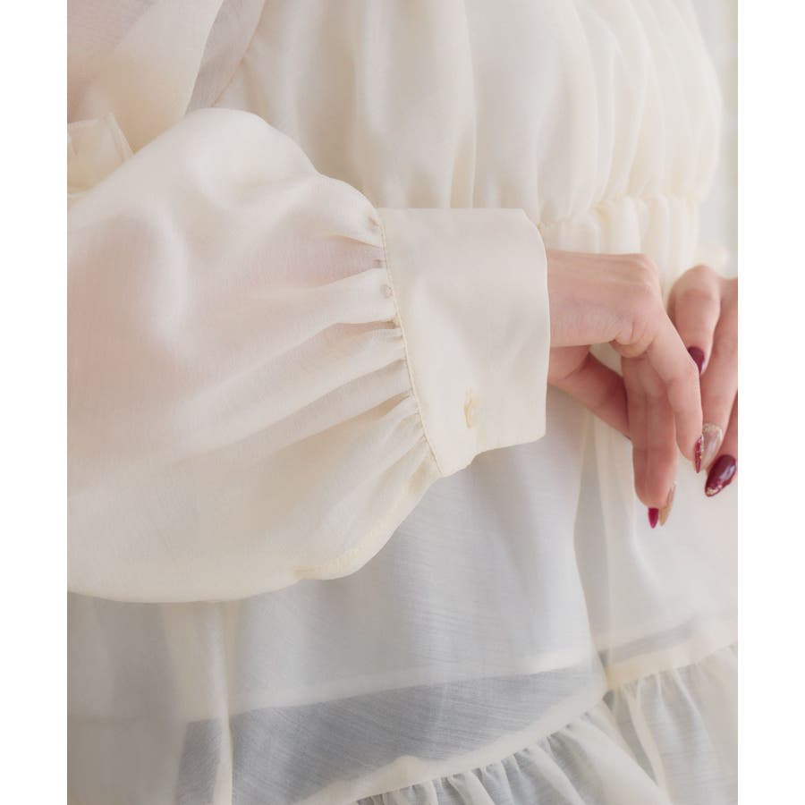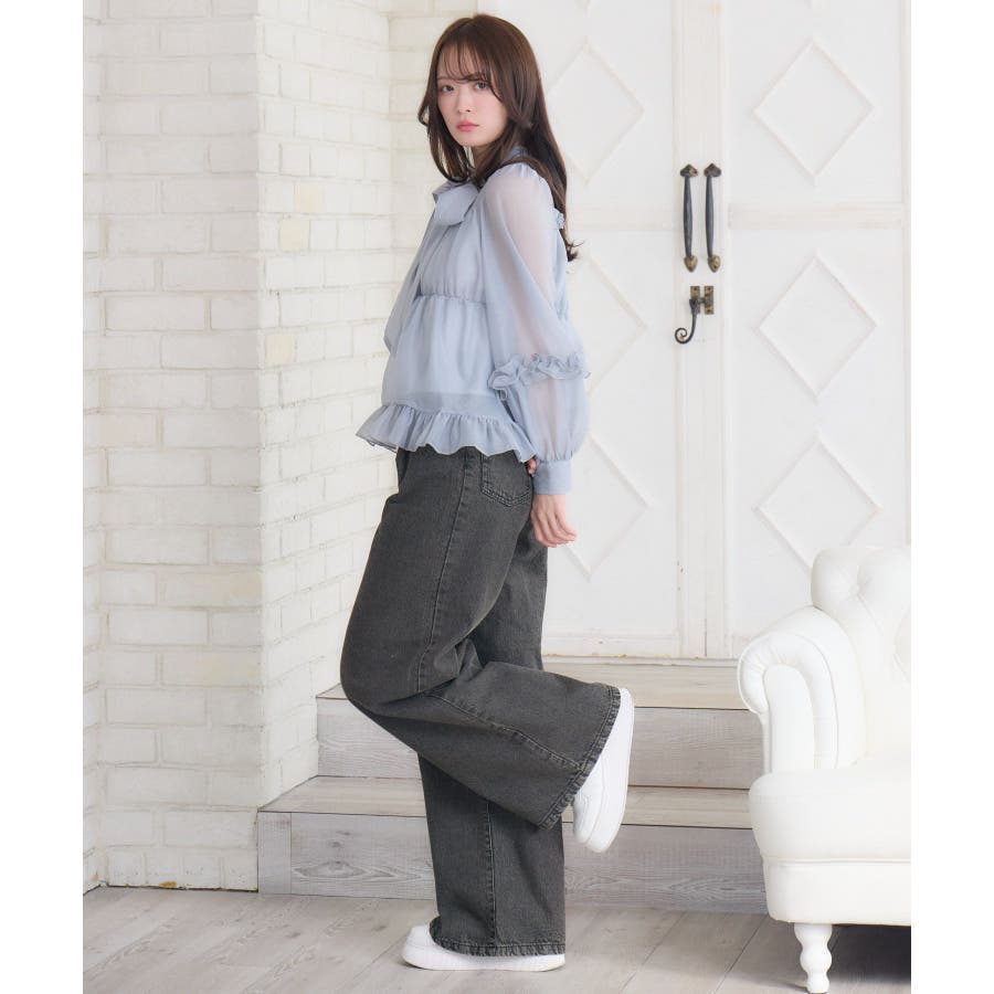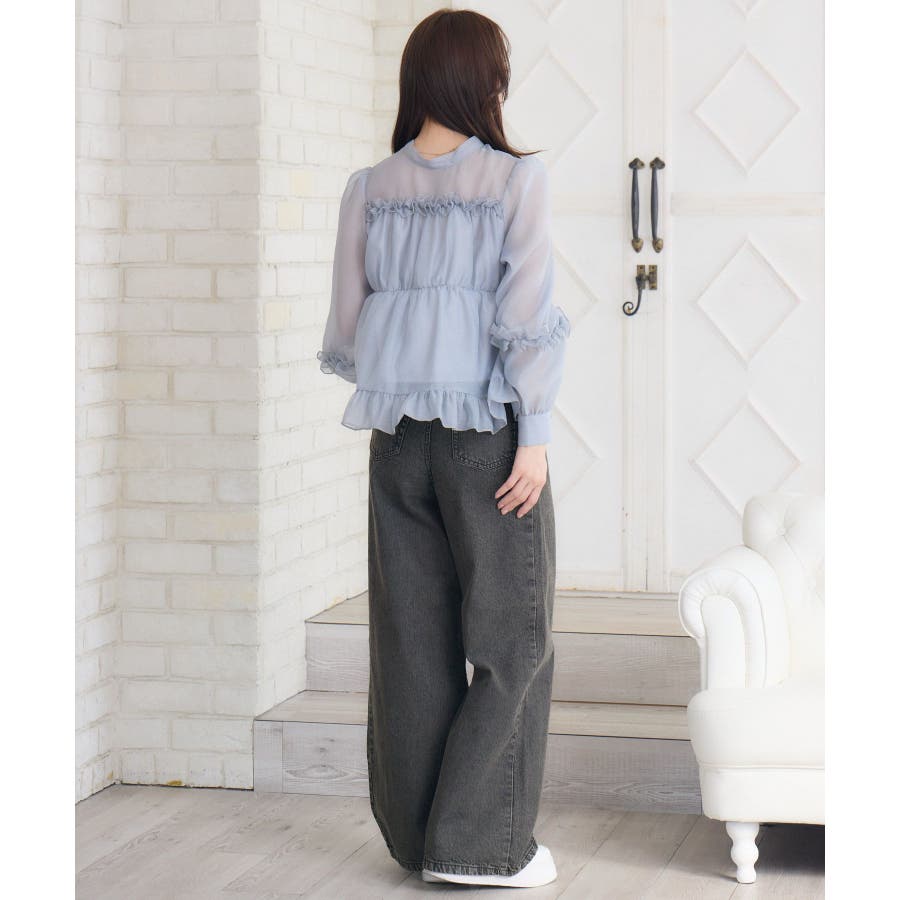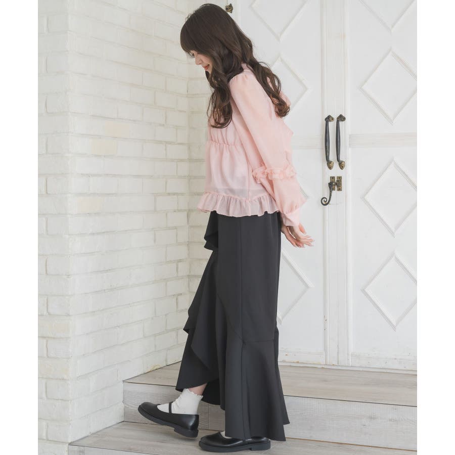 <前後2wayで着こなせる春らしい透け感ブラウス>▼デザイン春らしい透け感が可愛いブラウス。前リボンで着用すれば、ボウタイデザインで甘く可愛いスタイリングに。バックリボンでも着用可能な2wayデザインなので、後ろ姿も気を抜けない女の子にぴったり。ティアード風のメリハリのあるシルエットで、裾はフリルが可愛いガーリーな1枚です。▼コーディネートガーリーで春らしいスタイリングにセレクトしたいブラウス。ボトムを選ばないシンプルなデザインで、2wayのお作りでコーデの幅が広がります。------------------------------生地感:薄手伸縮性:なし透け感:あり裏地:袖部分なし/フロント部分あり------------------------------▼ブランド紹介ems excite (エムズエキサイト)“more fun more cute”今をもっと楽しくもっと可愛くいたい女の子に向けたgirly cuteなブランド#シアー素材 #フリル #2way #袖フリル #ボウタイ #透け感 #リボン▼注意事項※撮影環境やモニター環境によって実際の商品とお色味が 多少異なってみえる場合がございます。品番:EP556223B001 / 品名:2wayシアーフリルBL