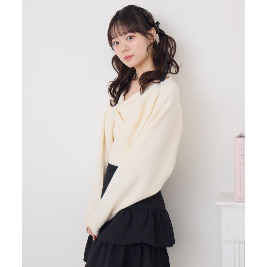 <フロントのリボンデザインが華やかな甘めニット>▼デザインフロントデザインがガーリーな二ットセットアイテム。同じ素材感のキャミもセットなので、統一感のあるコーデが目指せます。胸元の大きなリボンは写真映え間違いなし◎キャミソールはインしやすい着丈に計算された着やすいデザイン。▼コーディネートかわいらしい印象のアイテム!チュールスカートやマーメイドスカート合わせがおすすめ♪春にセットで着用するのにぴったりな素材感です。▼セット内容・ニットキャミソール・リボンニット------------------------------生地感:普通伸縮性:ある透け感:なし裏地:なし------------------------------▼ブランド紹介ems excite (エムズエキサイト)“more fun more cute”今をもっと楽しくもっと可愛くいたい女の子に向けたgirly cuteなブランド#フロントリボン #リボンアイテム #リボン #ガーリーコーデ #ガーリーアイテム #フェミニンコーデ▼注意事項※撮影環境やモニター環境によって実際の商品とお色味が 多少異なってみえる場合がございます。品番:EP556412G001 / 品名:リボンNTSET