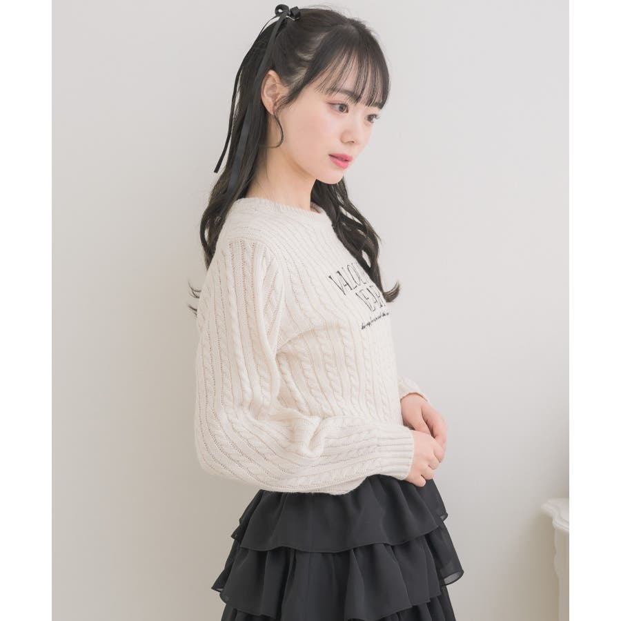 <ロゴが目を春のケーブルニット>▼デザインフロント部分に大きく刺繍が施されたニットアイテム。秋から大人気のケーブルニットで登場です。シンプルなデザインで、インナー使いも可能◎▼コーディネートボトムを選ばないデザインで、大人ガーリーからカジュアルコーデまで幅広く取り入れて頂けます。ビジュアルの様にセットアップアイテムのインナーにセレクトしても可愛いかも♪------------------------------生地感:普通伸縮性:ある透け感:なし裏地:なし------------------------------▼ブランド紹介ems excite (エムズエキサイト)“more fun more cute”今をもっと楽しくもっと可愛くいたい女の子に向けたgirly cuteなブランド#ロゴニット #ロゴ刺繍 #春コーデ #ガーリーコーデ #ガーリーアイテム #刺繍ニット #ケーブルニット▼注意事項※撮影環境やモニター環境によって実際の商品とお色味が多少異なってみえる場合がございます。品番:EP557112G003 / 品名:ロゴ刺繍ケーブルNTPO