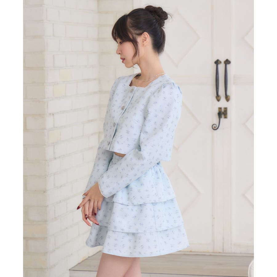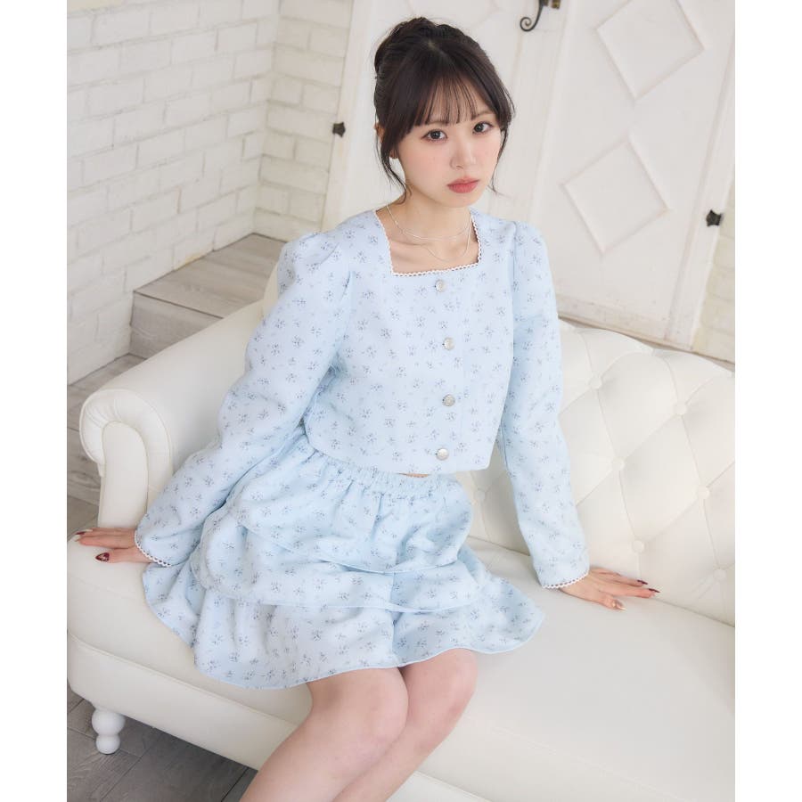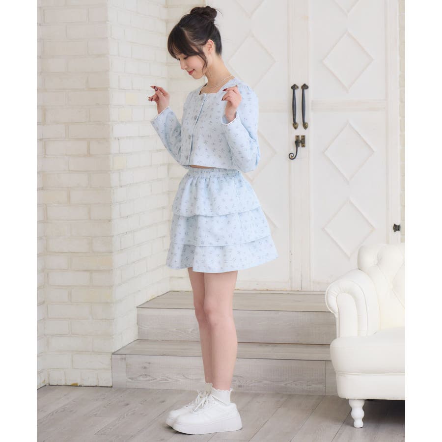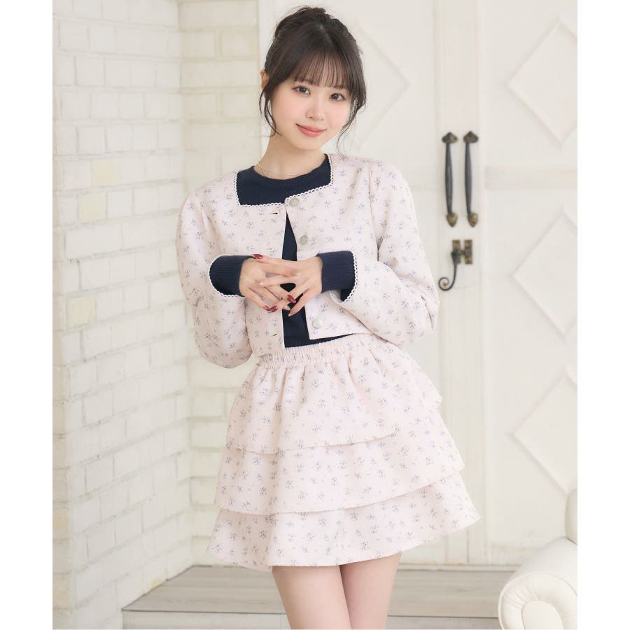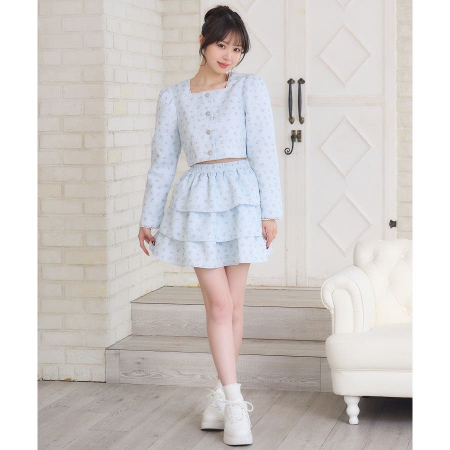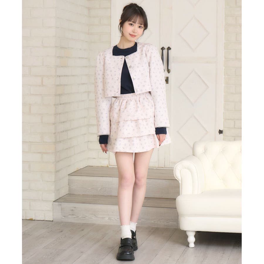 <この春のems exciteを代表する小花柄アイテム!>▼デザインこの春のメインビジュアルに大抜擢のセットアップアイテム。スクエアネックにピコレースで縁取られたジャケットは着ているだけで上品に。3段フリルのスカートは、ボリューム感があり、他のトップスと合わせても存在感たっぷり。明るいブルーと、ピンクみのあるエクリュのカラーでご用意です!※エクリュのカラーは、寄りの写真をご参照ください。▼コーディネートセットでの着用で、悩むことなくコーデが完成♪スカートはミニ丈で、トレーナー合わせにもおすすめ!ジャケットは春にぴったりな素材感なので、お手持ちのアイテムに羽織ることで気温調節もできるアイテムです。▼セット内容・ジャケット・ティアードカート-----------------------------生地感:普通伸縮性:なし透け感:なし裏地:ある------------------------------▼ブランド紹介ems excite (エムズエキサイト)“more fun more cute”今をもっと楽しくもっと可愛くいたい女の子に向けたgirly cuteなブランド#ティアードスカート #小花柄 #花柄 #ジャケット #春コーデ #セットアップ #セットアイテム▼注意事項※撮影環境やモニター環境によって実際の商品とお色味が 多少異なってみえる場合がございます。品番:EP580021G004 / 品名:花柄フリルJK&SKセット