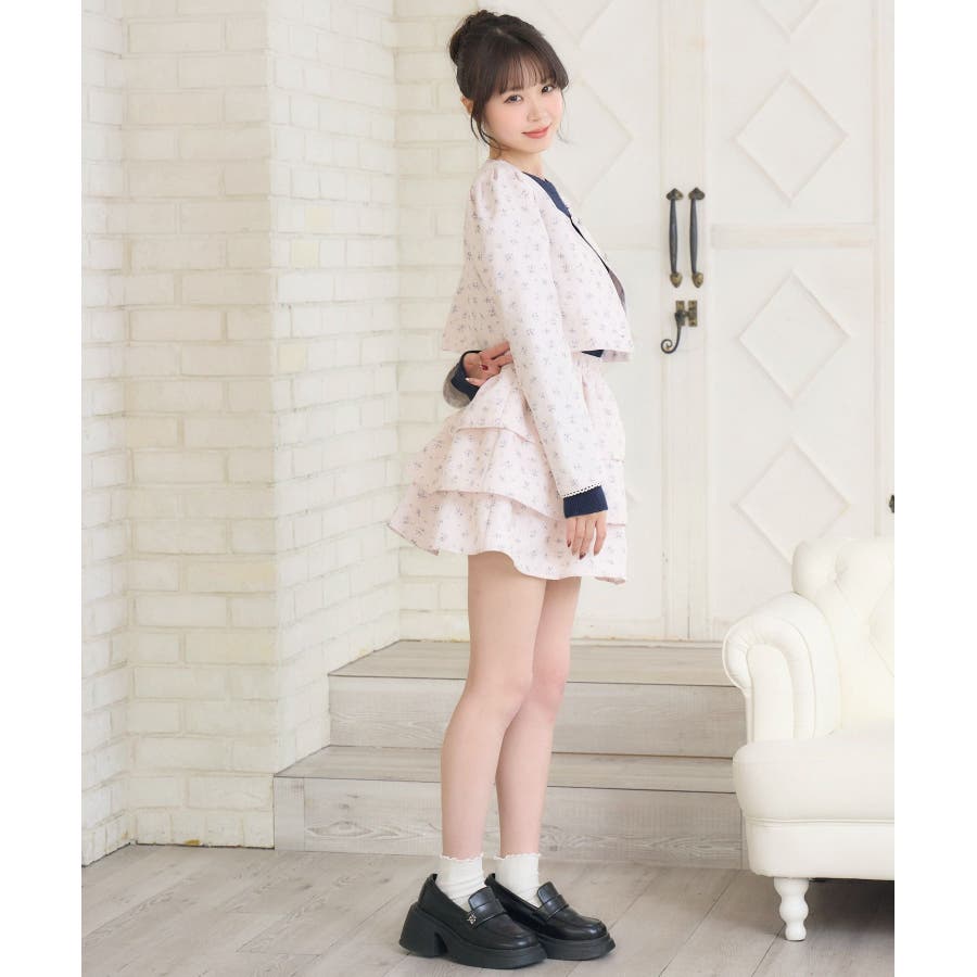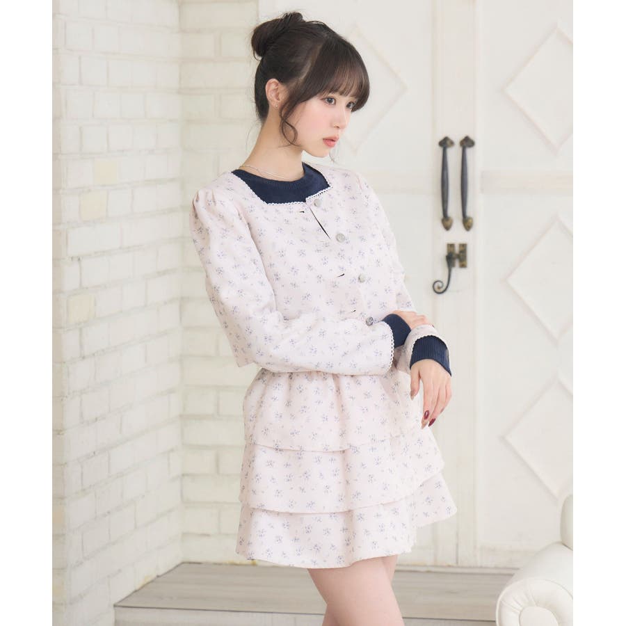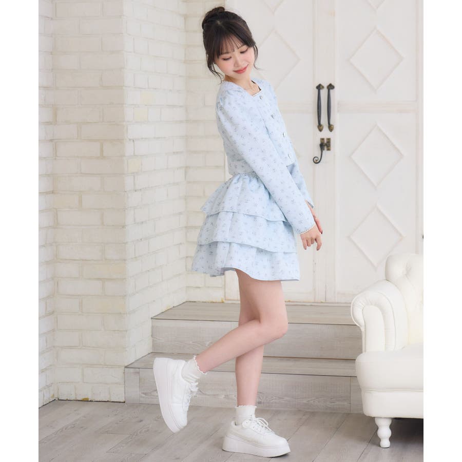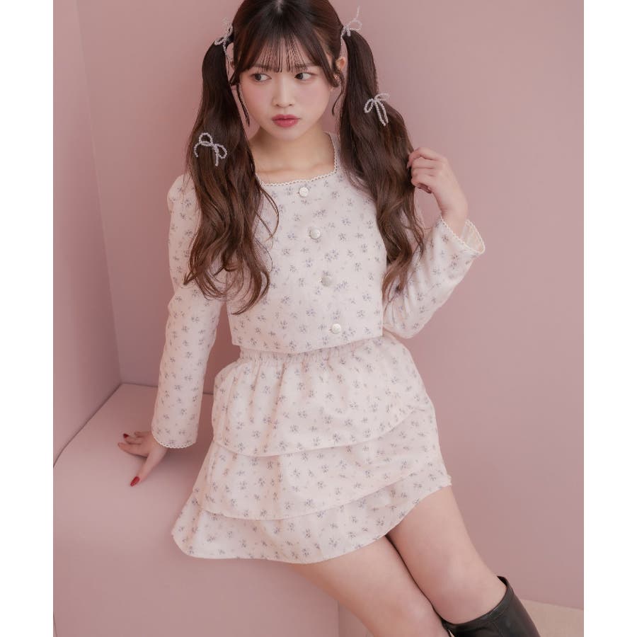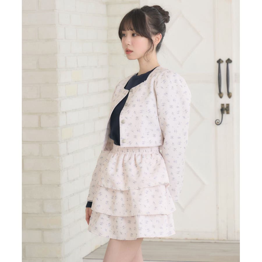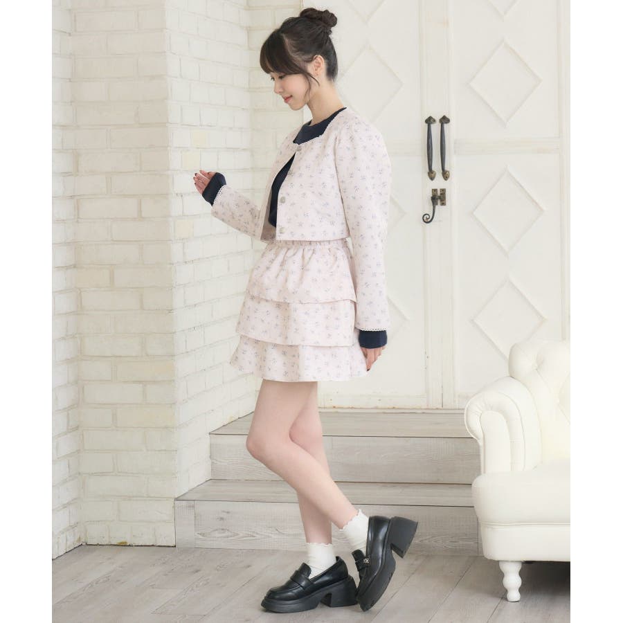 <この春のems exciteを代表する小花柄アイテム!>▼デザインこの春のメインビジュアルに大抜擢のセットアップアイテム。スクエアネックにピコレースで縁取られたジャケットは着ているだけで上品に。3段フリルのスカートは、ボリューム感があり、他のトップスと合わせても存在感たっぷり。明るいブルーと、ピンクみのあるエクリュのカラーでご用意です!※エクリュのカラーは、寄りの写真をご参照ください。▼コーディネートセットでの着用で、悩むことなくコーデが完成♪スカートはミニ丈で、トレーナー合わせにもおすすめ!ジャケットは春にぴったりな素材感なので、お手持ちのアイテムに羽織ることで気温調節もできるアイテムです。▼セット内容・ジャケット・ティアードカート-----------------------------生地感:普通伸縮性:なし透け感:なし裏地:ある------------------------------▼ブランド紹介ems excite (エムズエキサイト)“more fun more cute”今をもっと楽しくもっと可愛くいたい女の子に向けたgirly cuteなブランド#ティアードスカート #小花柄 #花柄 #ジャケット #春コーデ #セットアップ #セットアイテム▼注意事項※撮影環境やモニター環境によって実際の商品とお色味が 多少異なってみえる場合がございます。品番:EP580021G004 / 品名:花柄フリルJK&SKセット