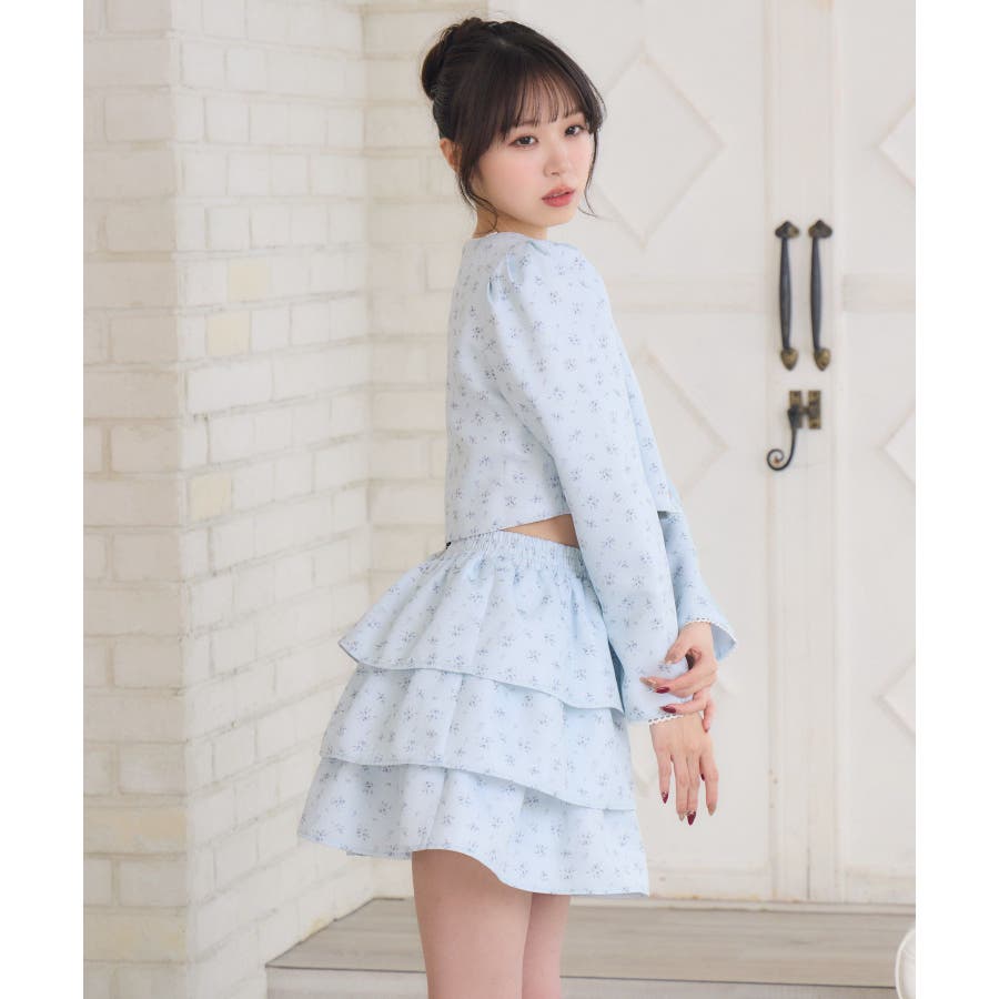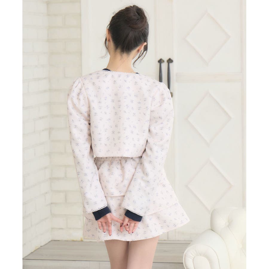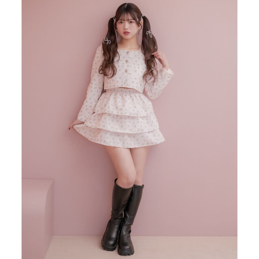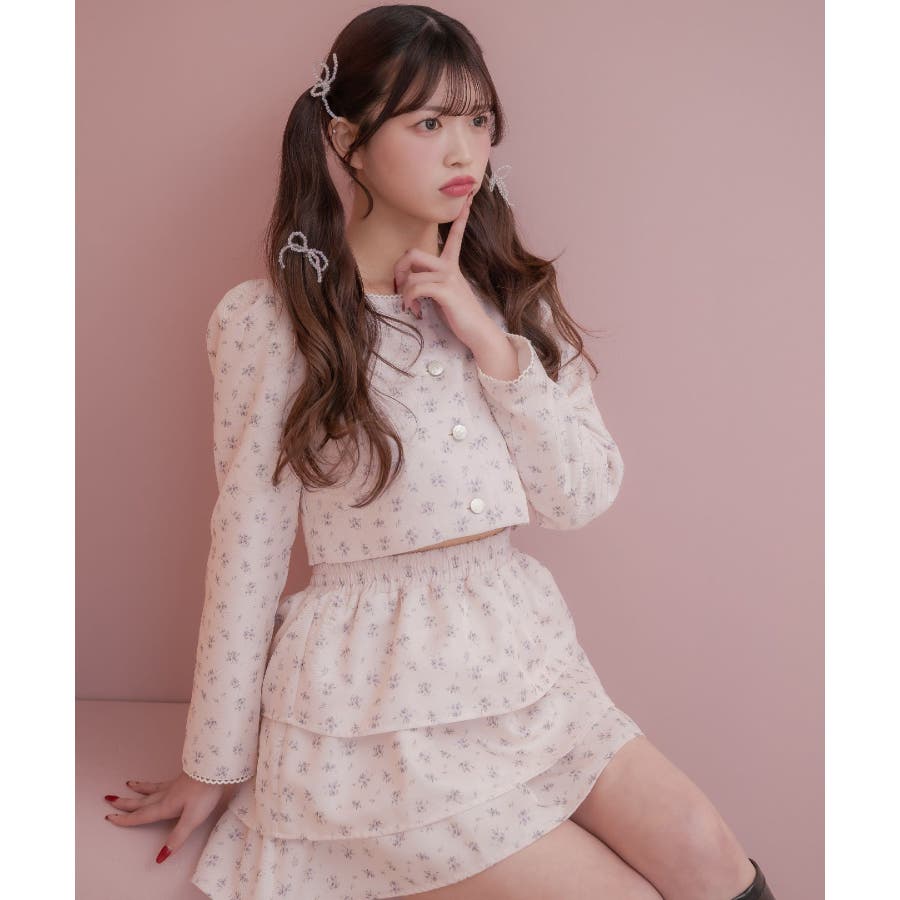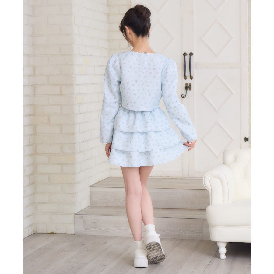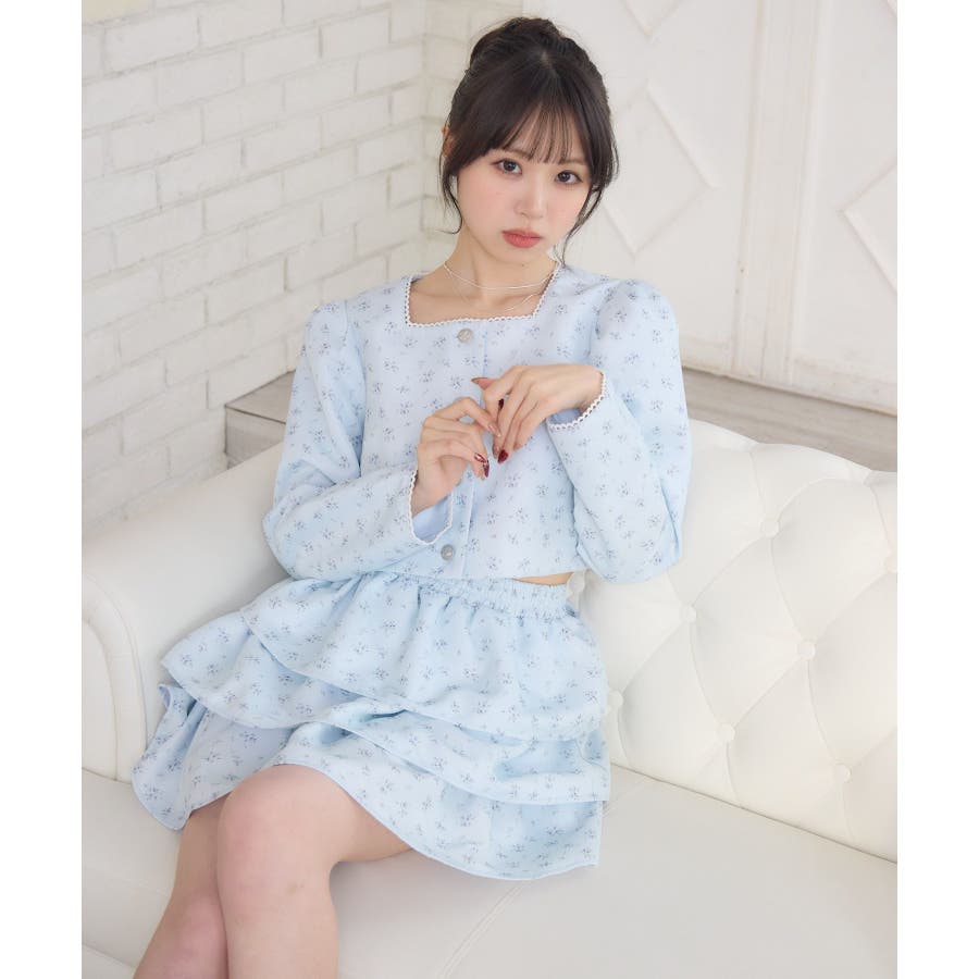 <この春のems exciteを代表する小花柄アイテム!>▼デザインこの春のメインビジュアルに大抜擢のセットアップアイテム。スクエアネックにピコレースで縁取られたジャケットは着ているだけで上品に。3段フリルのスカートは、ボリューム感があり、他のトップスと合わせても存在感たっぷり。明るいブルーと、ピンクみのあるエクリュのカラーでご用意です!※エクリュのカラーは、寄りの写真をご参照ください。▼コーディネートセットでの着用で、悩むことなくコーデが完成♪スカートはミニ丈で、トレーナー合わせにもおすすめ!ジャケットは春にぴったりな素材感なので、お手持ちのアイテムに羽織ることで気温調節もできるアイテムです。▼セット内容・ジャケット・ティアードカート-----------------------------生地感:普通伸縮性:なし透け感:なし裏地:ある------------------------------▼ブランド紹介ems excite (エムズエキサイト)“more fun more cute”今をもっと楽しくもっと可愛くいたい女の子に向けたgirly cuteなブランド#ティアードスカート #小花柄 #花柄 #ジャケット #春コーデ #セットアップ #セットアイテム▼注意事項※撮影環境やモニター環境によって実際の商品とお色味が 多少異なってみえる場合がございます。品番:EP580021G004 / 品名:花柄フリルJK&SKセット