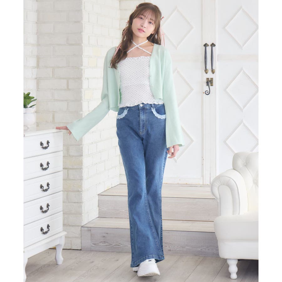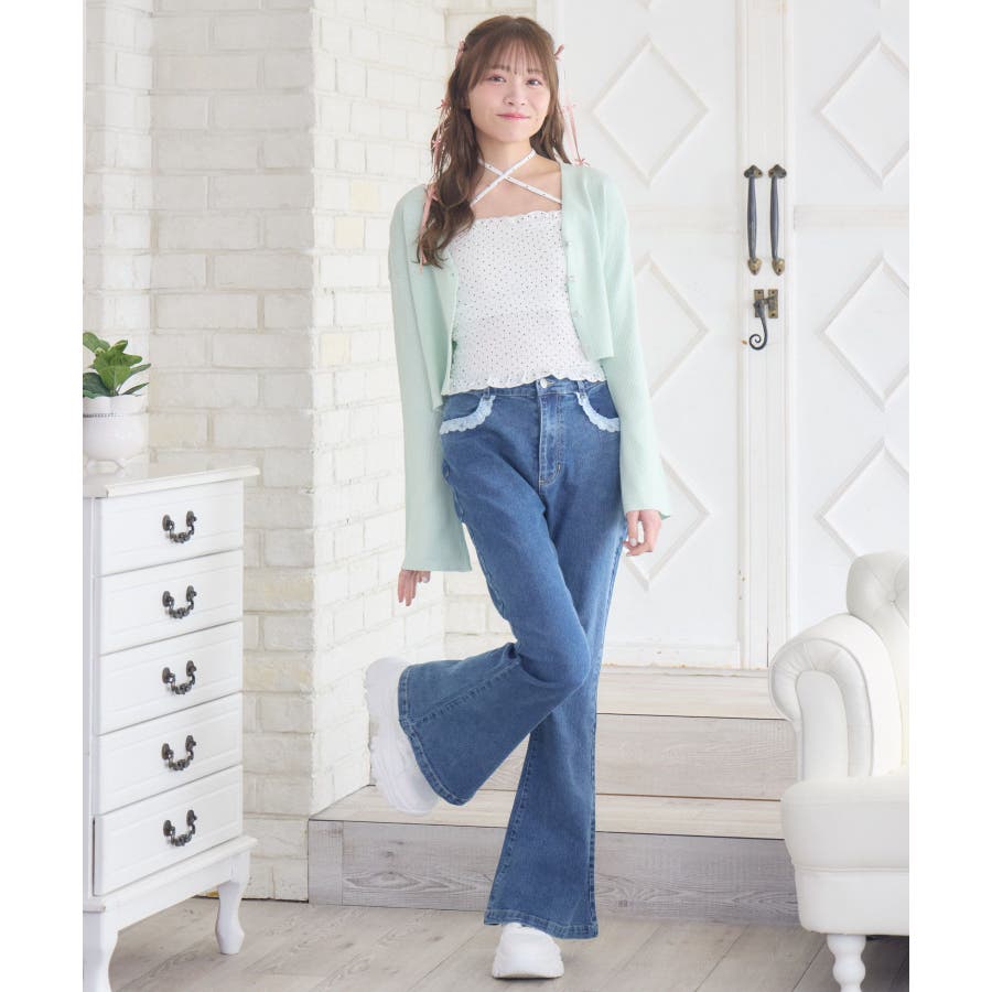 <美シルエットでスタイル爆盛れ!フレアデニムパンツ>▼デザイン今年トレンドのフレアシルエットのデニムパンツ。計算されつくしたシルエットで脚長効果抜群です。デニムアイテムはオールシーズン使えるので1枚持っておくと年中使えるアイテム。ポケット部分はレースで縁取られていて、emsらしいガーリーなワンポイント!S/Mのサイズ展開で、高身長さんも低身長さんも着やすいのも嬉しい♪ストレッチが効いた素材で、歩きやすさは履き心地も抜群です。▼コーディネートとことんカジュアルにTシャツ合わせでも、レースがちらっと見えることで可愛らしさをプラス♪ブラウスやリボンアイテムでガーリーにスタイリングするのも◎------------------------------生地感:普通伸縮性:ある透け感:なし裏地:なし------------------------------▼ブランド紹介ems excite (エムズエキサイト)“more fun more cute”今をもっと楽しくもっと可愛くいたい女の子に向けたgirly cuteなブランド#デニムパンツ #デニムコーデ#フレアデニム #デニム #カジュアルデニム#レースデザイン #ガーリーデニム #韓国コーデ▼注意事項※撮影環境やモニター環境によって実際の商品とお色味が多少異なってみえる場合がございます。品番:EP637532G002 / 品名:ポケットレースデニムPT