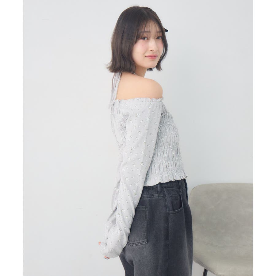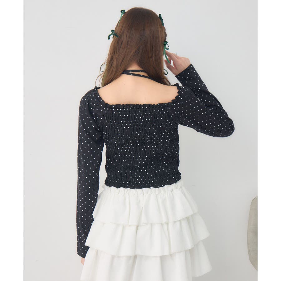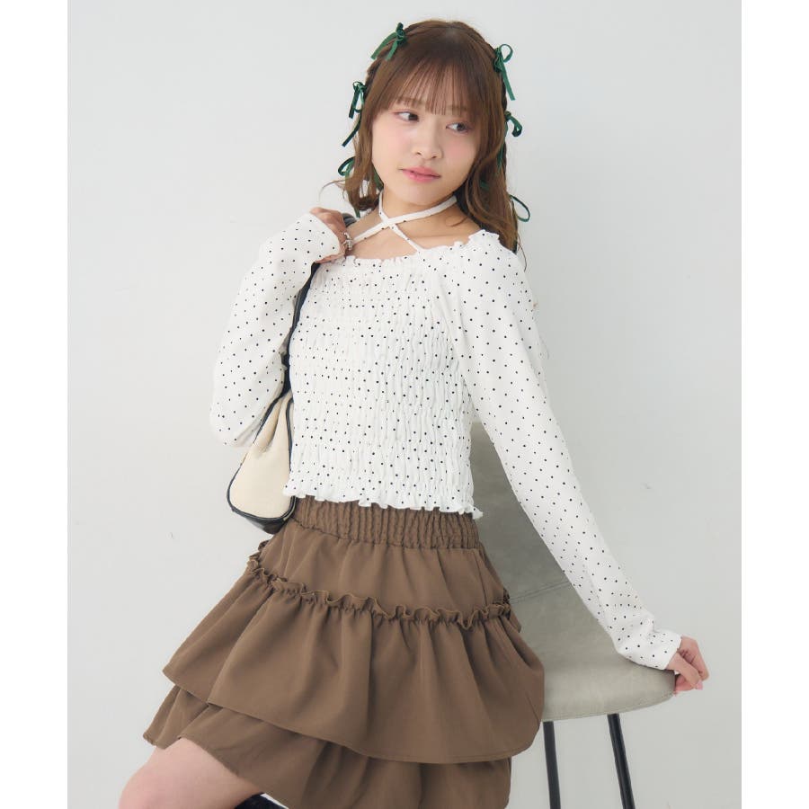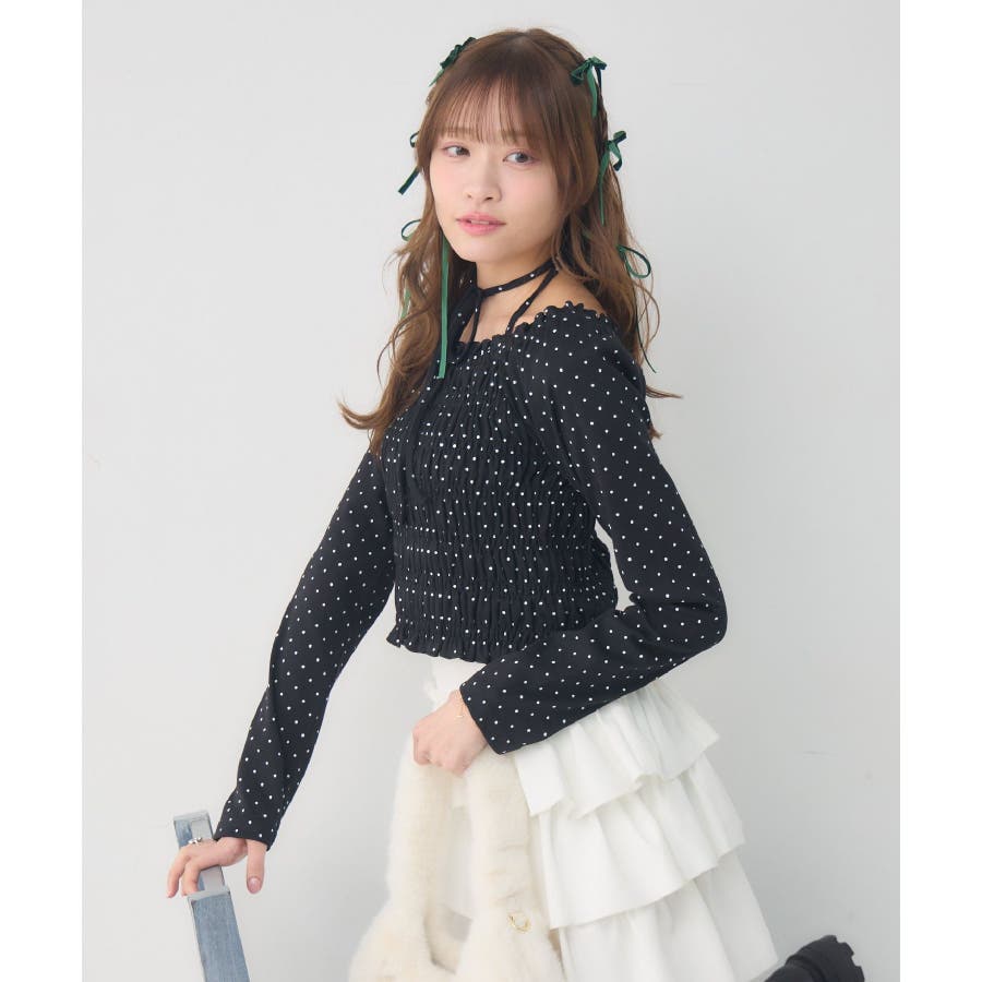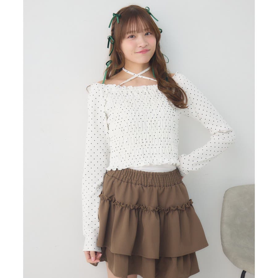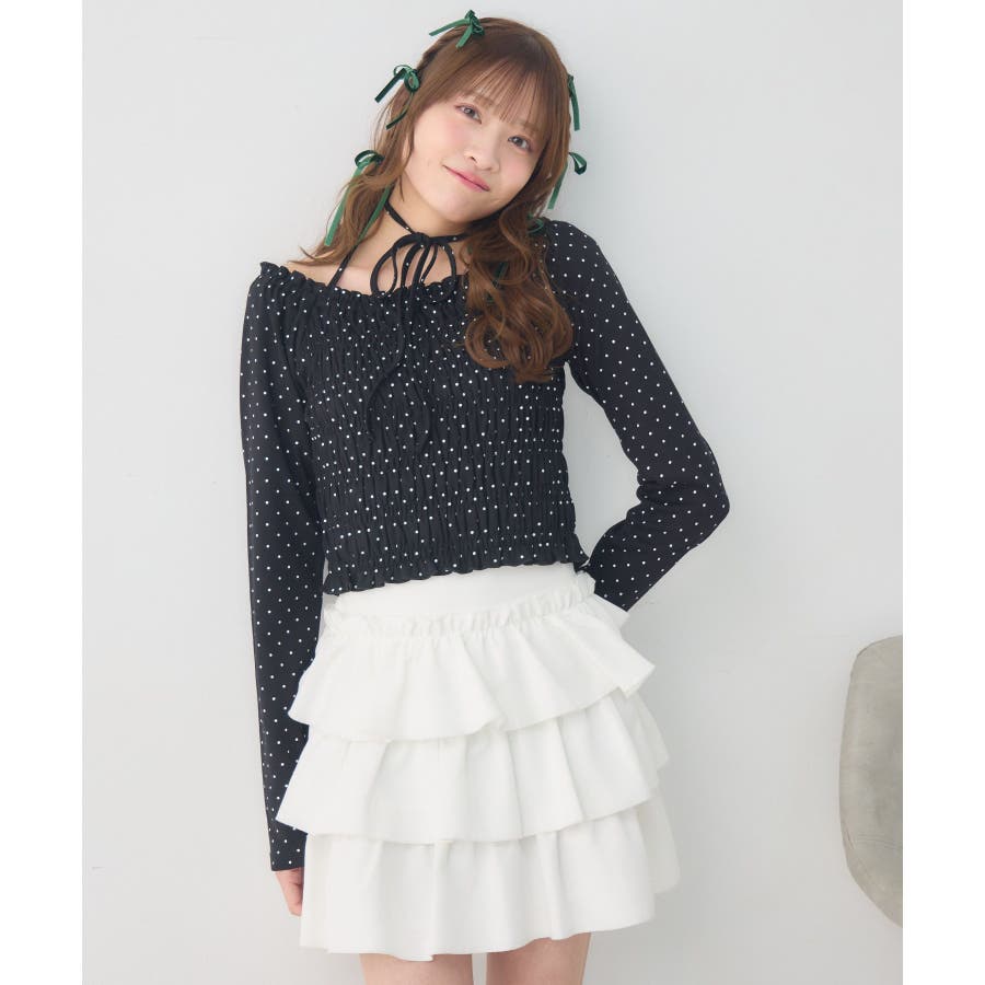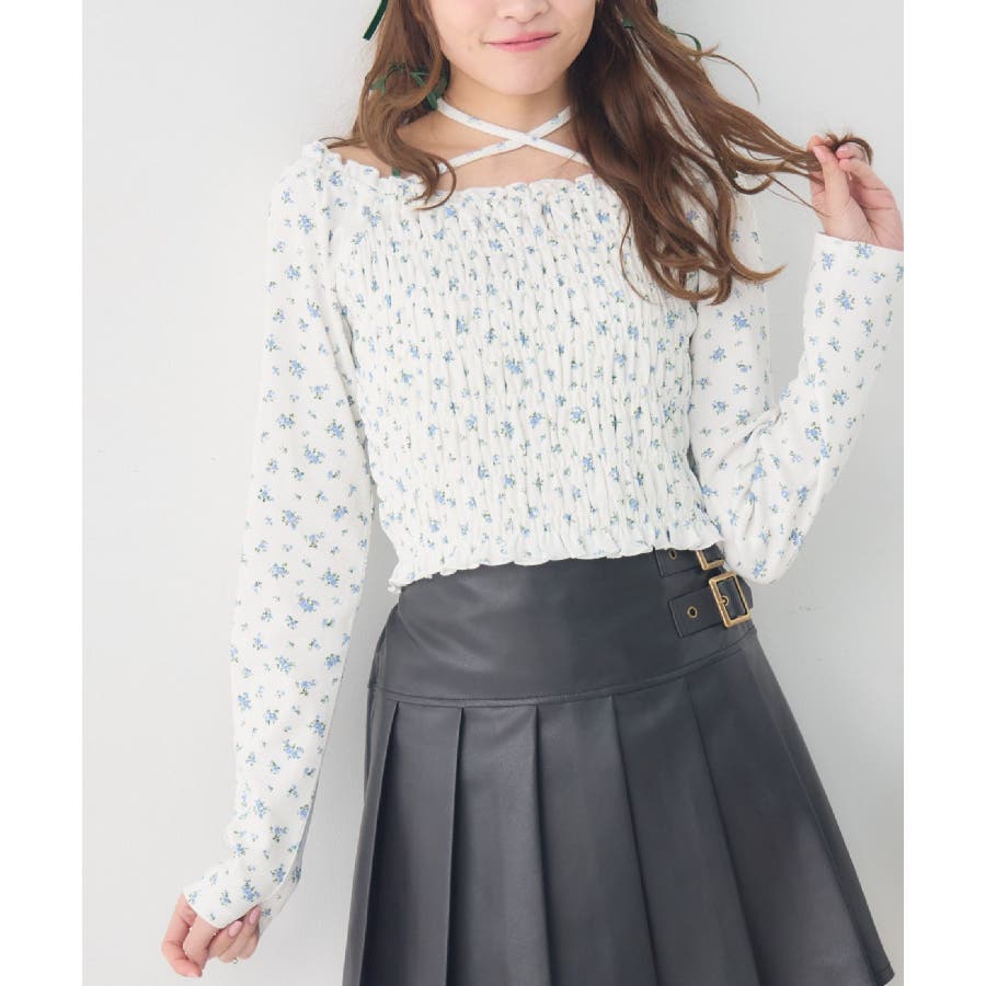 <シャーリングデザインが華やかなインナーカットソー>▼デザインオフショルダーでも着用できてアレンジの幅が広がるシャーリングカットソー!ホルターデザインになっているので、首回りも華やかで寂しさを感じさせません。伸縮性のある素材で着心地も抜群◎装飾が少なく、厚みを感じさせないデザインなので、骨格ストレートさんにもおすすめ!▼コーディネートカットソーではありますが、ブラウスっぽく着用できる万能アイテム!女性らしいデザインなので、ガーリーなボトムスと相性抜群!柄アイテムなので、コーデを華やかに可愛らしく仕上げてくれます。------------------------------生地感:薄手伸縮性:ある透け感:なし裏地:なし------------------------------ems excite (エムズエキサイト)“more fun more cute”今をもっと楽しくもっと可愛くいたい女の子に向けたgirly cuteなブランド#ブラウス #カットソー #シャーリング #ホルターネック #オフショルダー #花柄 #ドット柄▼注意事項※撮影環境やモニター環境によって実際の商品とお色味が多少異なってみえる場合がございます。品番:EP641511G001 / 品名:シャーリングインナーCT