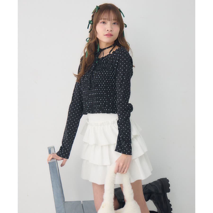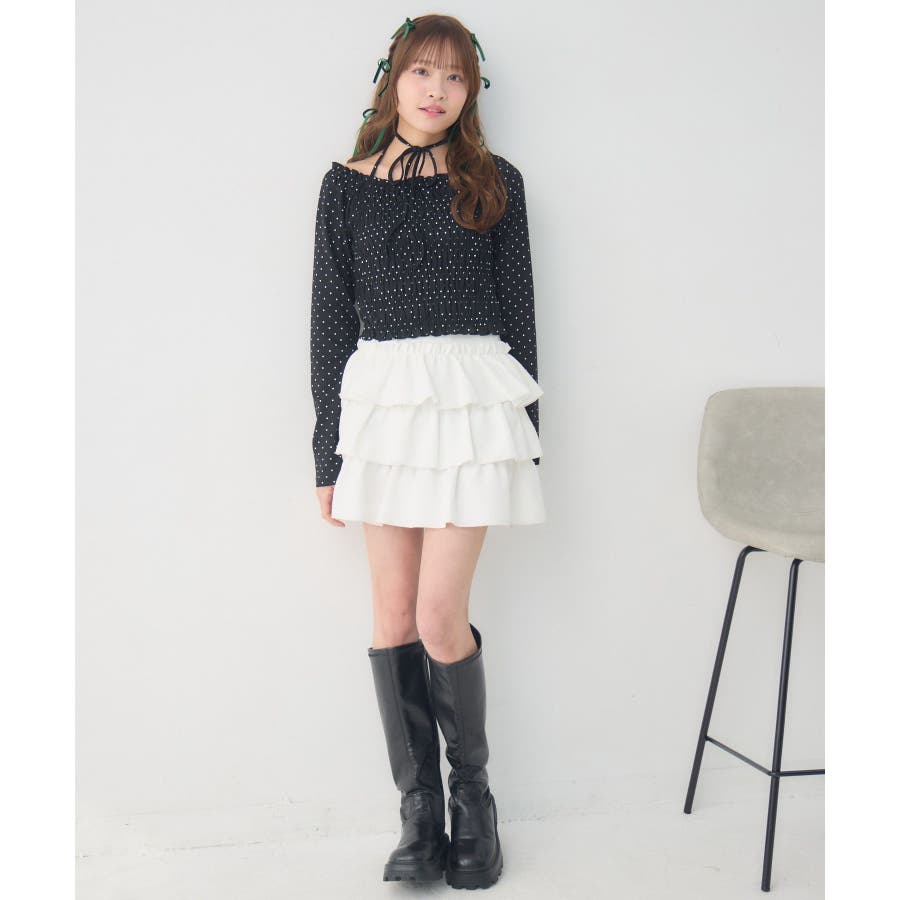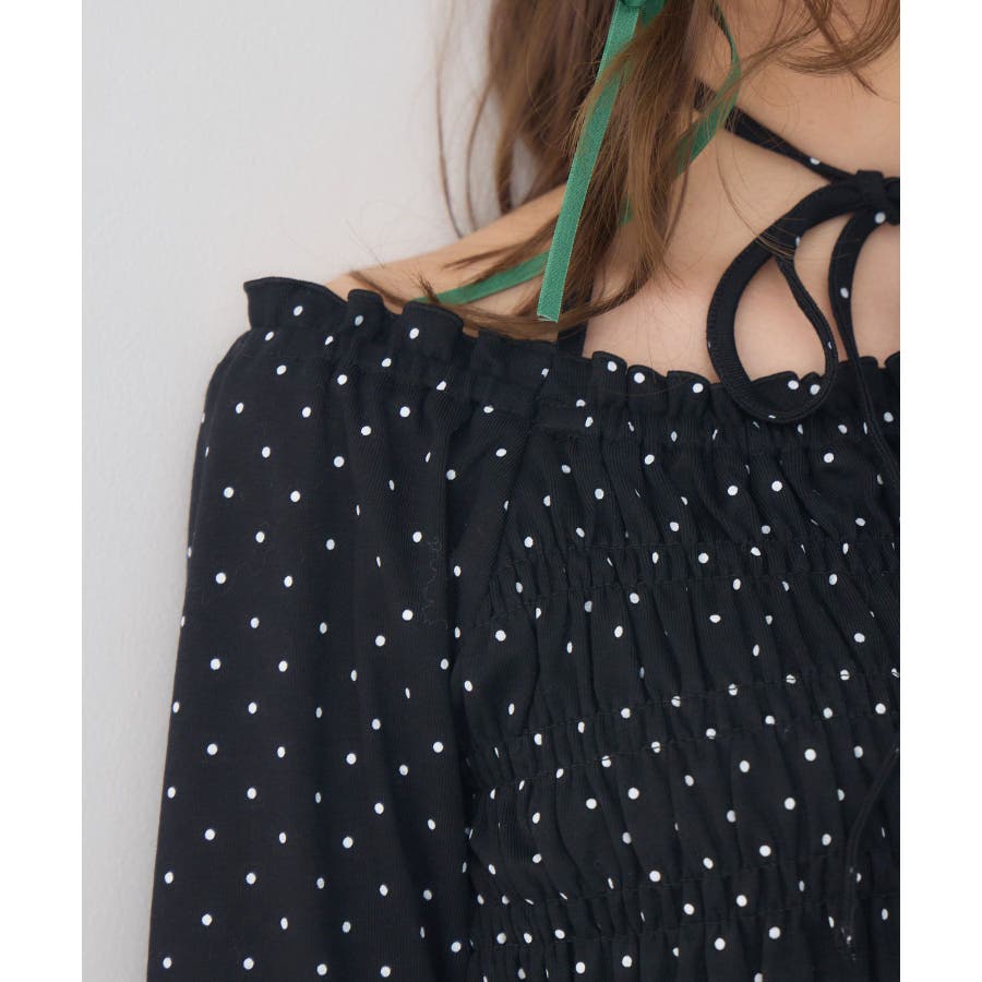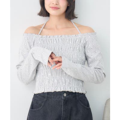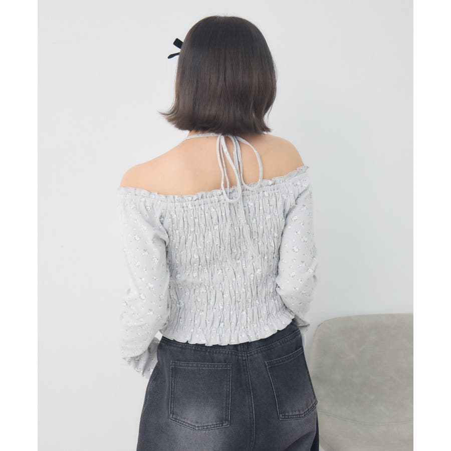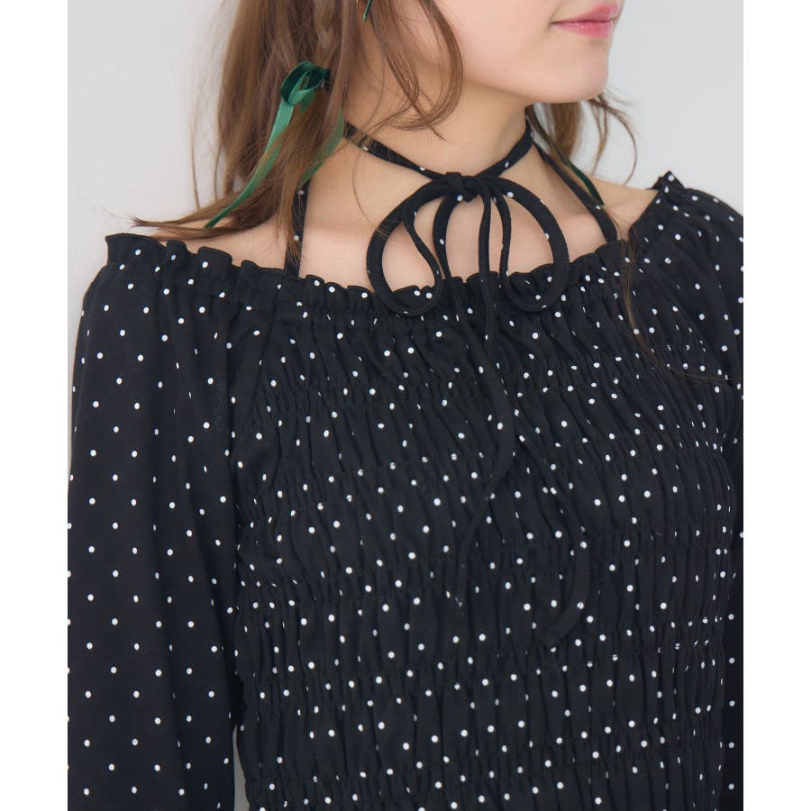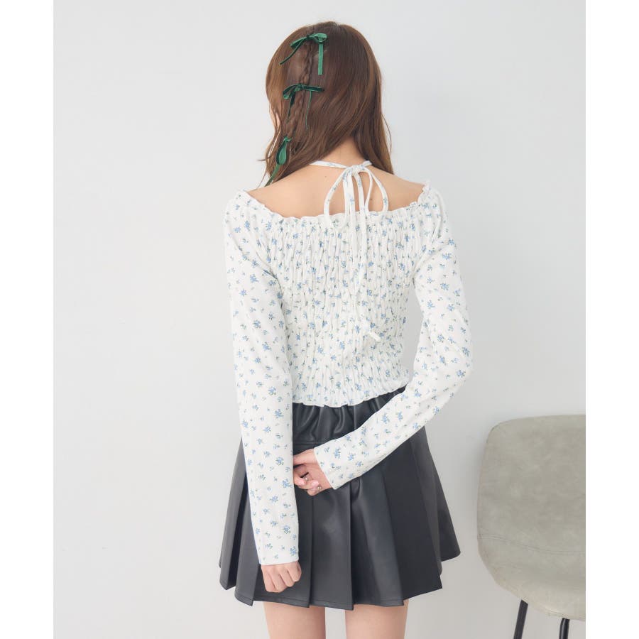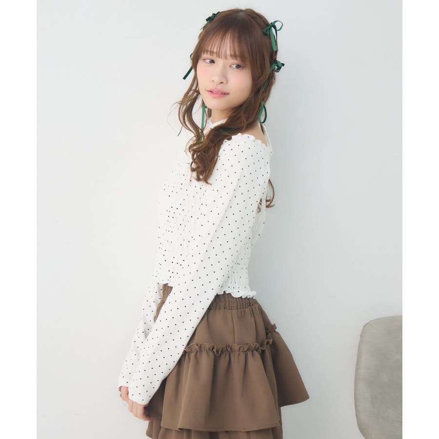 <シャーリングデザインが華やかなインナーカットソー>▼デザインオフショルダーでも着用できてアレンジの幅が広がるシャーリングカットソー!ホルターデザインになっているので、首回りも華やかで寂しさを感じさせません。伸縮性のある素材で着心地も抜群◎装飾が少なく、厚みを感じさせないデザインなので、骨格ストレートさんにもおすすめ!▼コーディネートカットソーではありますが、ブラウスっぽく着用できる万能アイテム!女性らしいデザインなので、ガーリーなボトムスと相性抜群!柄アイテムなので、コーデを華やかに可愛らしく仕上げてくれます。------------------------------生地感:薄手伸縮性:ある透け感:なし裏地:なし------------------------------ems excite (エムズエキサイト)“more fun more cute”今をもっと楽しくもっと可愛くいたい女の子に向けたgirly cuteなブランド#ブラウス #カットソー #シャーリング #ホルターネック #オフショルダー #花柄 #ドット柄▼注意事項※撮影環境やモニター環境によって実際の商品とお色味が多少異なってみえる場合がございます。品番:EP641511G001 / 品名:シャーリングインナーCT