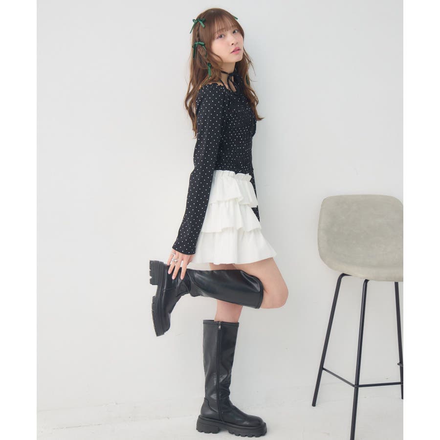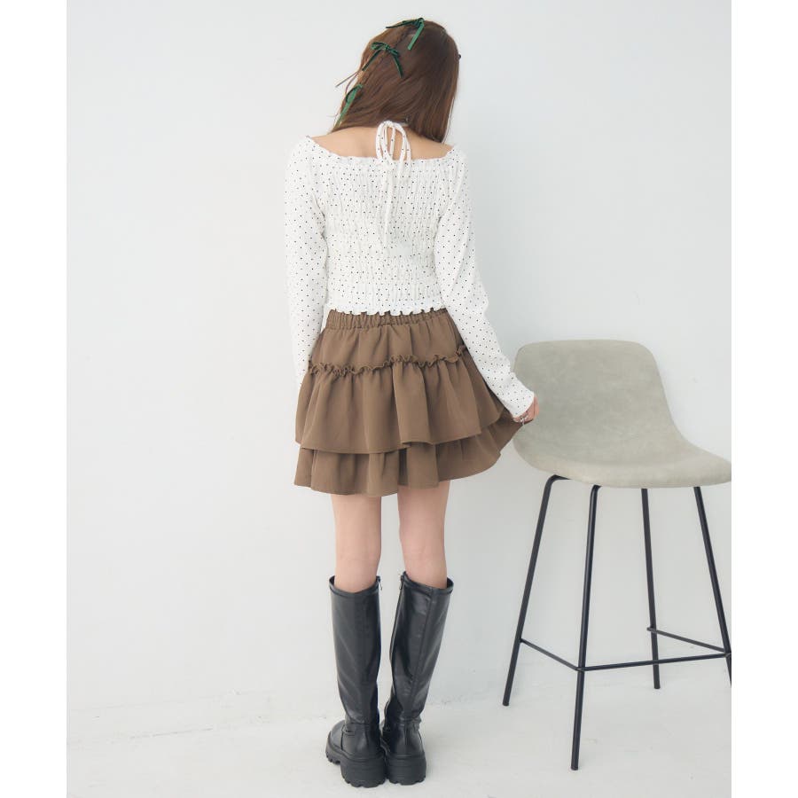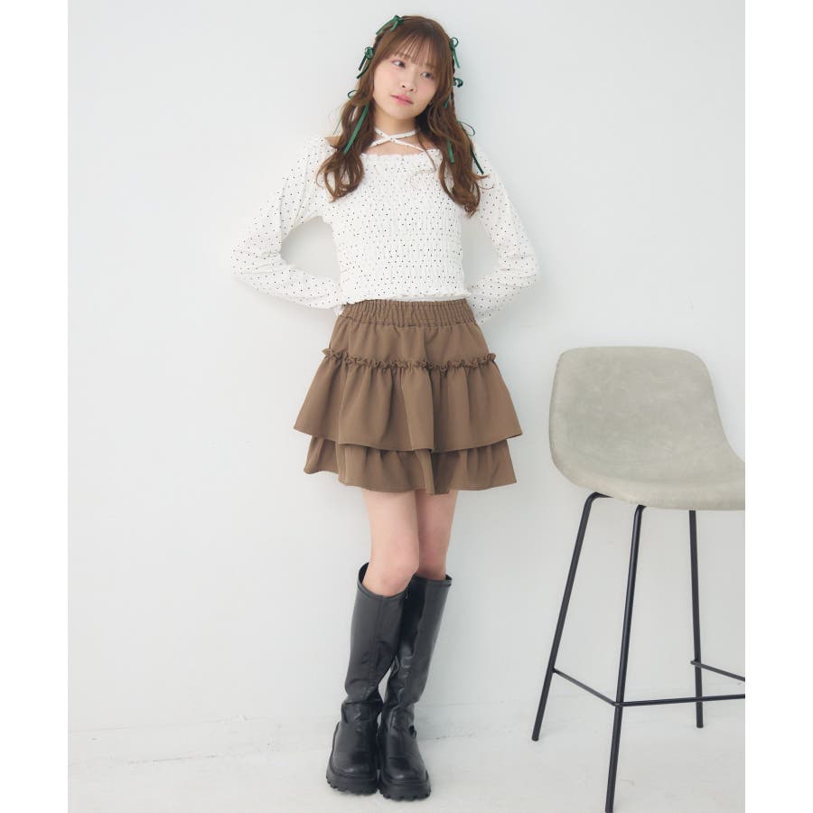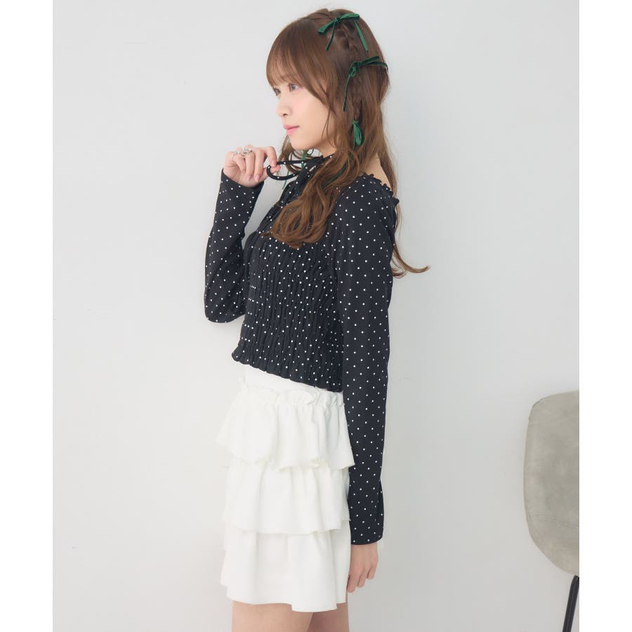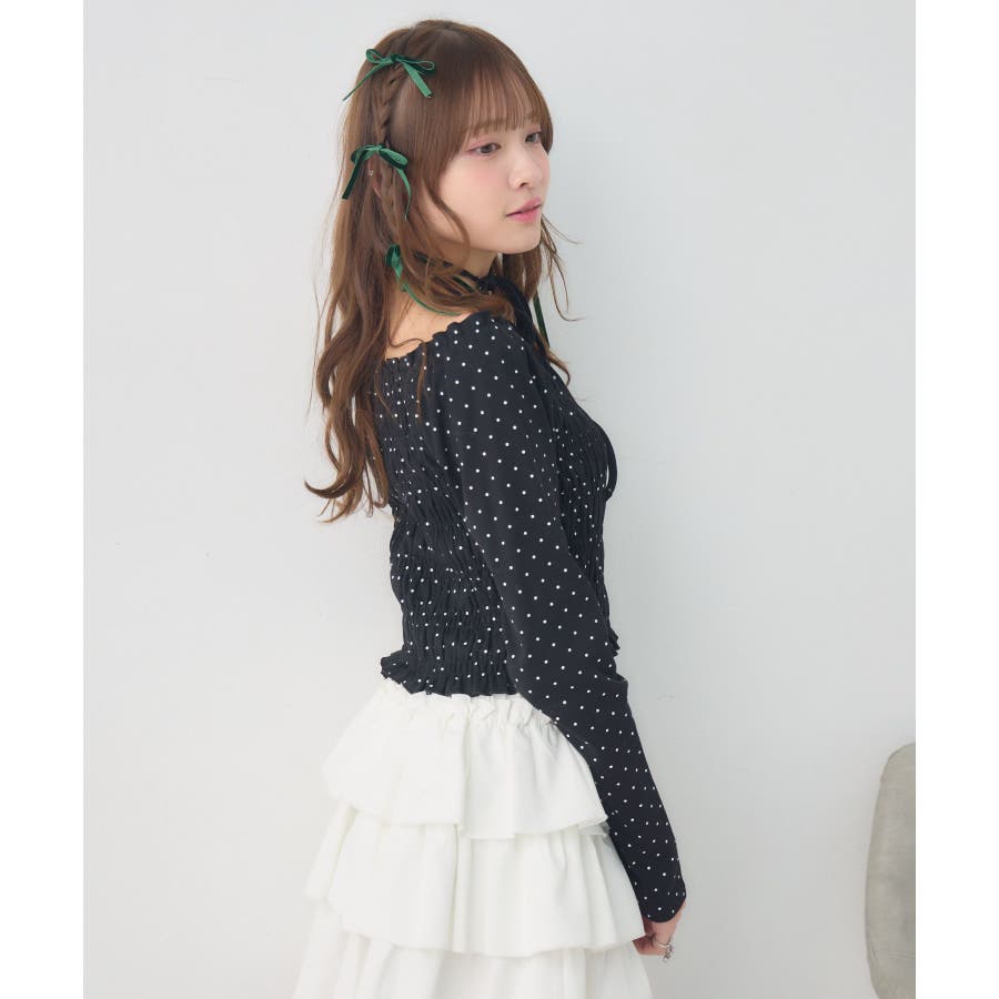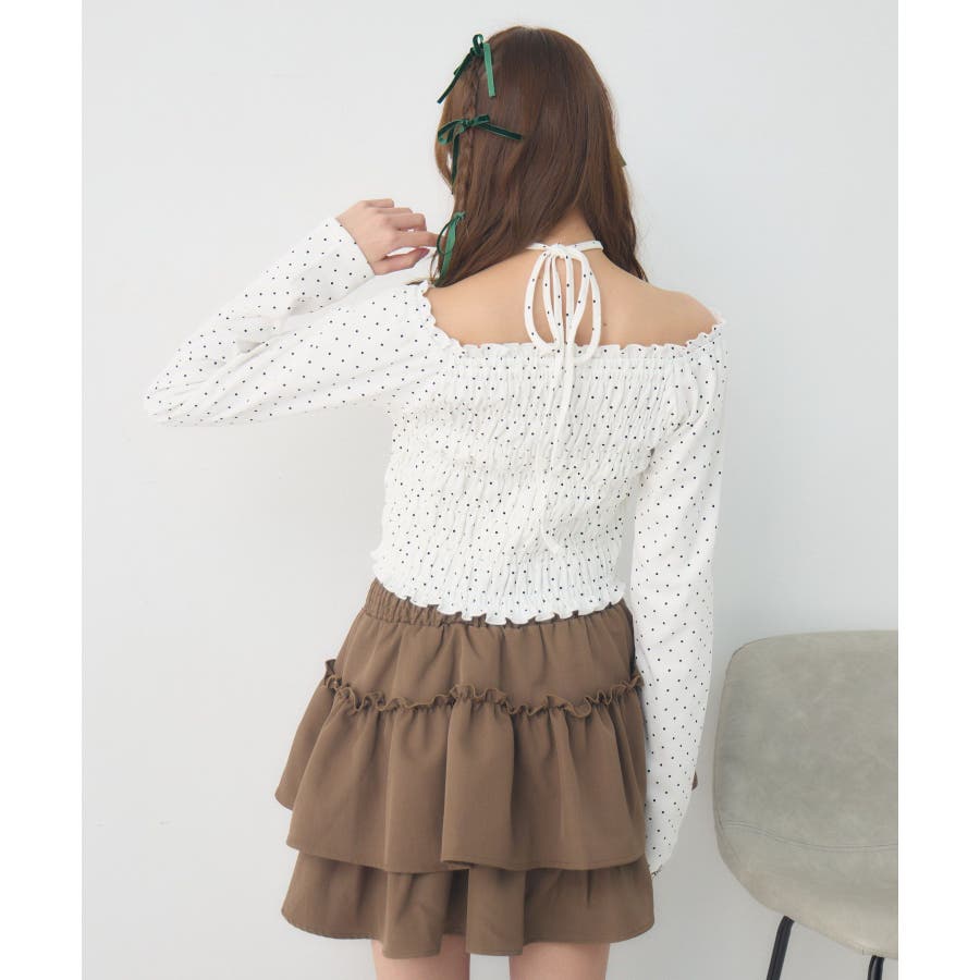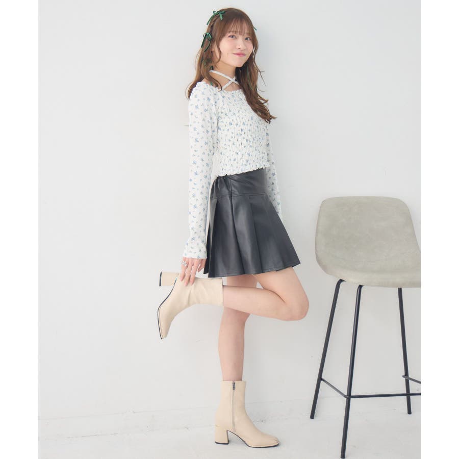 <シャーリングデザインが華やかなインナーカットソー>▼デザインオフショルダーでも着用できてアレンジの幅が広がるシャーリングカットソー!ホルターデザインになっているので、首回りも華やかで寂しさを感じさせません。伸縮性のある素材で着心地も抜群◎装飾が少なく、厚みを感じさせないデザインなので、骨格ストレートさんにもおすすめ!▼コーディネートカットソーではありますが、ブラウスっぽく着用できる万能アイテム!女性らしいデザインなので、ガーリーなボトムスと相性抜群!柄アイテムなので、コーデを華やかに可愛らしく仕上げてくれます。------------------------------生地感:薄手伸縮性:ある透け感:なし裏地:なし------------------------------ems excite (エムズエキサイト)“more fun more cute”今をもっと楽しくもっと可愛くいたい女の子に向けたgirly cuteなブランド#ブラウス #カットソー #シャーリング #ホルターネック #オフショルダー #花柄 #ドット柄▼注意事項※撮影環境やモニター環境によって実際の商品とお色味が多少異なってみえる場合がございます。品番:EP641511G001 / 品名:シャーリングインナーCT