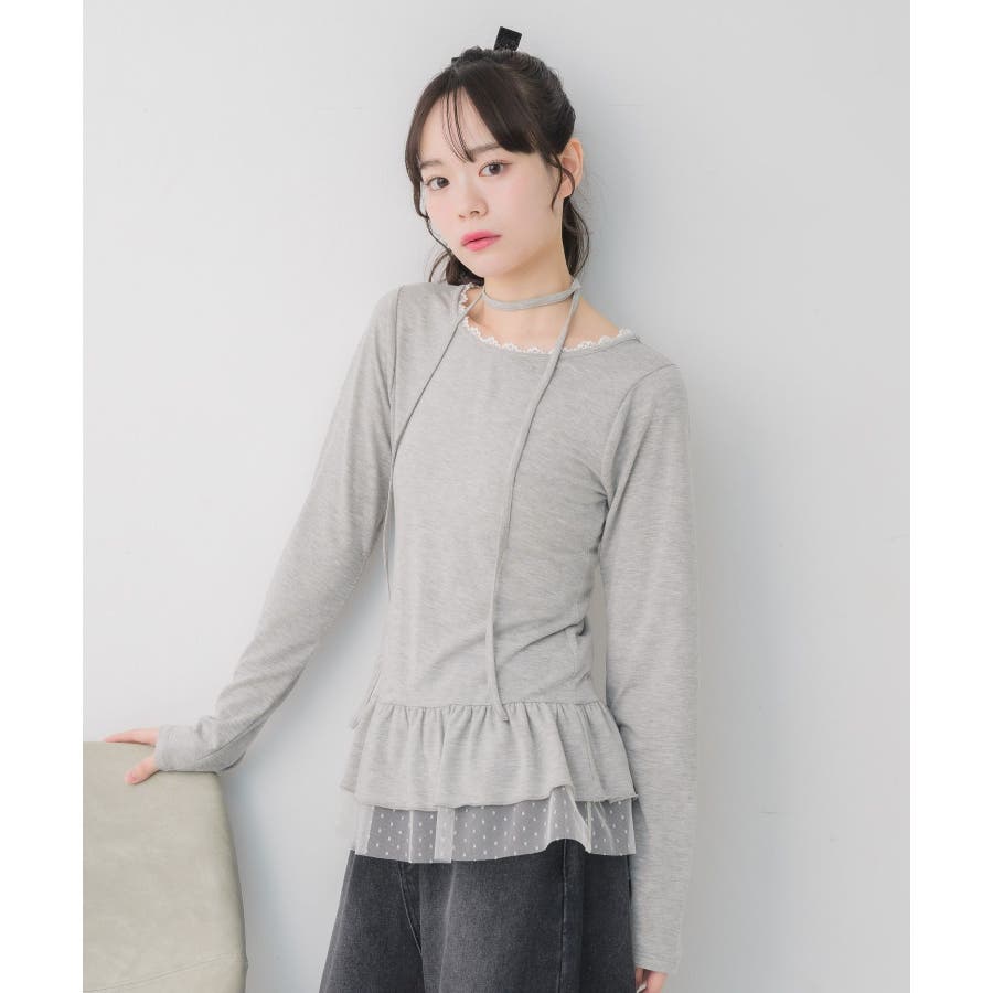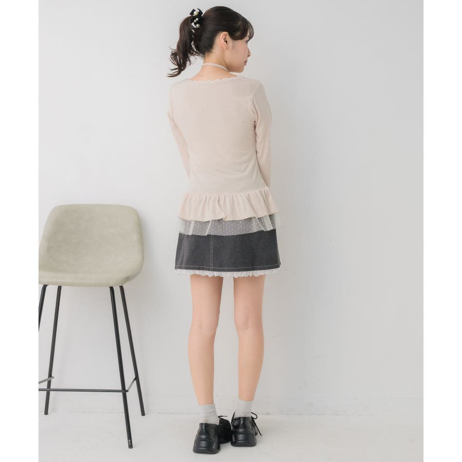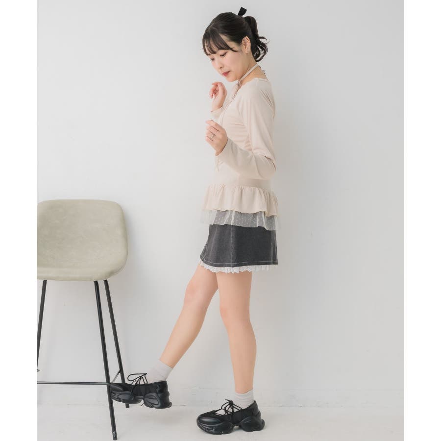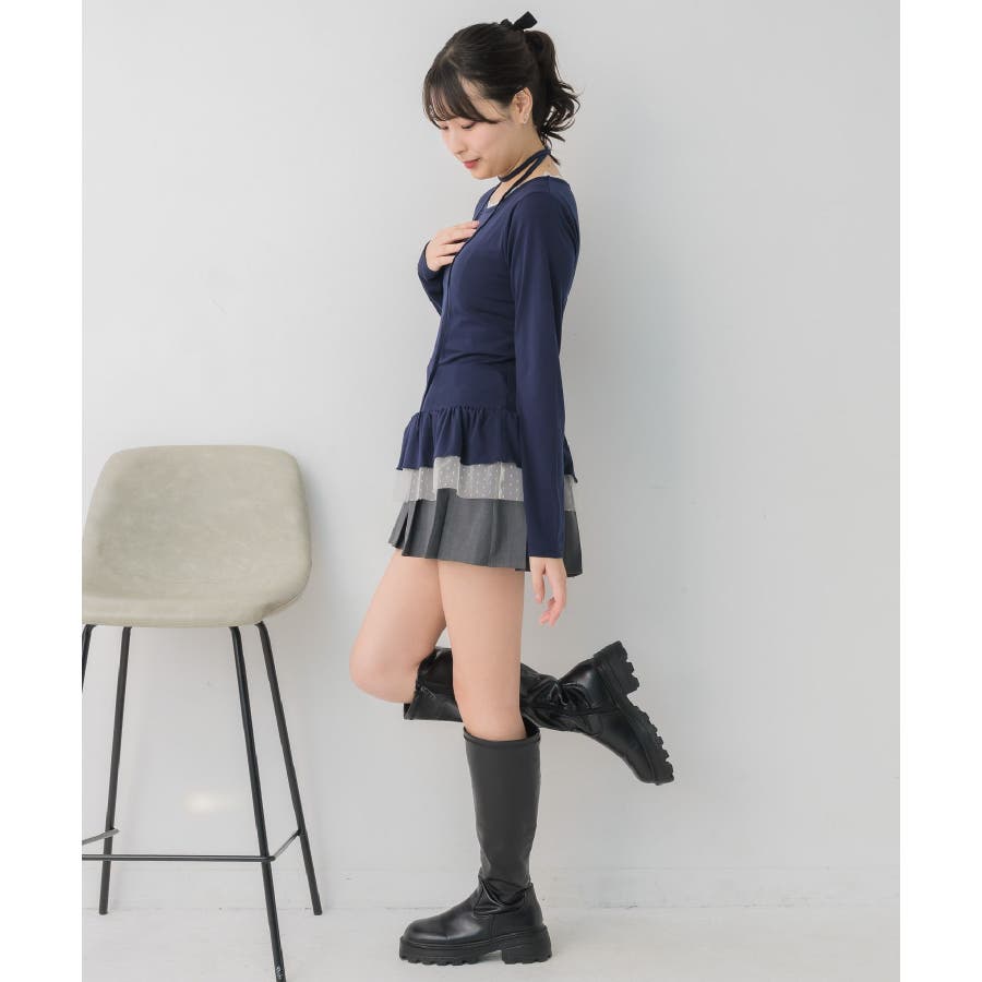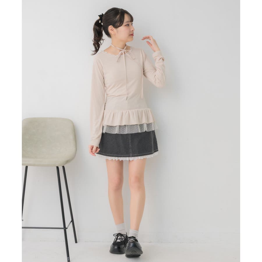 | 素材 | 本体:ポリエステル67% レーヨン28% ポリウレタン5% チュール部分:ポリエステル100% レース部分:ナイロン90% ポリウレタン10% |