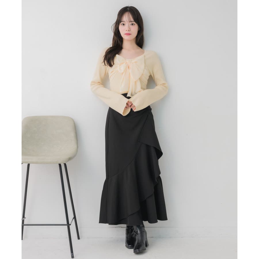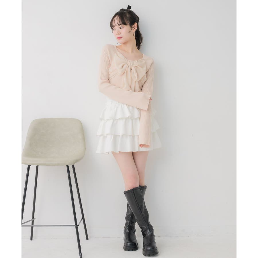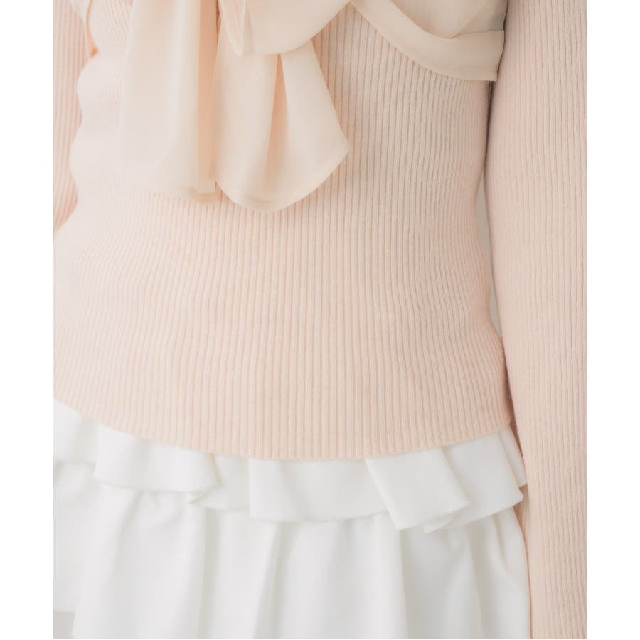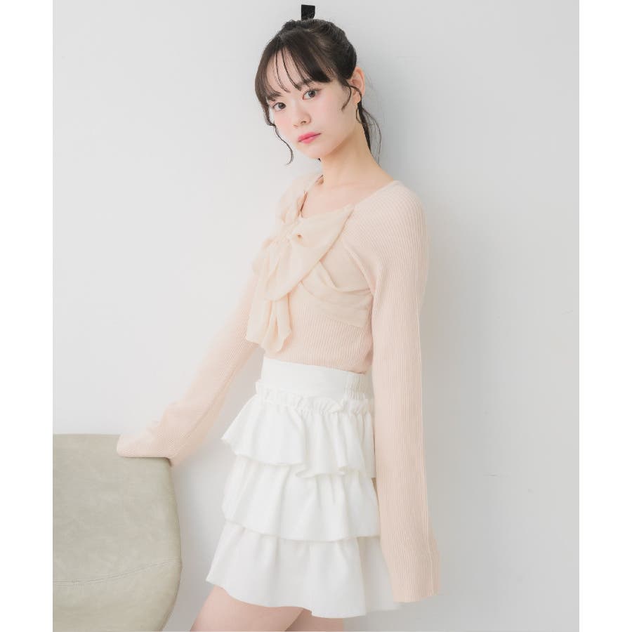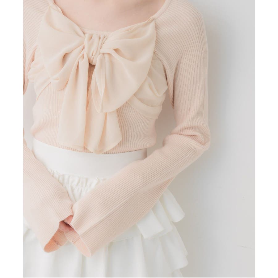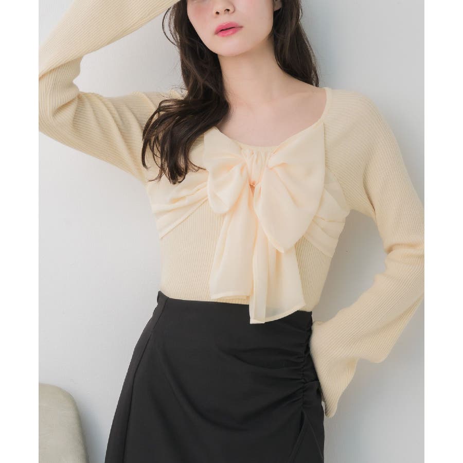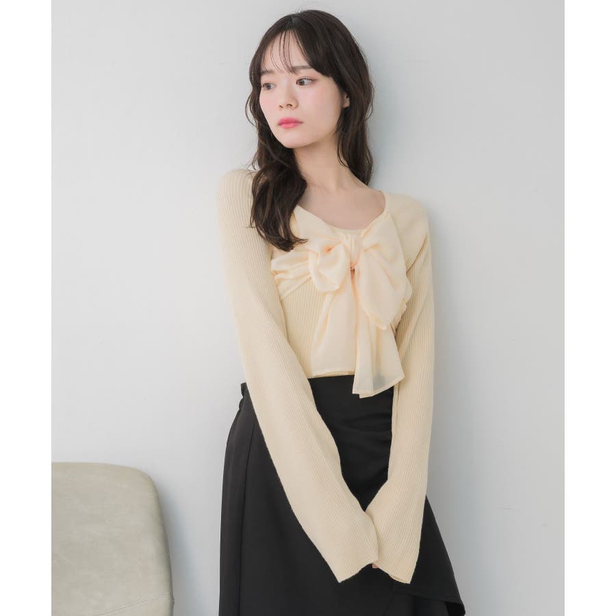 <大きなリボンが目を惹くガーリーニット>▼デザインデート場面や参戦コーデにピッタリなリボンニット!胸元にはシフォン素材の大きなリボンが華やかで、1枚でヒロインコーデに。袖口はふわっと広がるフレアスリーブで女性らしいシルエットに。首回りはすっきり空いているので、ネックレスやチョーカーと合わせても相性抜群です◎▼コーディネートフレアスカートやマーメイドスカートで女性らしいコーデがおすすめ!1枚では肌寒いシーズンは上からカーディガンやアウターを羽織っても◎------------------------------生地感:普通伸縮性:ある透け感:なし裏地:なし------------------------------▼ブランド紹介ems excite (エムズエキサイト)“more fun more cute”今をもっと楽しくもっと可愛くいたい女の子に向けたgirly cuteなブランド#リボンニット #デカリボン #ガーリー #ガーリーコーデ #リブニット #フェミニンコーデ #春コーデ▼注意事項※撮影環境やモニター環境によって実際の商品とお色味が 多少異なってみえる場合がございます。品番:EP641512B001 / 品名:BIGリボンドッキングNT