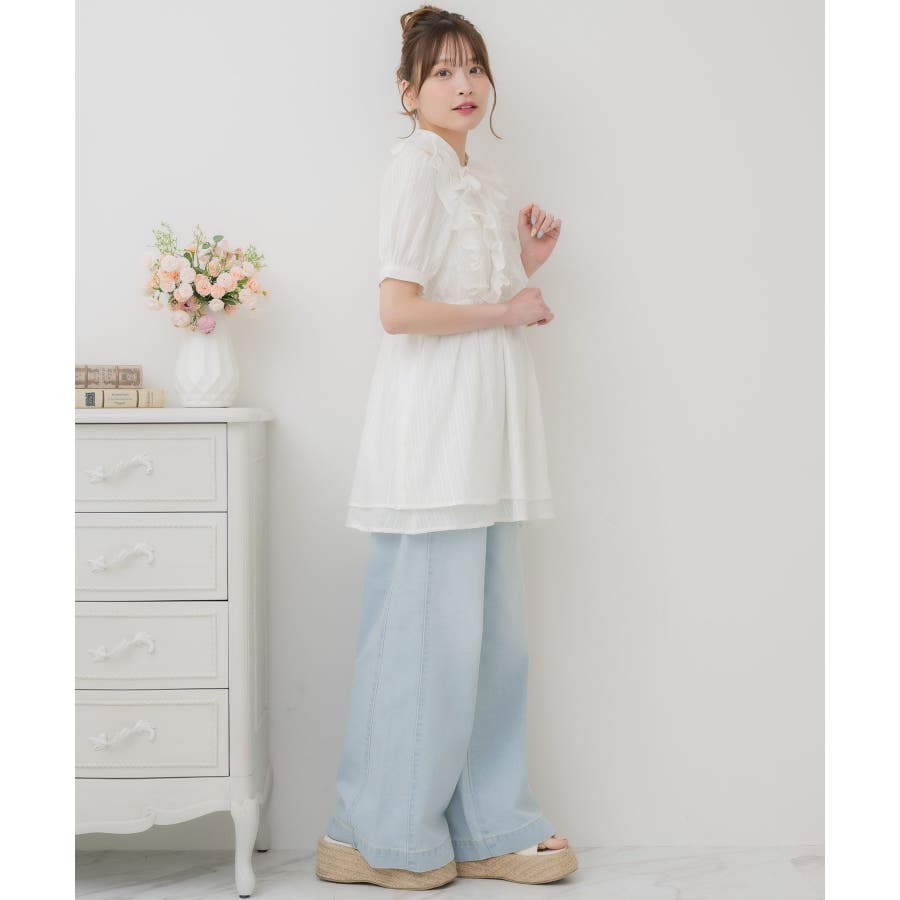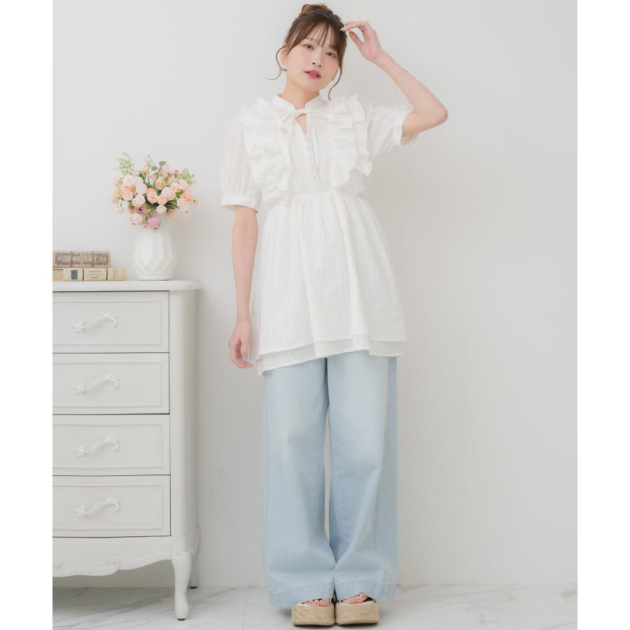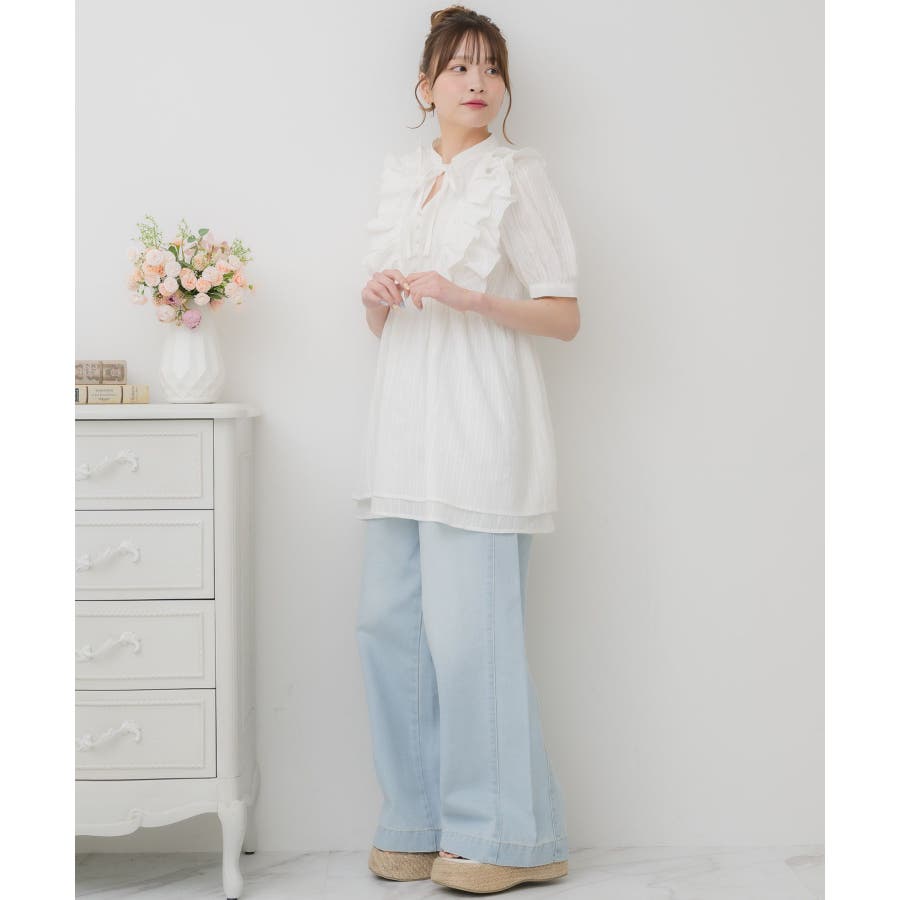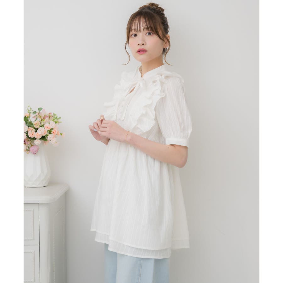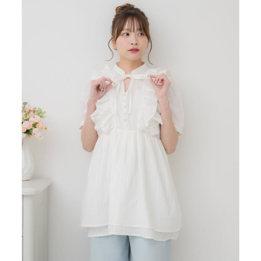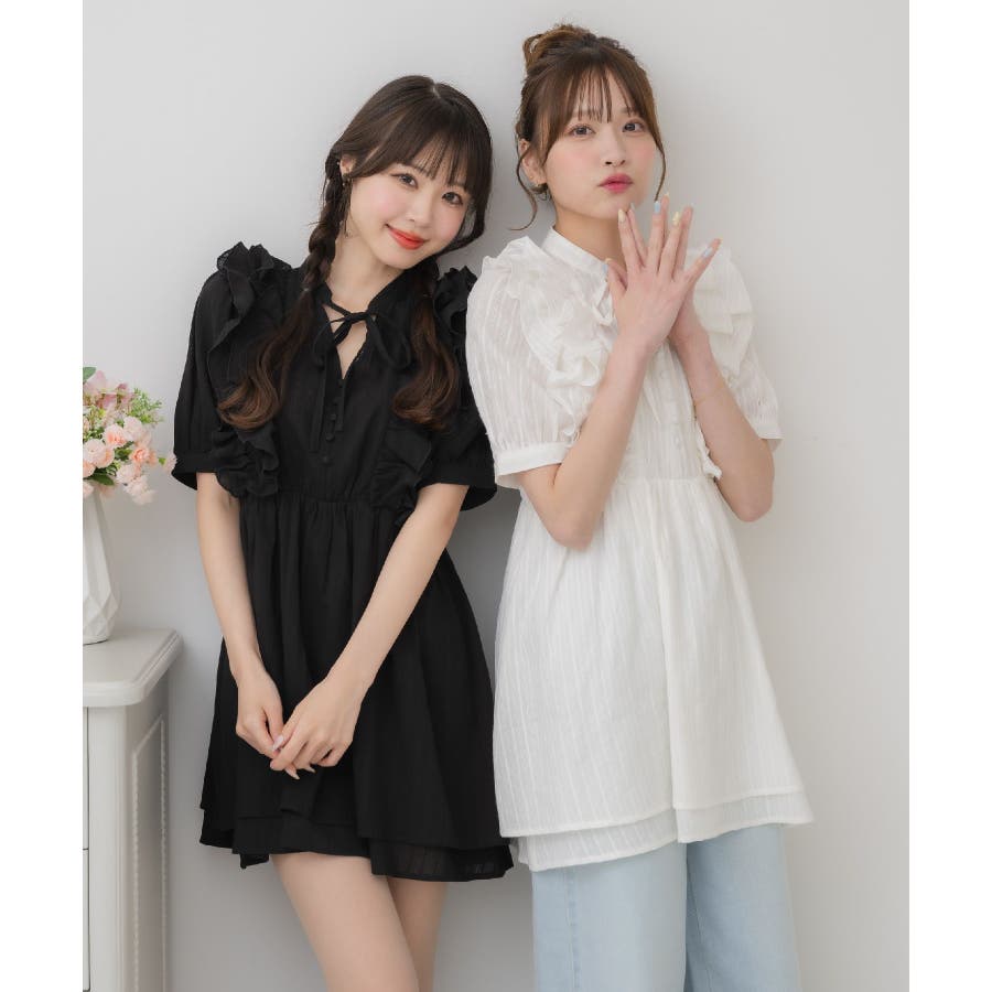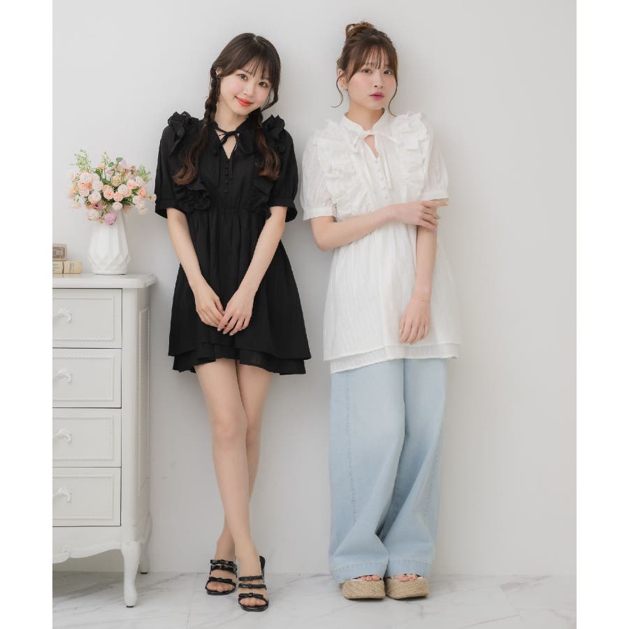 <チュニック丈でいろんなコーデを楽しめるレースワンピース>▼デザイン色んな着回しが楽しめるチュニック丈ワンピース。ボトムにデニムをレイヤードして着るスタイリングは今年のトレンドです♪肩回りはフリルが施されていて、トレンド感顔周りも華やかに!裾は2段になっていて、フレアシルエットが可愛いです。▼コーディネート一枚でコーディネートが完成するアイテム!チュニック着用もワンピース着用もどちらも可愛いので日によって使い分けるのもおすすめ♪------------------------------生地感:普通伸縮性:なし透け感:ホワイトのみ若干あり裏地:なし-----------------------------ems excite (エムズエキサイト)“more fun more cute”今をもっと楽しくもっと可愛くいたい女の子に向けたgirly cuteなブランド#フリル#フリルワンピース #ミニ丈ワンピ #チュニック #レイヤードワンピ #ガーリーコーデ▼注意事項※撮影環境やモニター環境によって実際の商品とお色味が多少異なってみえる場合がございます。品番:ES456222B002 / 品名:レースフリルチュニックOP