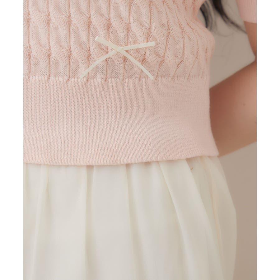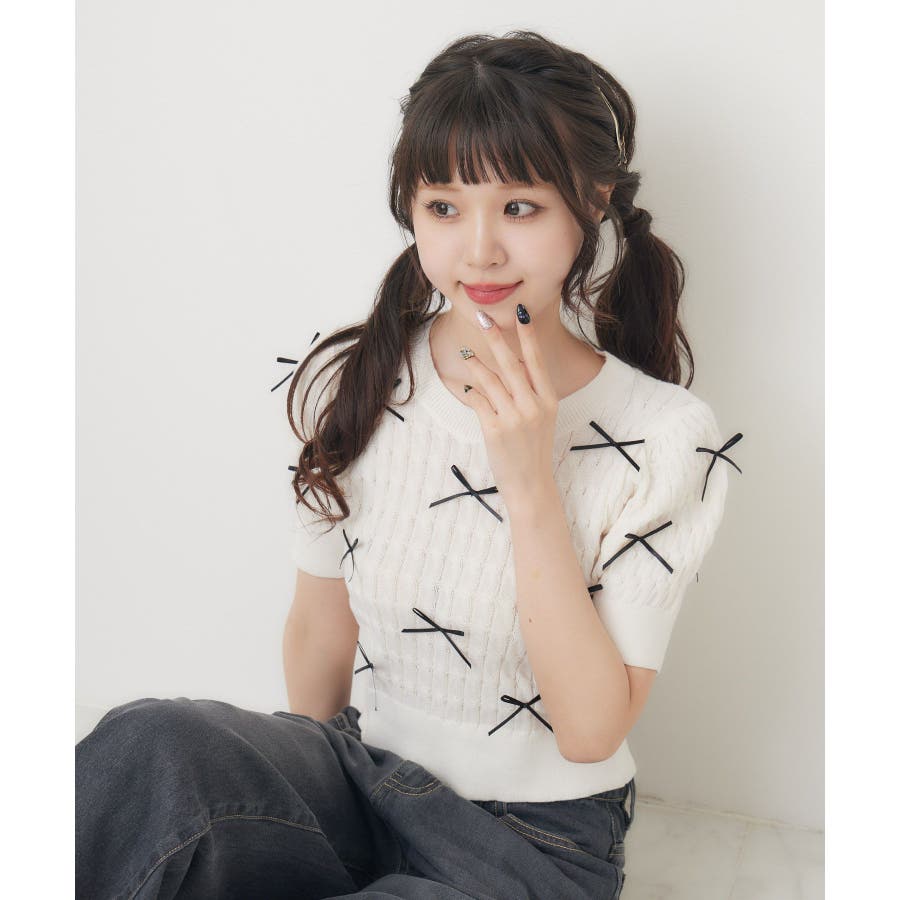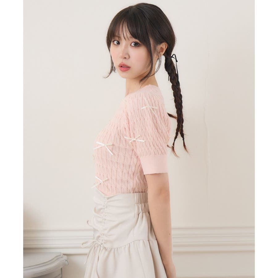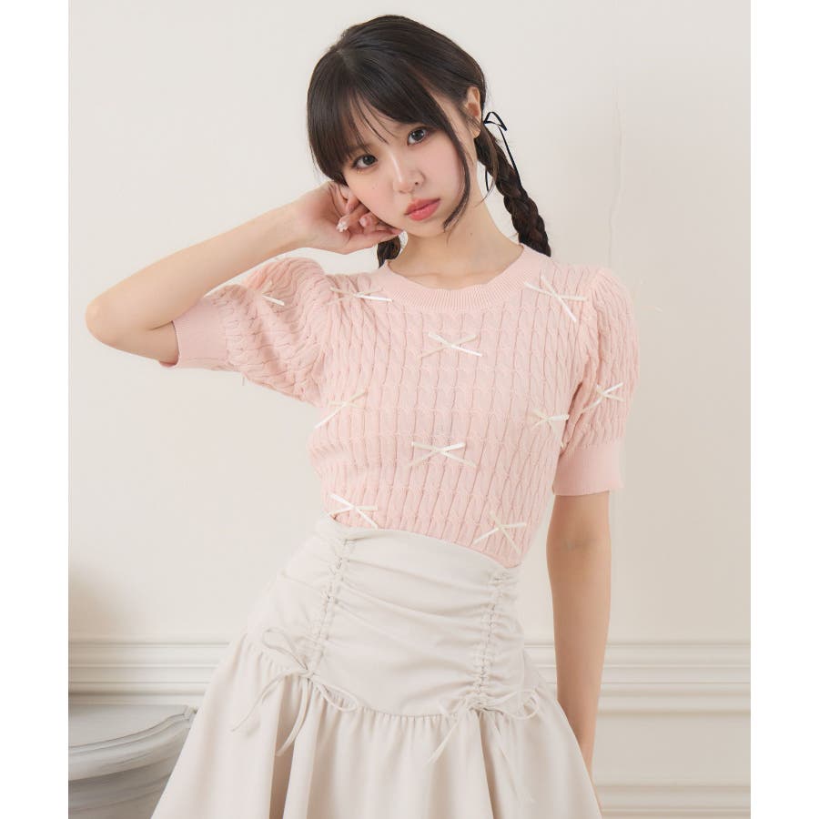 〈トレンドのメニーリボンスタイルのケーブルニットはこの夏取り入れたいサマーニット〉▼デザイン今年のトレンドであるリボンのデザインをたっぷり施したニットプルオーバー!夏でも涼し気なサマーニットでこれからの季節に1枚で着たいトップスアイテム。細めのリボンで華奢なデザインが女の子らしさを演出。伸縮性もあるニットなので、着心地の良さも保証です!▼コーディネート写真映えもバッチリな華やかなニットです!ボトムは定番でフレアスカートや、デニム合わせでカジュアルダウンするのも◎------------------------------生地感:普通伸縮性:ある透け感:なし裏地:なし------------------------------▼ブランド紹介ems excite (エムズエキサイト)“more fun more cute”今をもっと楽しくもっと可愛くいたい女の子に向けたgirly cuteなブランド#リボン #リボンアイテム #春ニット #ニットコーデ #ニットカーディガン #リボン▼注意事項※撮影環境やモニター環境によって実際の商品とお色味が 多少異なってみえる場合がございます。品番:ES456912T003 / 品名:リボンケーブルNTPO