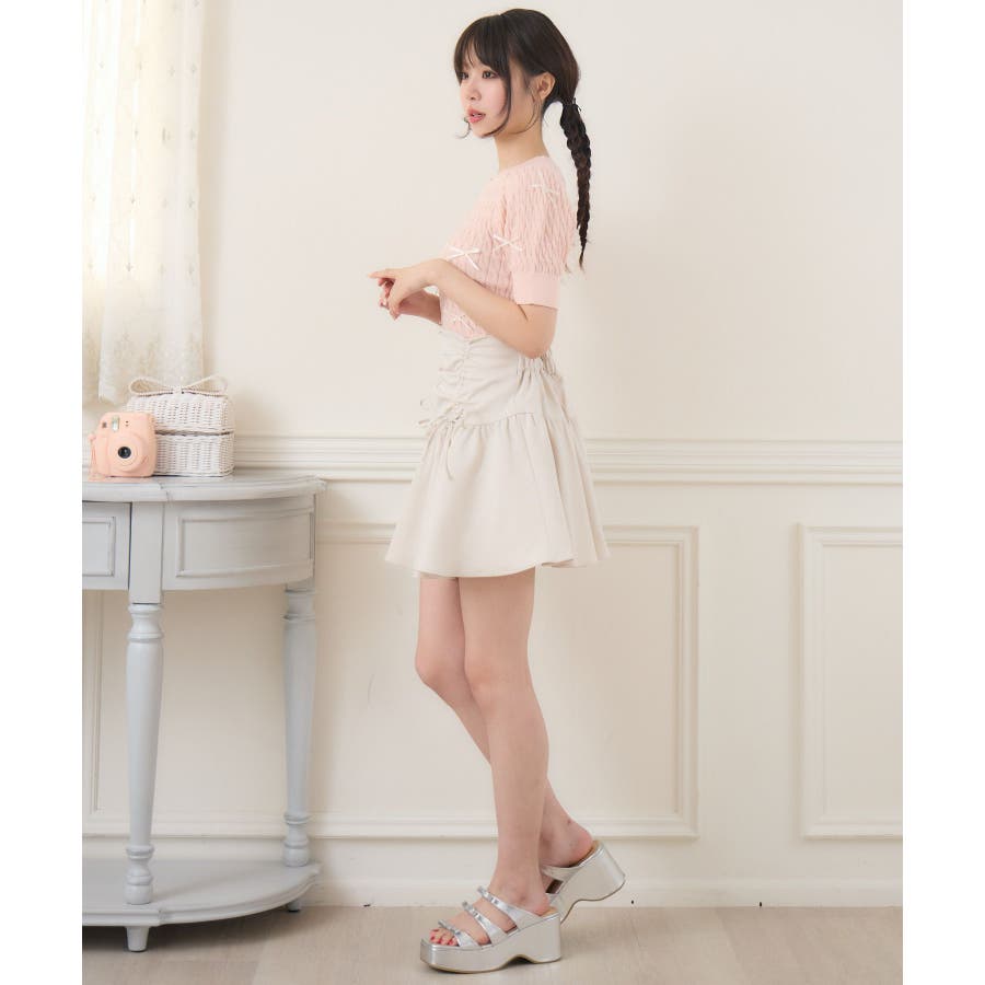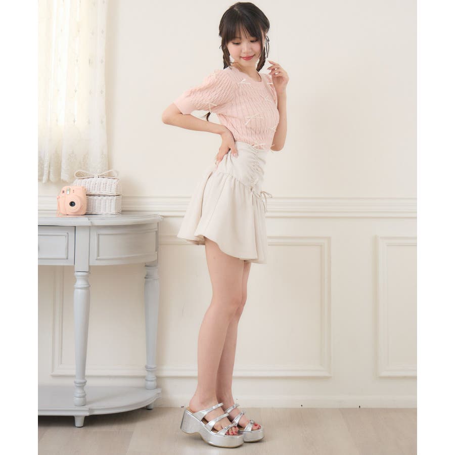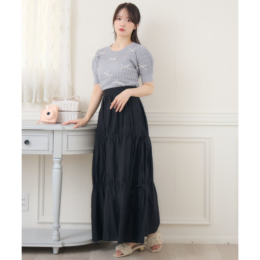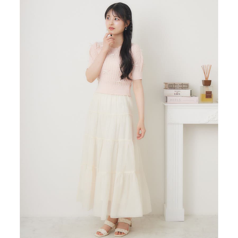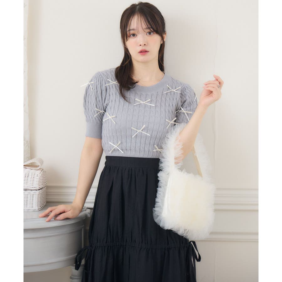 〈トレンドのメニーリボンスタイルのケーブルニットはこの夏取り入れたいサマーニット〉▼デザイン今年のトレンドであるリボンのデザインをたっぷり施したニットプルオーバー!夏でも涼し気なサマーニットでこれからの季節に1枚で着たいトップスアイテム。細めのリボンで華奢なデザインが女の子らしさを演出。伸縮性もあるニットなので、着心地の良さも保証です!▼コーディネート写真映えもバッチリな華やかなニットです!ボトムは定番でフレアスカートや、デニム合わせでカジュアルダウンするのも◎------------------------------生地感:普通伸縮性:ある透け感:なし裏地:なし------------------------------▼ブランド紹介ems excite (エムズエキサイト)“more fun more cute”今をもっと楽しくもっと可愛くいたい女の子に向けたgirly cuteなブランド#リボン #リボンアイテム #春ニット #ニットコーデ #ニットカーディガン #リボン▼注意事項※撮影環境やモニター環境によって実際の商品とお色味が 多少異なってみえる場合がございます。品番:ES456912T003 / 品名:リボンケーブルNTPO