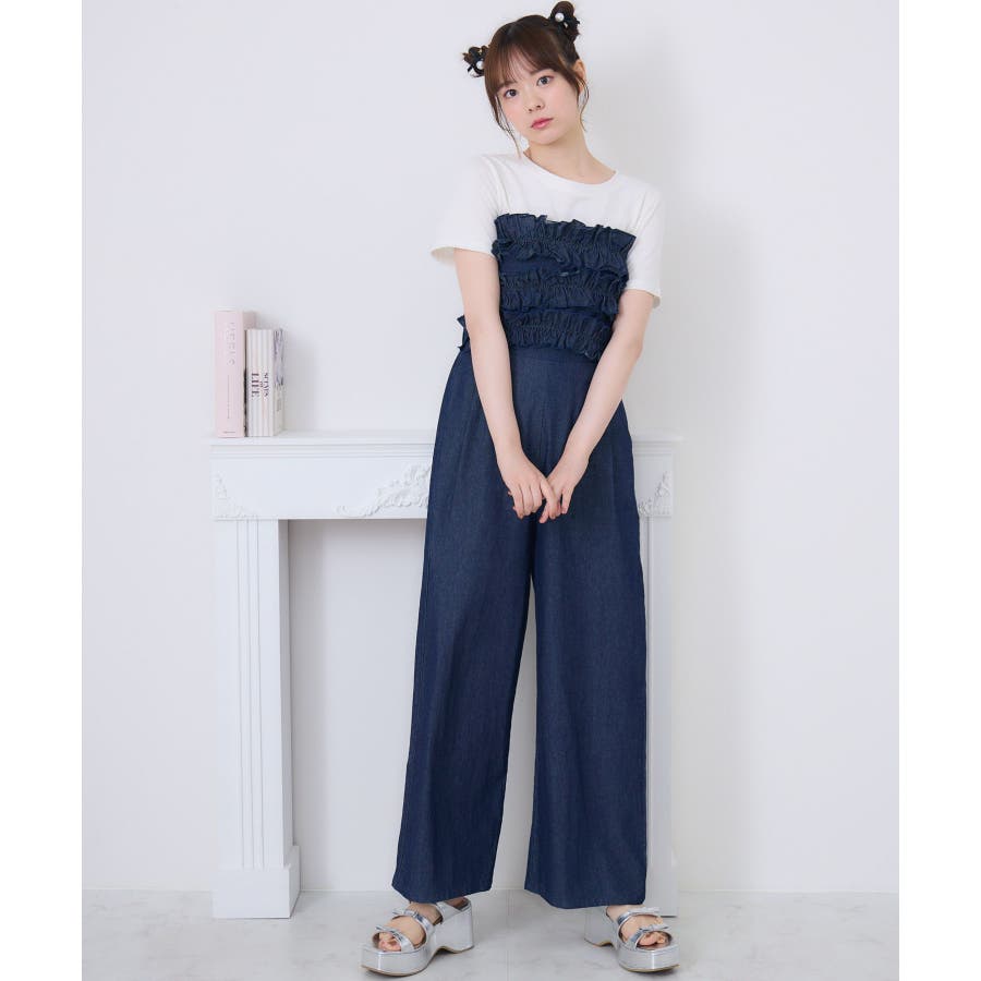 <バストラインのフリルが可愛い大人気のサロペットアイテム>▼デザインバスト部分にフリルデザインがポイントのガーリーなサロペット!この夏大注目のサロペットは1枚でコーデが完成する嬉しいアイテム。しっかりポケットもついていて、実用性もあります。肩紐は取り外し可能で、今年らしいベアトップスタイルでも着て頂けるます◎▼コーディネートシンプルにTシャツ合わせや、真夏はキャミソールに合わせてノースリーブでの着用も◎ベアトップスタイルでいつもより大人っぽいスタイリングも♪------------------------------生地感:普通伸縮性:なし透け感:なし裏地:なし------------------------------▼ブランド紹介ems excite (エムズエキサイト)“more fun more cute”今をもっと楽しくもっと可愛くいたい女の子に向けたgirly cuteなブランド#フリル #サロペット #フリルアイテム #デニム #夏コーデ▼注意事項※撮影環境やモニター環境によって実際の商品とお色味が多少異なってみえる場合がございます。品番:ES480032T002 / 品名:ボリュームフリルサロペット