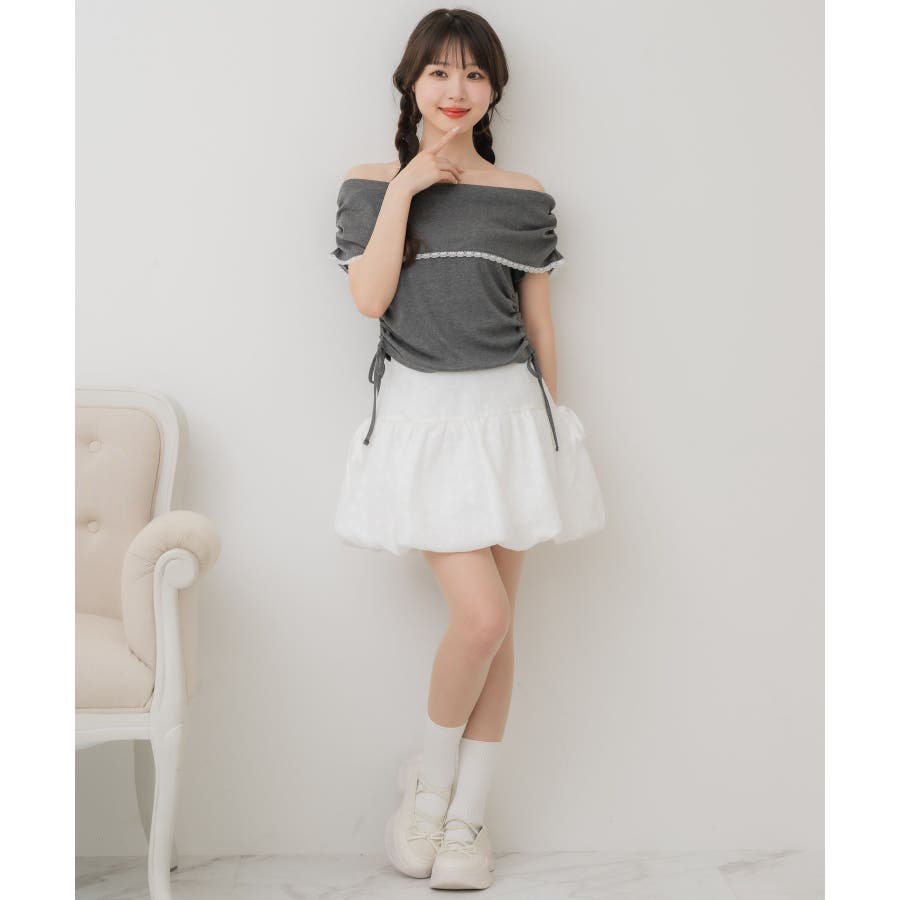 <レース素材が夏らしい甘めバルーンスカート>▼デザイン今年トレンドのバルーンシルエットのミニスカート!レースデザインでガーリーに着用いただけます。ウエストはゴムで伸縮性も◎両サイドにリボンが付いているのもemsらしいワンポイント!▼コーディネートシンプルにTシャツ合わせでも可愛くコーデが決まるアイテム。切り替えが入っているので骨格ストレートさんも着用しやすいシルエットです。------------------------------生地感:普通伸縮性:なし透け感:なし裏地:ある------------------------------▼ブランド紹介ems excite (エムズエキサイト)“more fun more cute”今をもっと楽しくもっと可愛くいたい女の子に向けたgirly cuteなブランド#綿スカート #ミニスカート #レーススカート #ガーリーアイテム #バルーンスカート▼注意事項※撮影環境やモニター環境によって実際の商品とお色味が多少異なってみえる場合がございます。品番:ES537531G004 / 品名:ハイウエストバルーンミニSK