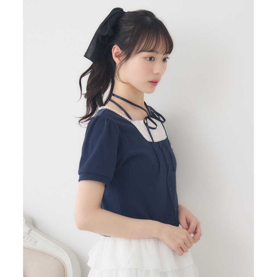素材 | 本体 ポリエステル:65% 綿:35% 別布部分 ポリエステル:80% 綿:20% レース部分 ポリエステル:100% リボン部分 ポリエステル:100% |