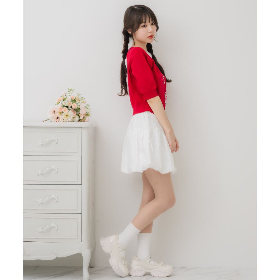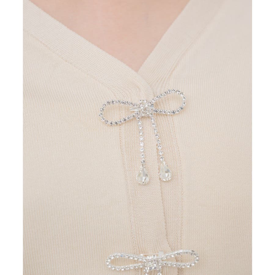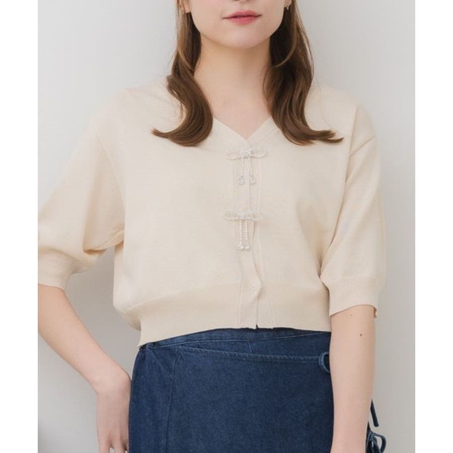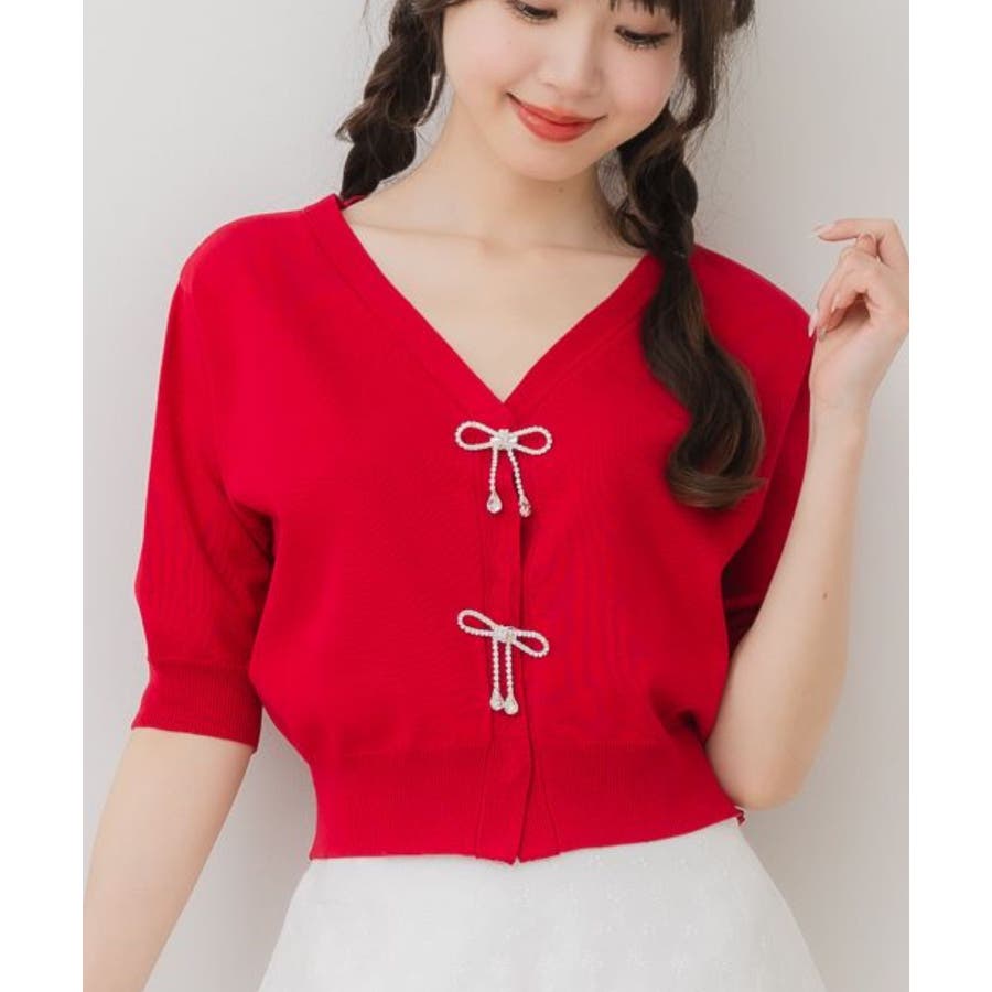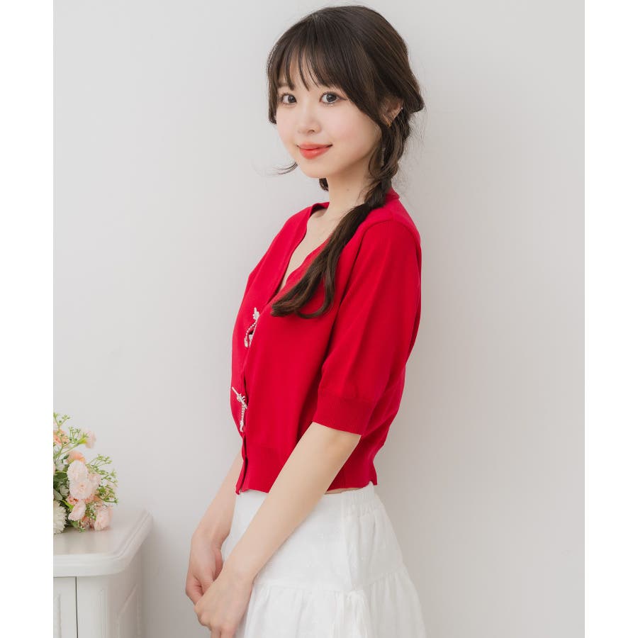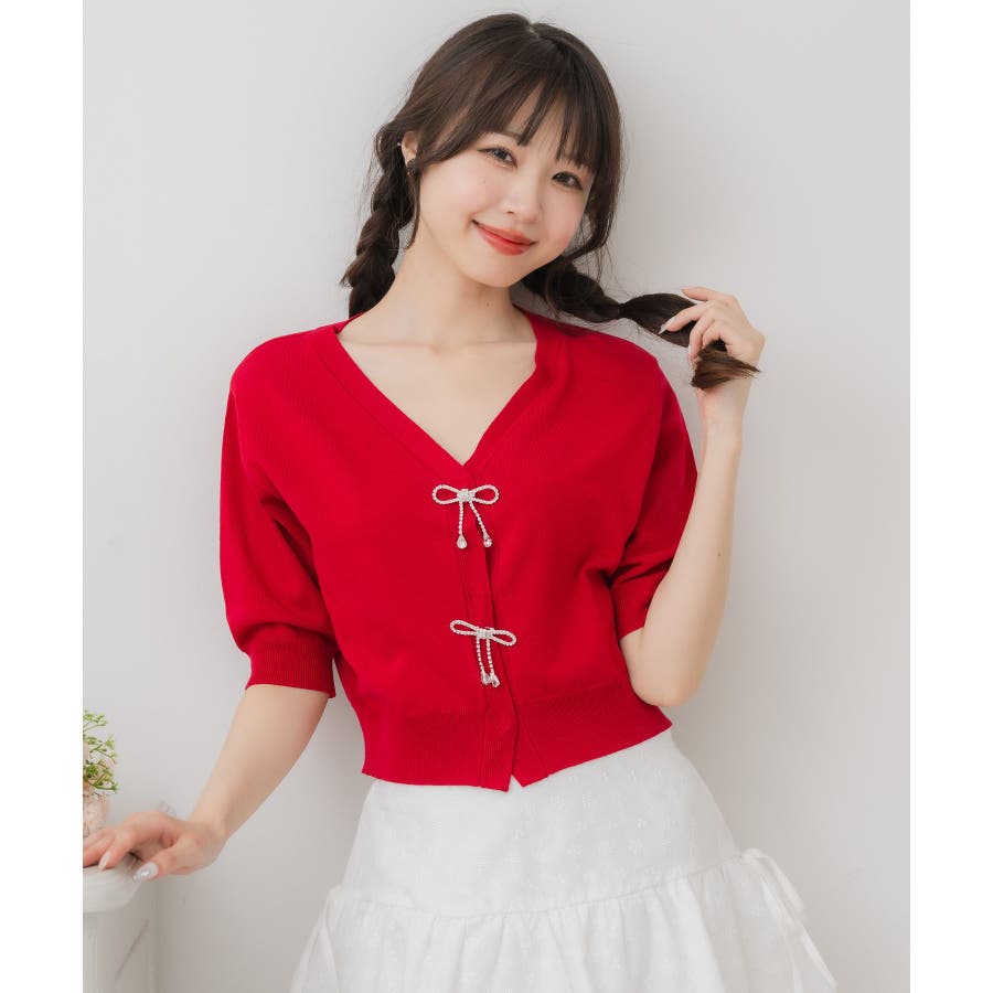 <冬に大人気を頂いたブローチセットのカーディガンがサマースタイルに♪>▼デザイン冬に大人気を頂いたリボンブローチがセットのカーディガン。夏らしい軽い糸の素材になって再登場です♪フロント部分に取り外し可能なリボンブローチが2つセットになっています。リボンブローチもビジューデザインで、キラキラと華やかな印象にコーデを演出。トップス使いはもちろん、キャミソールに羽織っても可愛い汎用性ある1枚です。▼コーディネート羽織っても、1枚でニット使いしても可愛いアイテム。ブローチは外して、バッグや帽子につけても可愛いです。------------------------------生地感:普通伸縮性:ある透け感:なし裏地:なし------------------------------▼ブランド紹介ems excite (エムズエキサイト)“more fun more cute”今をもっと楽しくもっと可愛くいたい女の子に向けたgirly cuteなブランド#ラメブローチ #サマーニット #サマーニットカーデ #カーディガン #ブローチ付 #デートコーデ▼注意事項※撮影環境やモニター環境によって実際の商品とお色味が 多少異なってみえる場合がございます。品番:ES541512G003 / 品名:リボンブローチショートカーデ
